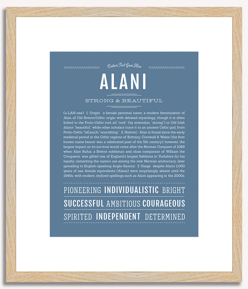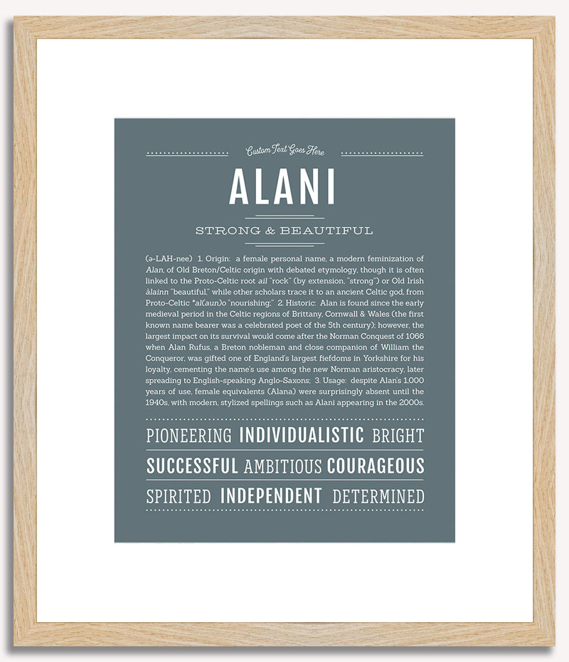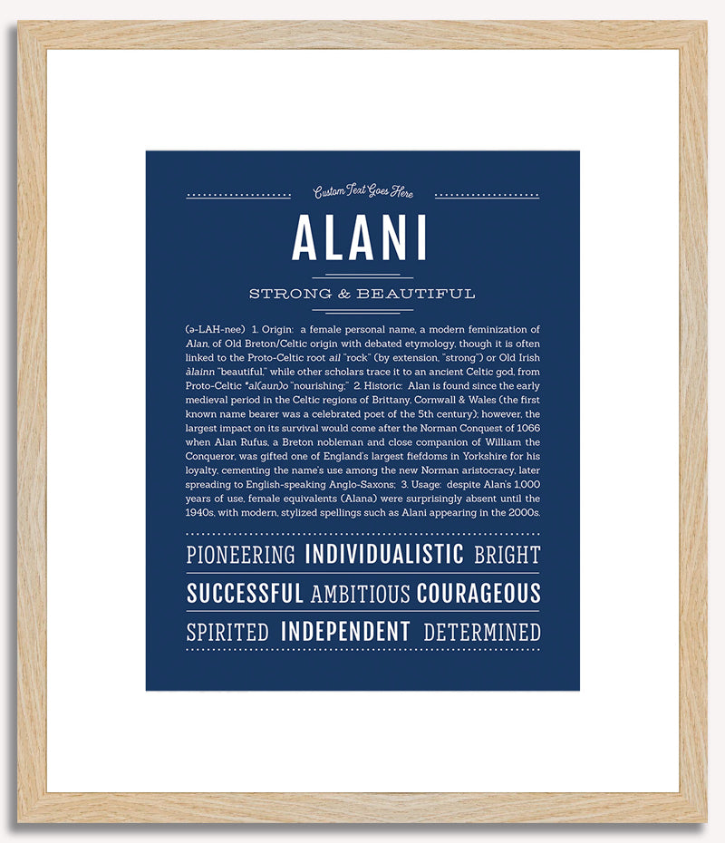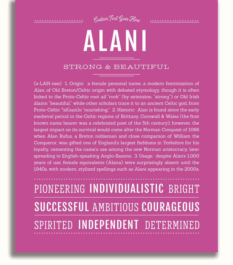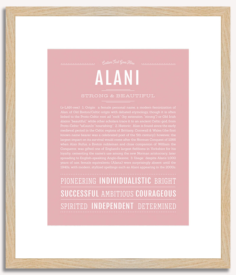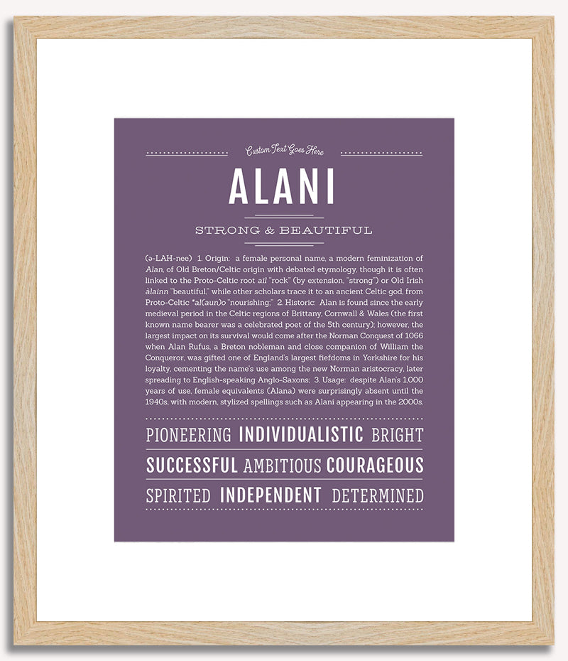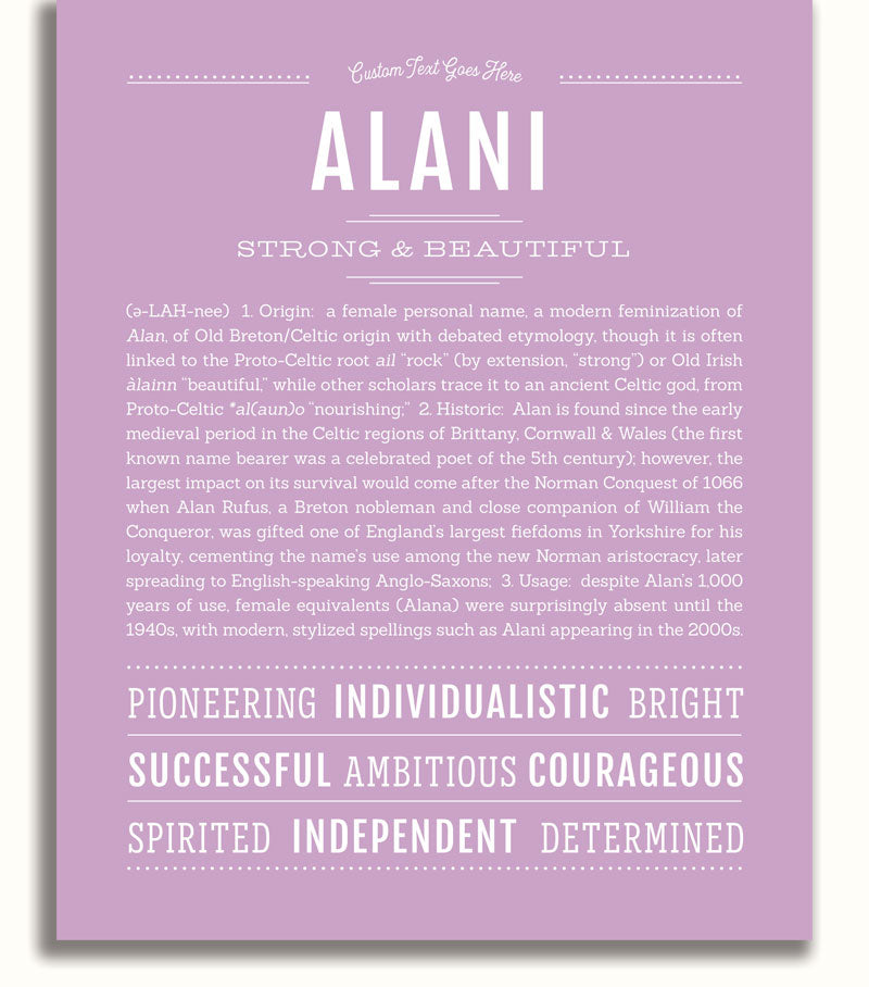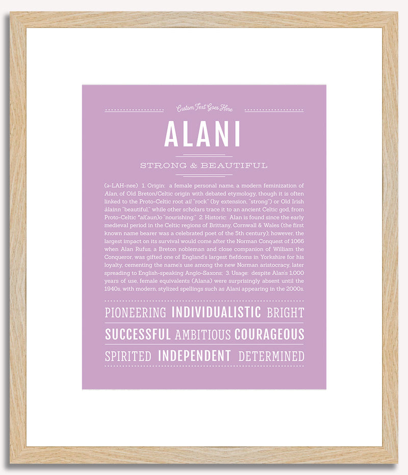 Names Stories® is not only a timeless keepsake of Alani’s name, but a thoughtful reminder of who Alani is: today, tomorrow, and always.