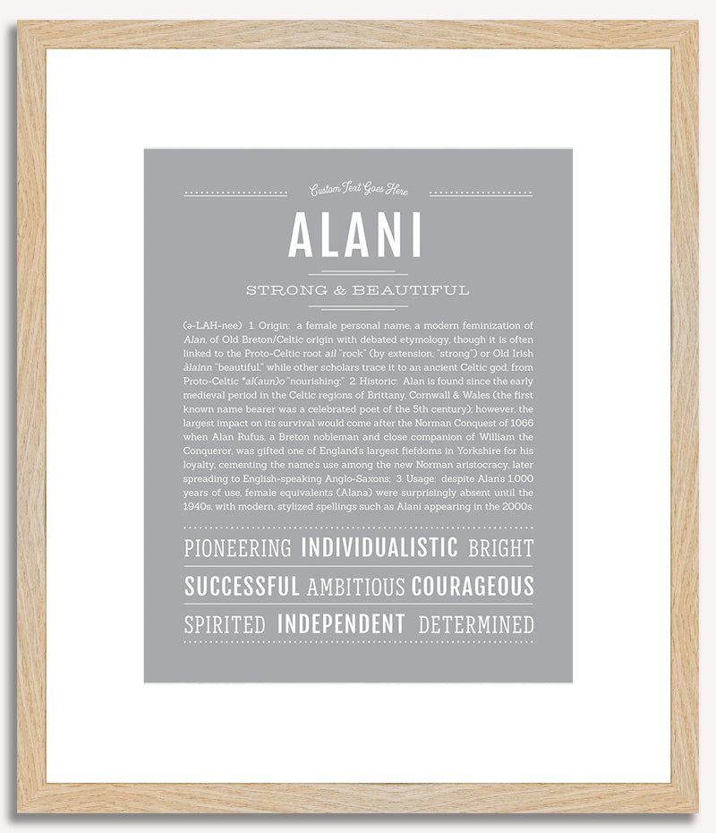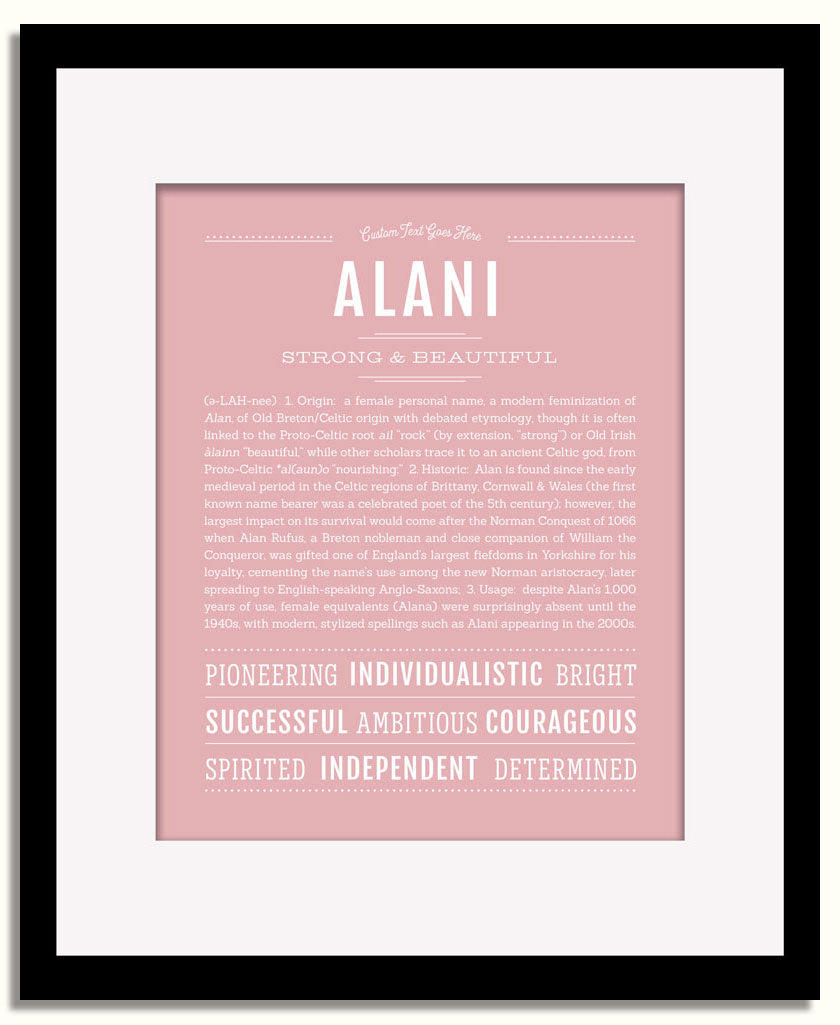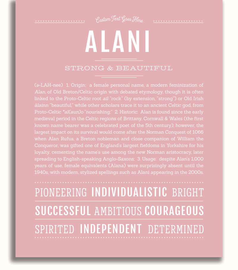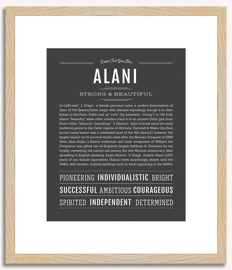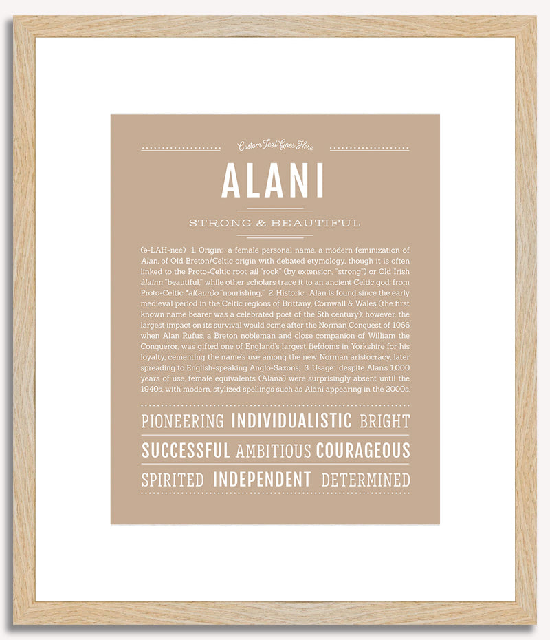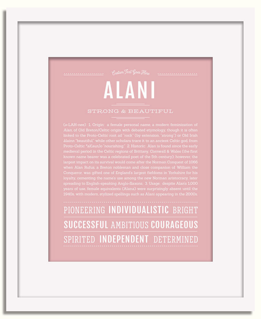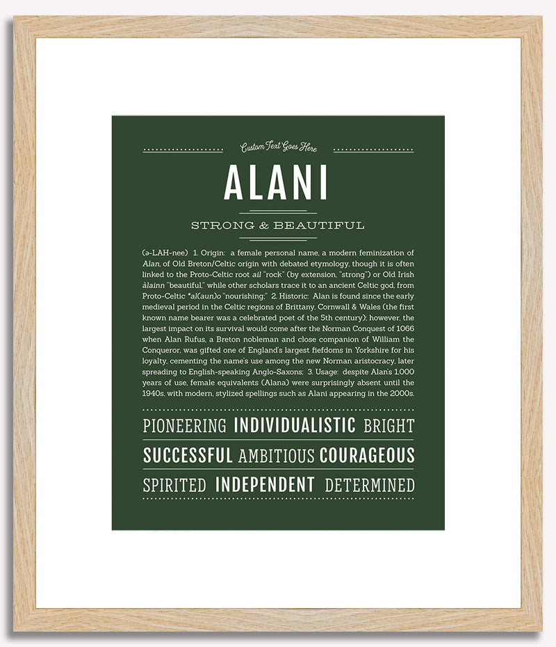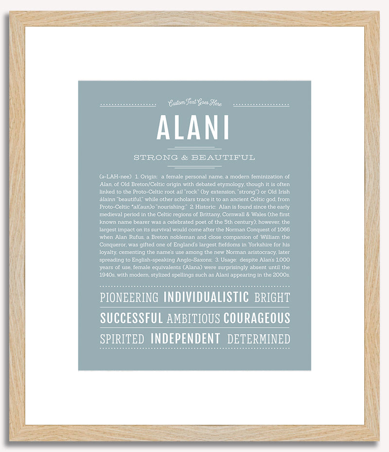 Names Stories® is not only a timeless keepsake of Alani’s name, but a thoughtful reminder of who Alani is: today, tomorrow, and always.