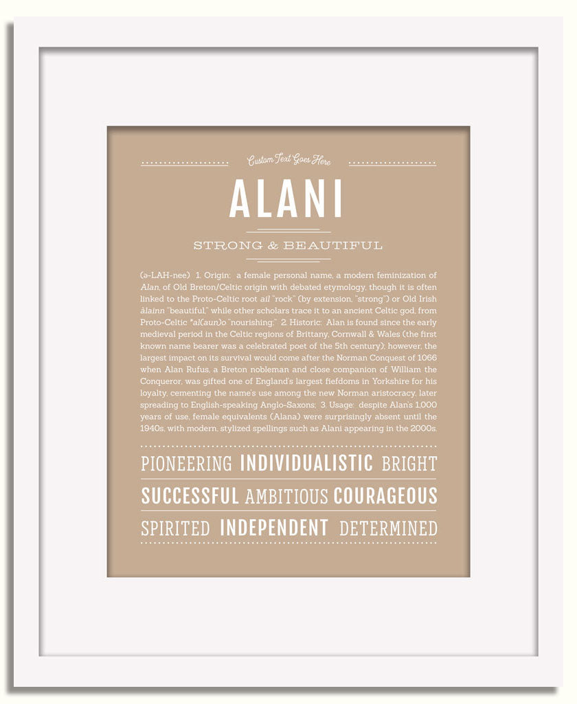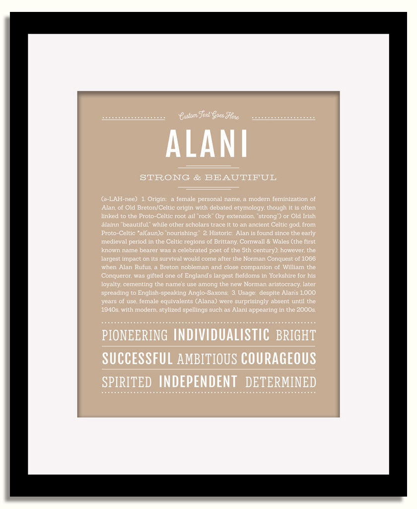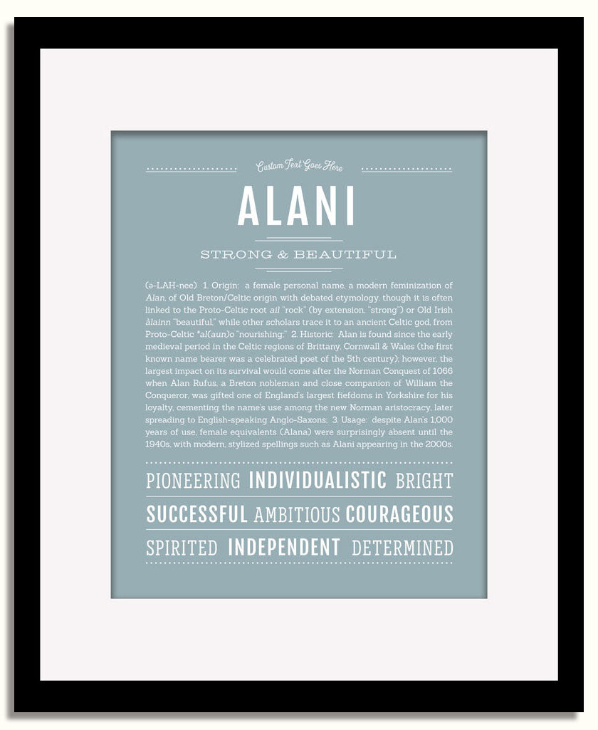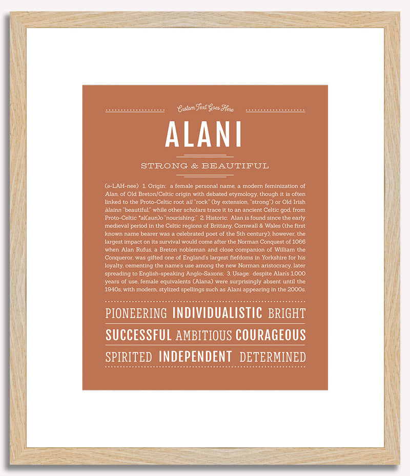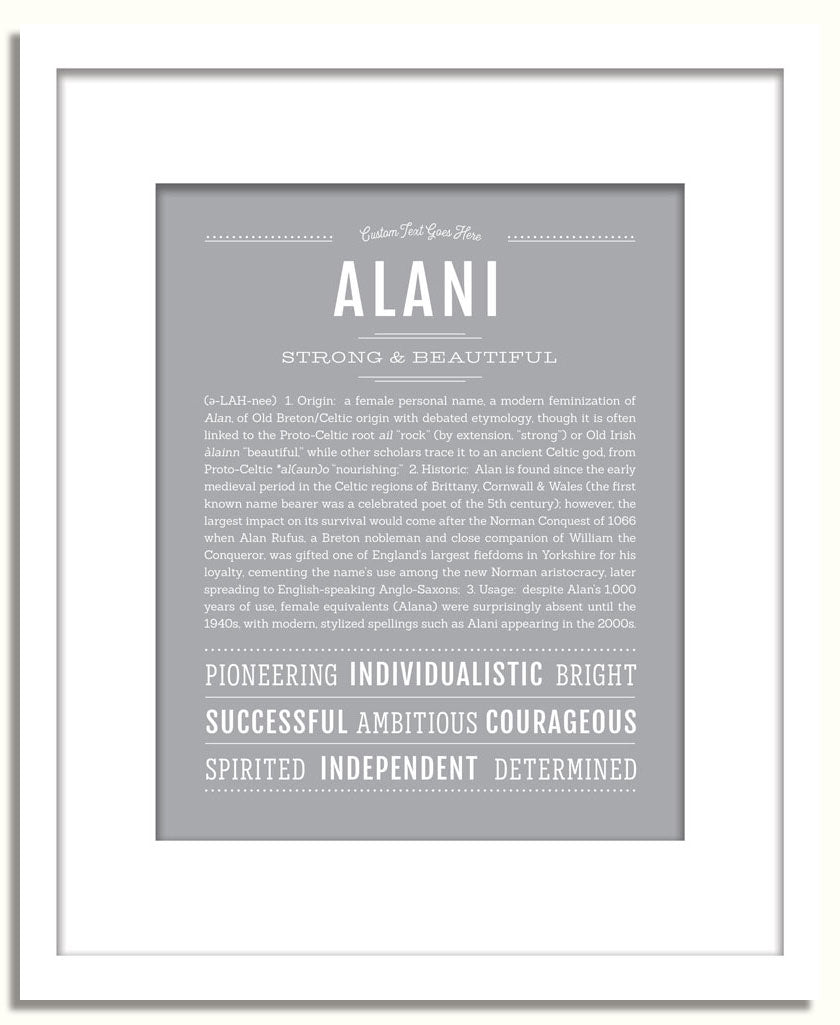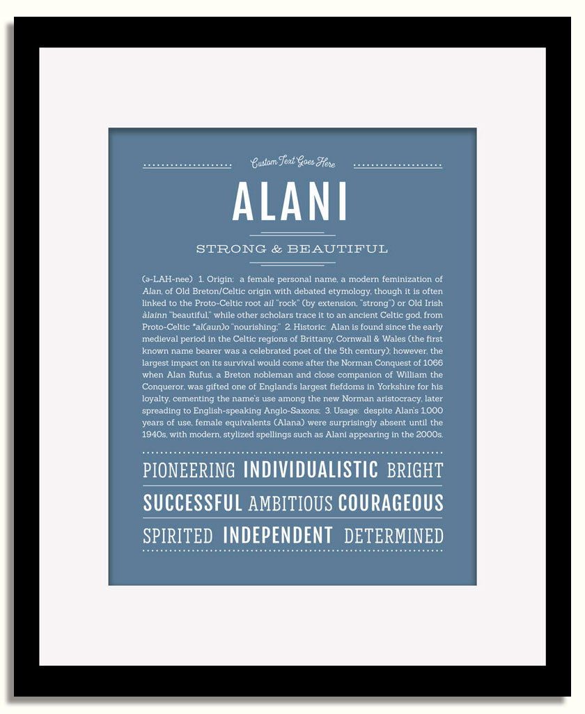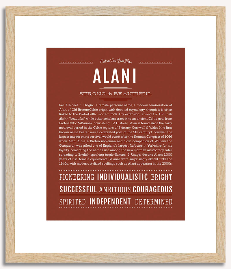 Names Stories® is not only a timeless keepsake of Alani’s name, but a thoughtful reminder of who Alani is: today, tomorrow, and always.