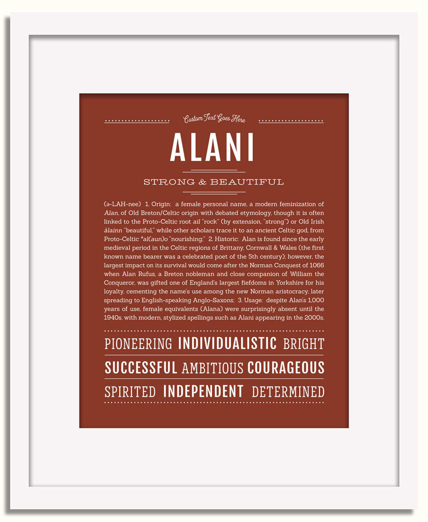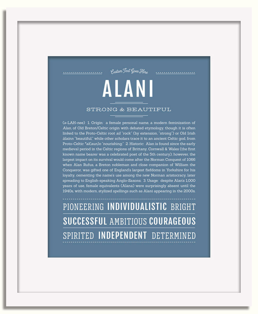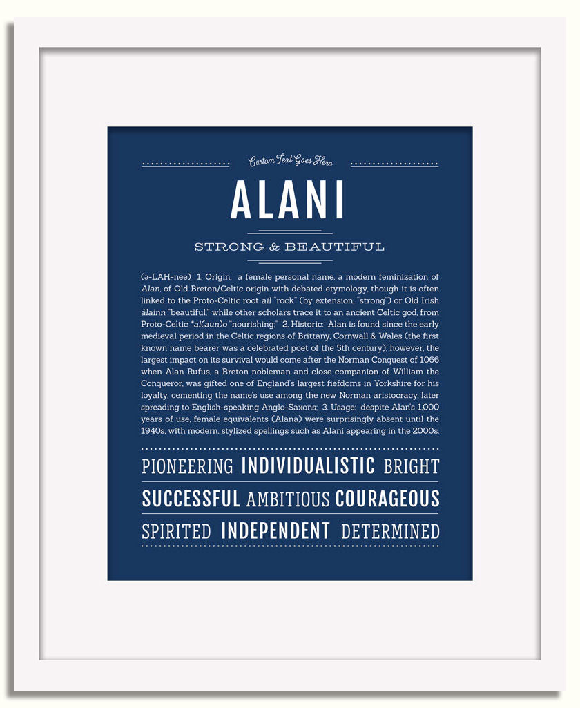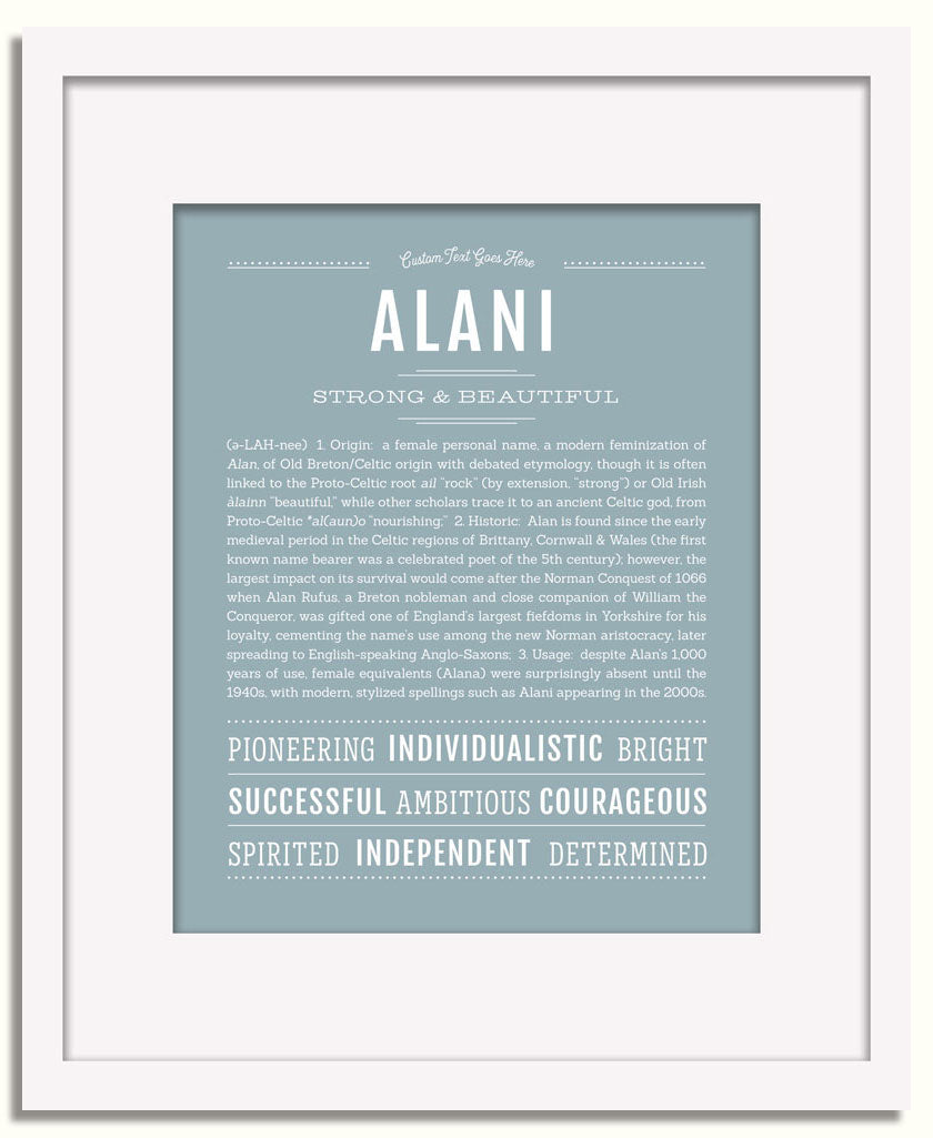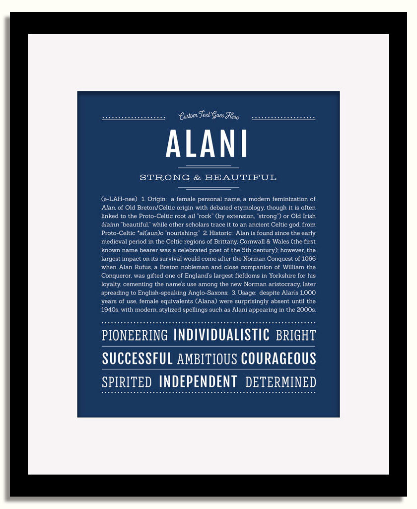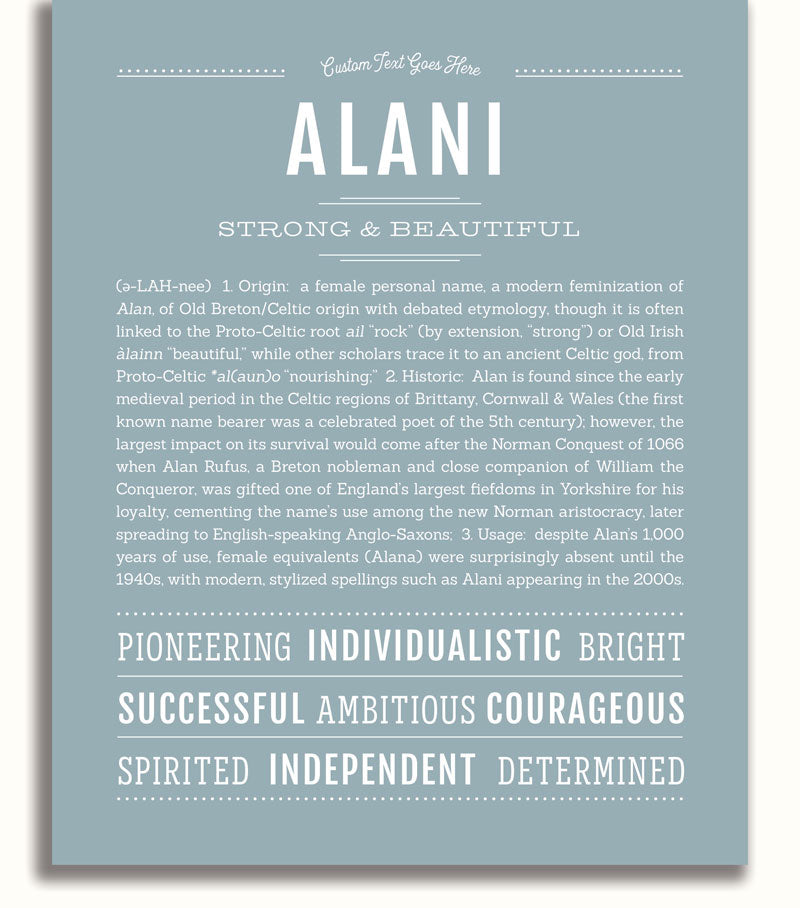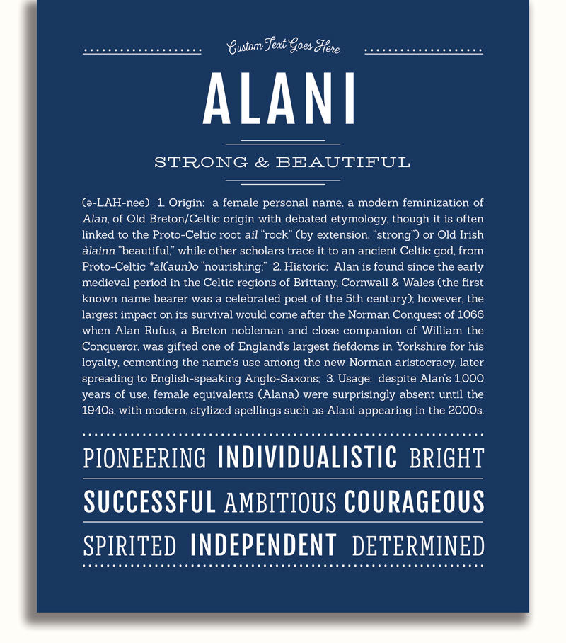 Names Stories® is not only a timeless keepsake of Alani’s name, but a thoughtful reminder of who Alani is: today, tomorrow, and always.