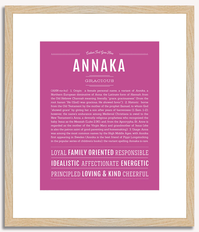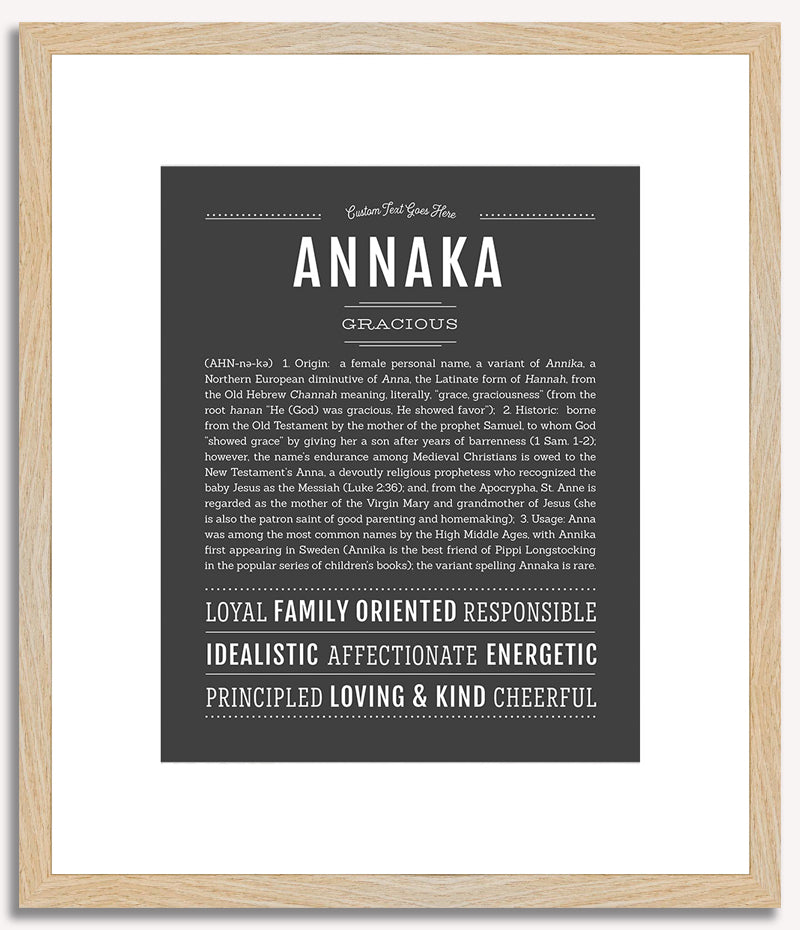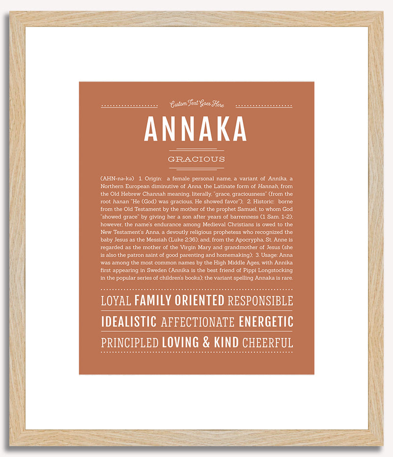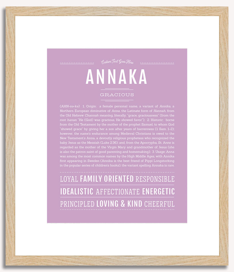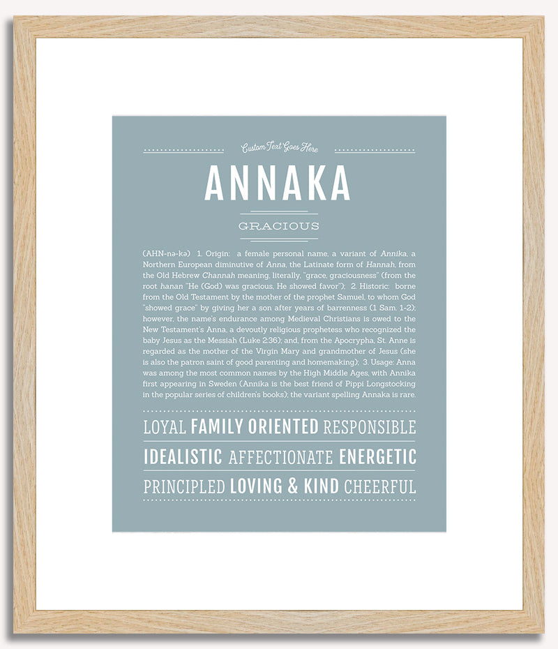 Names Stories® is not only a timeless keepsake of Annaka’s name, but a thoughtful reminder of who Annaka is: today, tomorrow, and always.