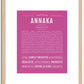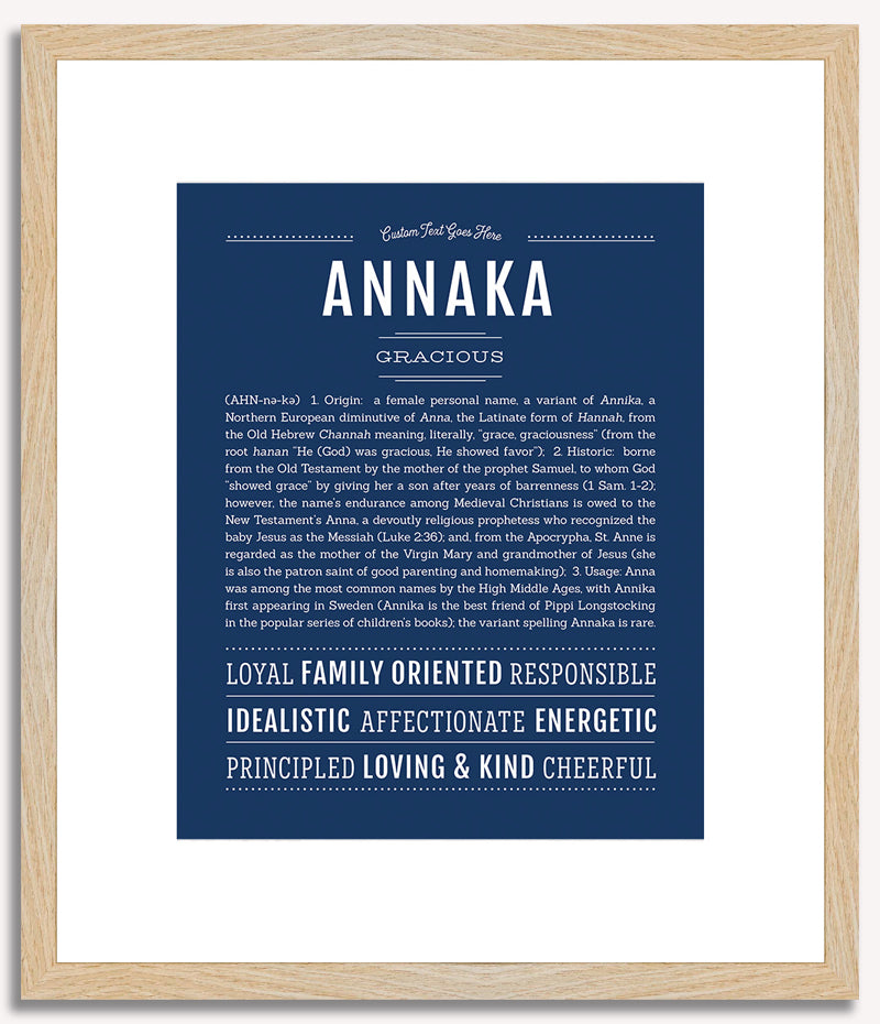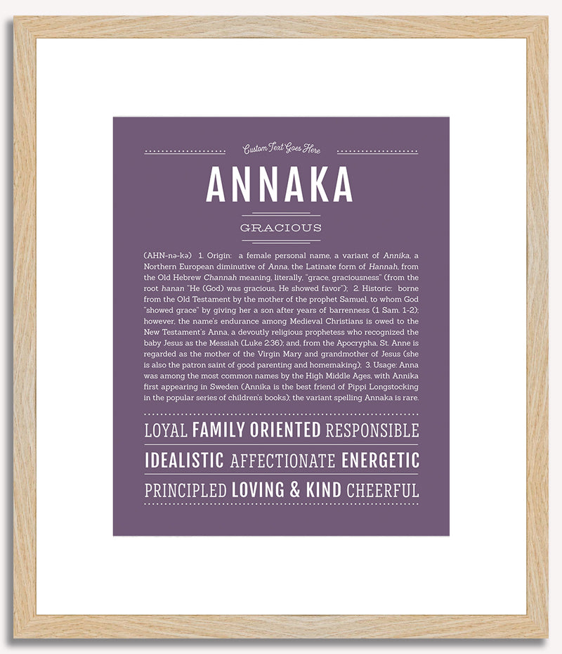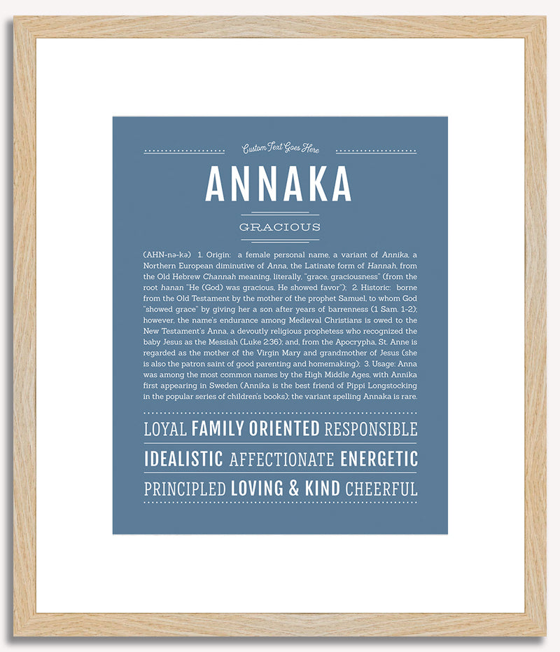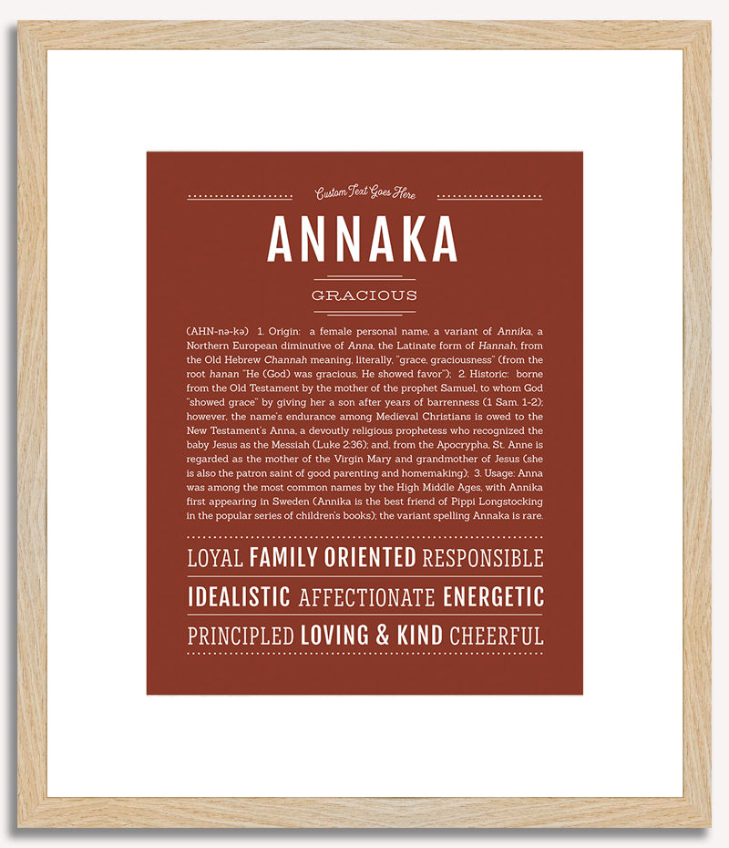 Names Stories® is not only a timeless keepsake of Annaka’s name, but a thoughtful reminder of who Annaka is: today, tomorrow, and always.