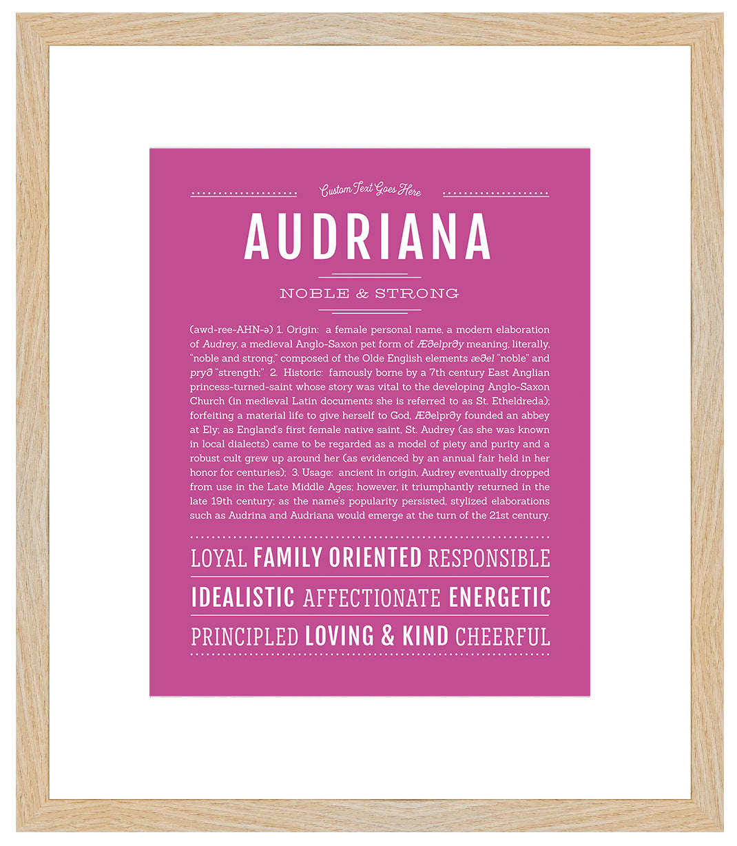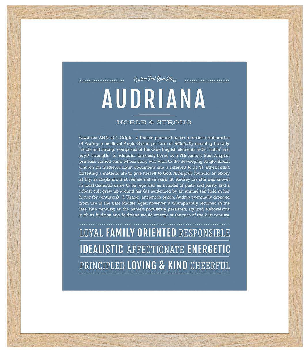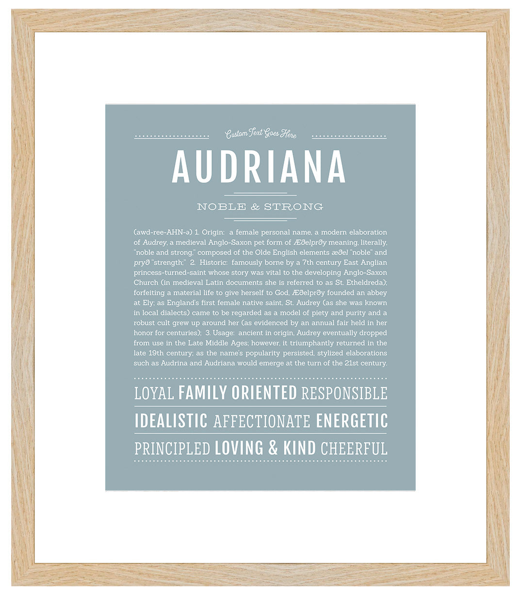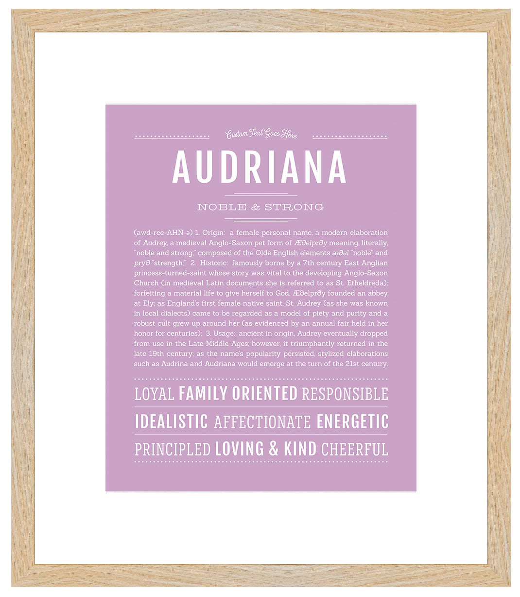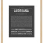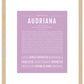 Names Stories® is not only a timeless keepsake of Audriana’s name, but a thoughtful reminder of who Audriana is: today, tomorrow, and always.