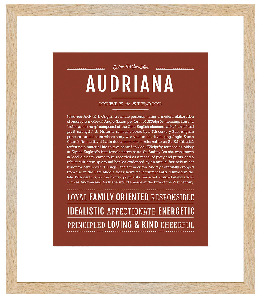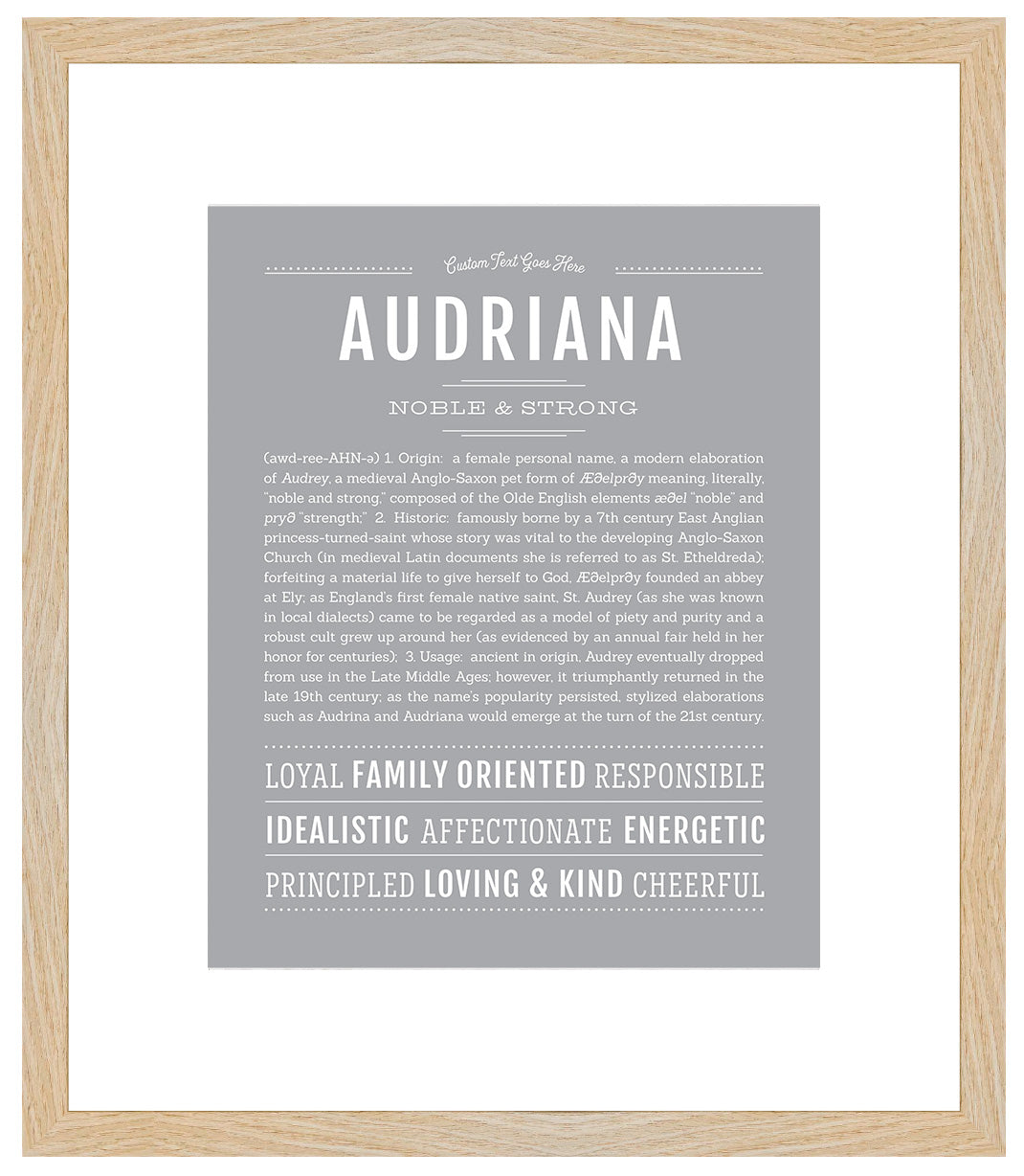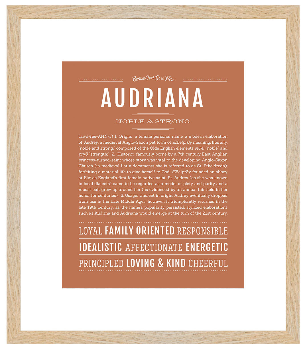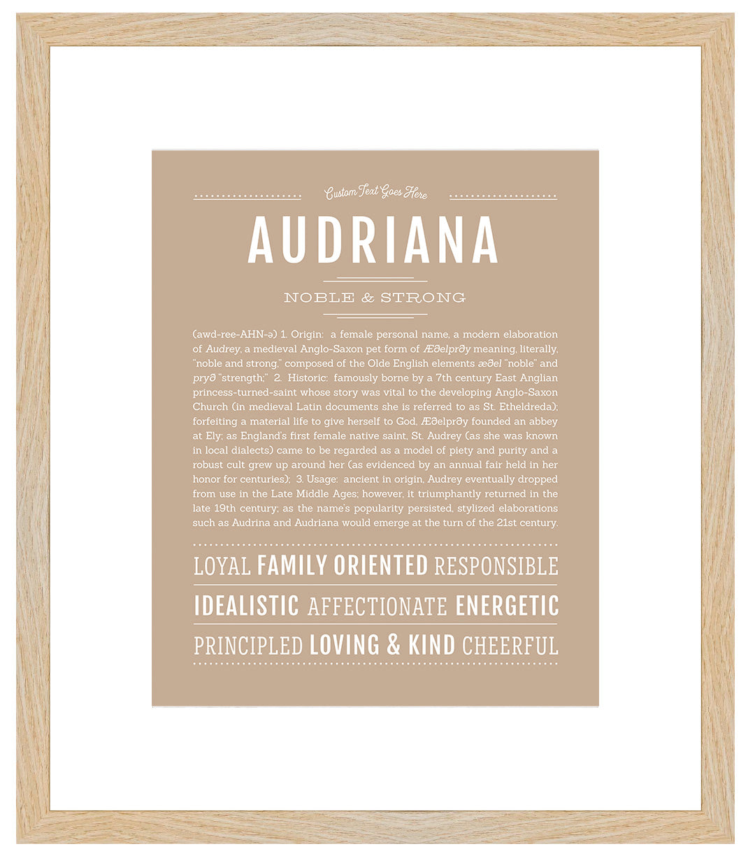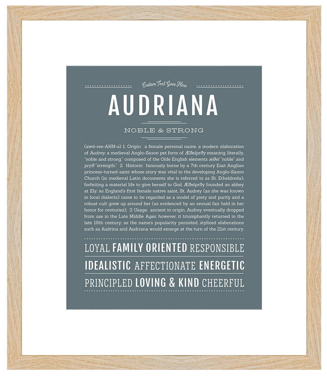 Names Stories® is not only a timeless keepsake of Audriana’s name, but a thoughtful reminder of who Audriana is: today, tomorrow, and always.