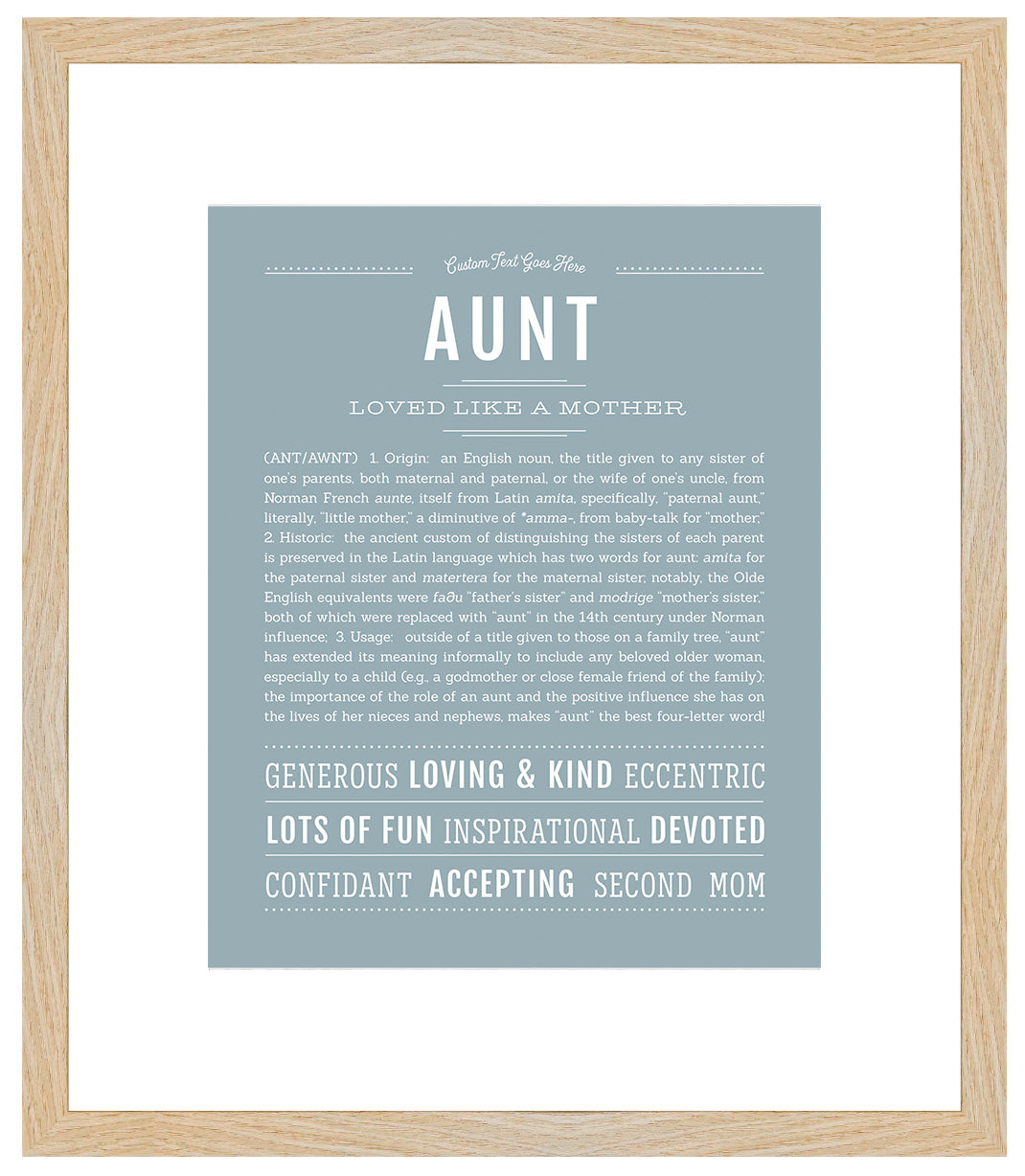 Names Stories® is not only a timeless keepsake of Aunt’s name, but a thoughtful reminder of who Aunt is: today, tomorrow, and always.
