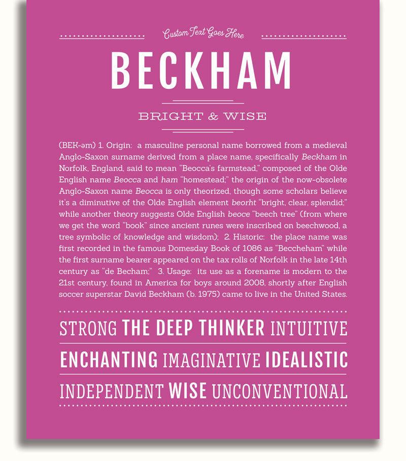Names Stories® is not only a timeless keepsake of Beckham’s name, but a thoughtful reminder of who Beckham is: today, tomorrow, and always.