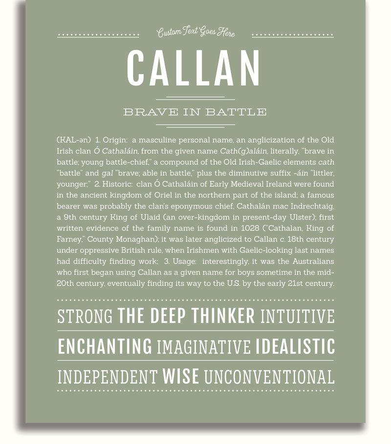 Names Stories® is not only a timeless keepsake of Callan’s name, but a thoughtful reminder of who Callan is: today, tomorrow, and always.