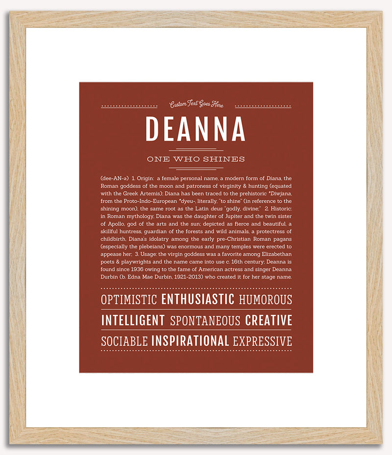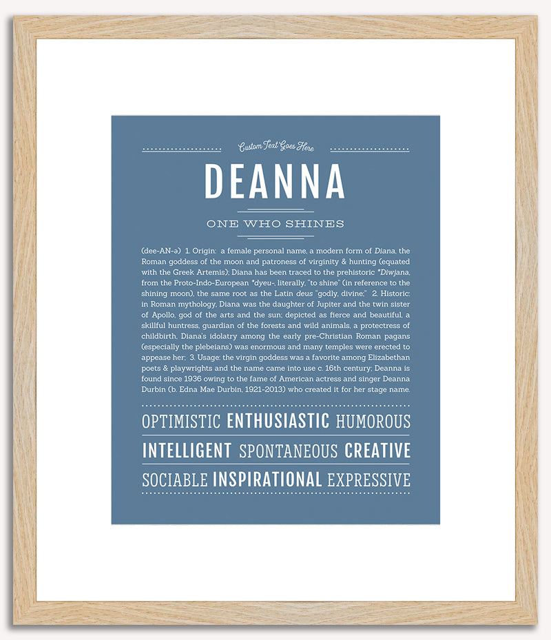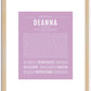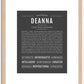 Names Stories® is not only a timeless keepsake of Deanna’s name, but a thoughtful reminder of who Deanna is: today, tomorrow, and always.