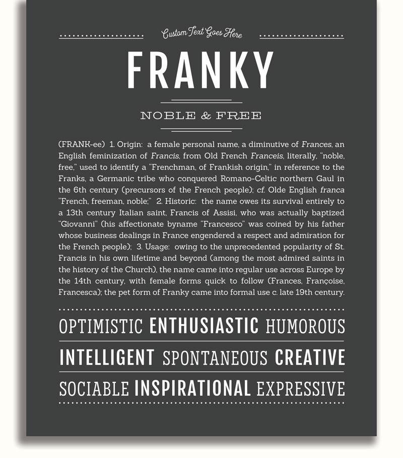 Names Stories® is not only a timeless keepsake of Franky’s name, but a thoughtful reminder of who Franky is: today, tomorrow, and always.