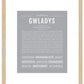 Names Stories® is not only a timeless keepsake of Gwladys’s name, but a thoughtful reminder of who Gwladys is: today, tomorrow, and always.