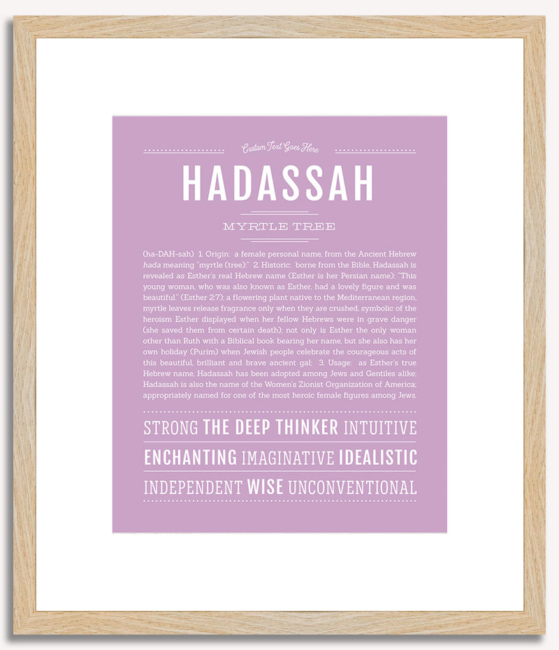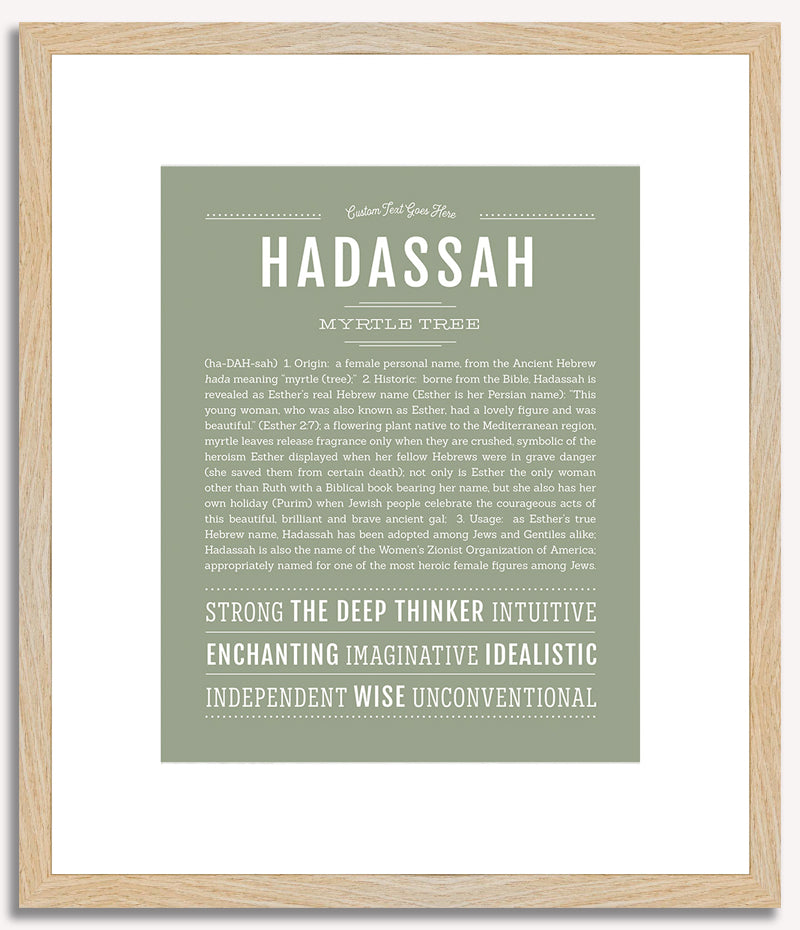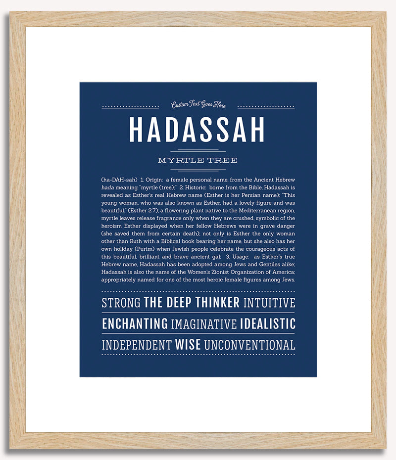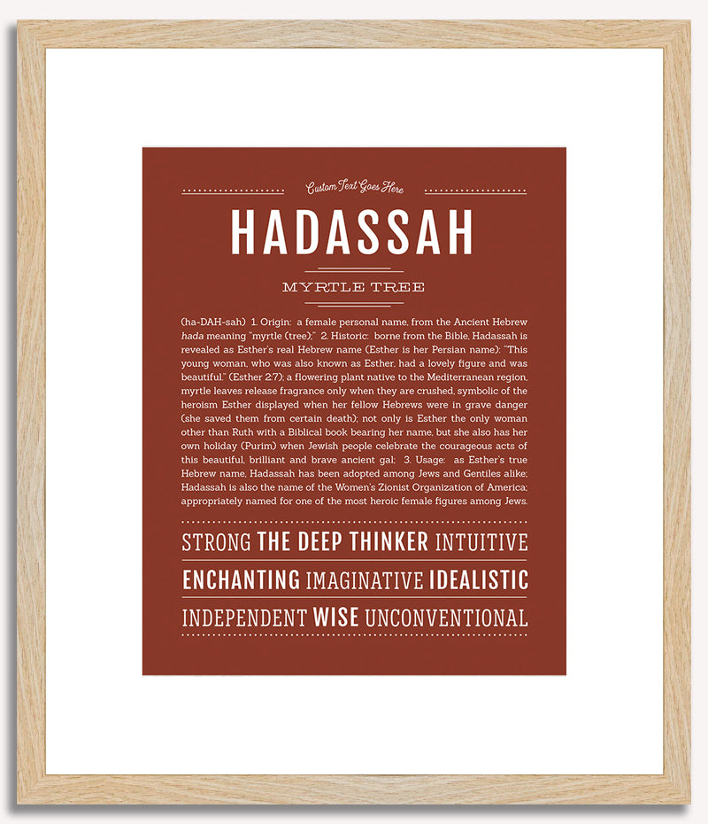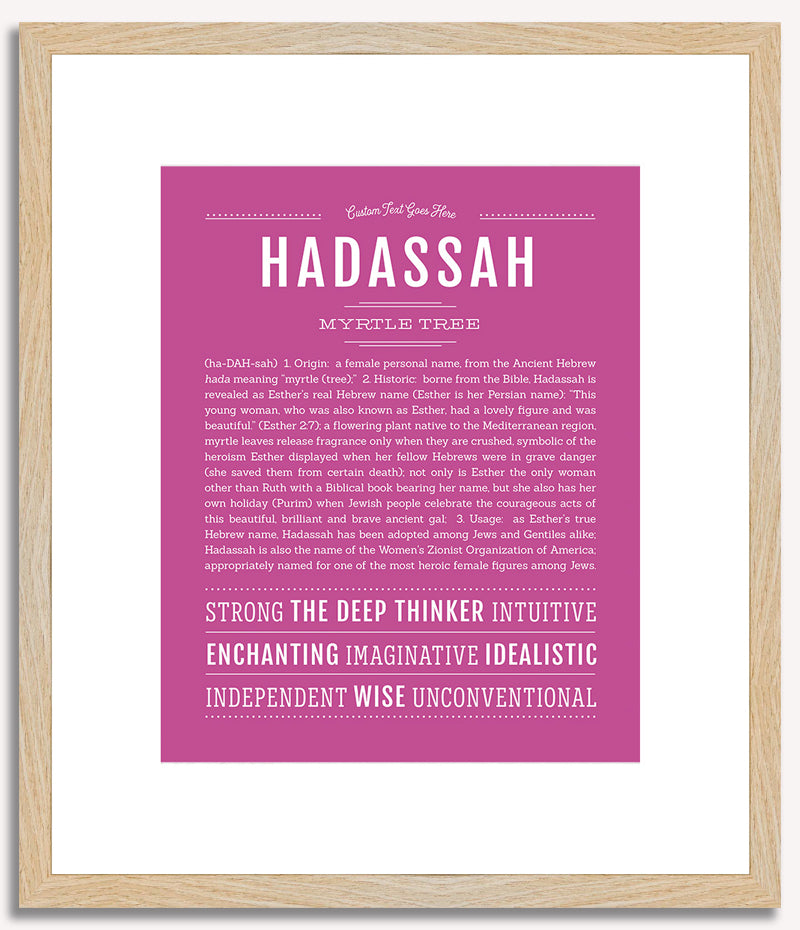 Names Stories® is not only a timeless keepsake of Hadassah’s name, but a thoughtful reminder of who Hadassah is: today, tomorrow, and always.