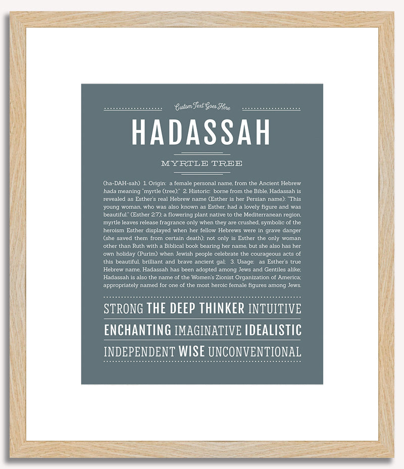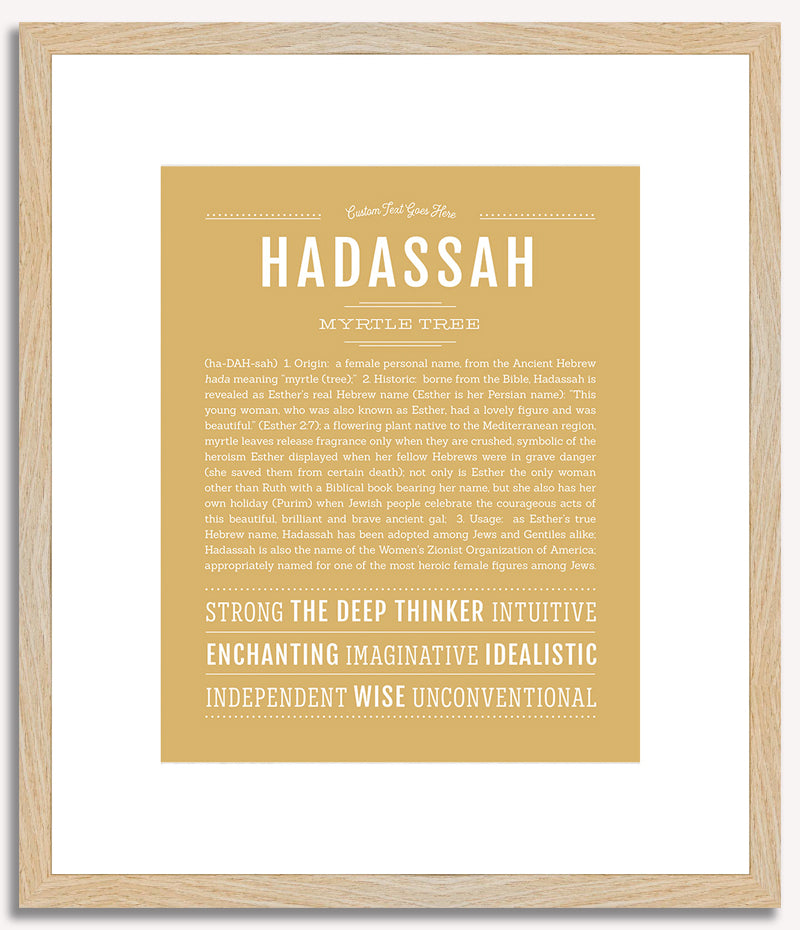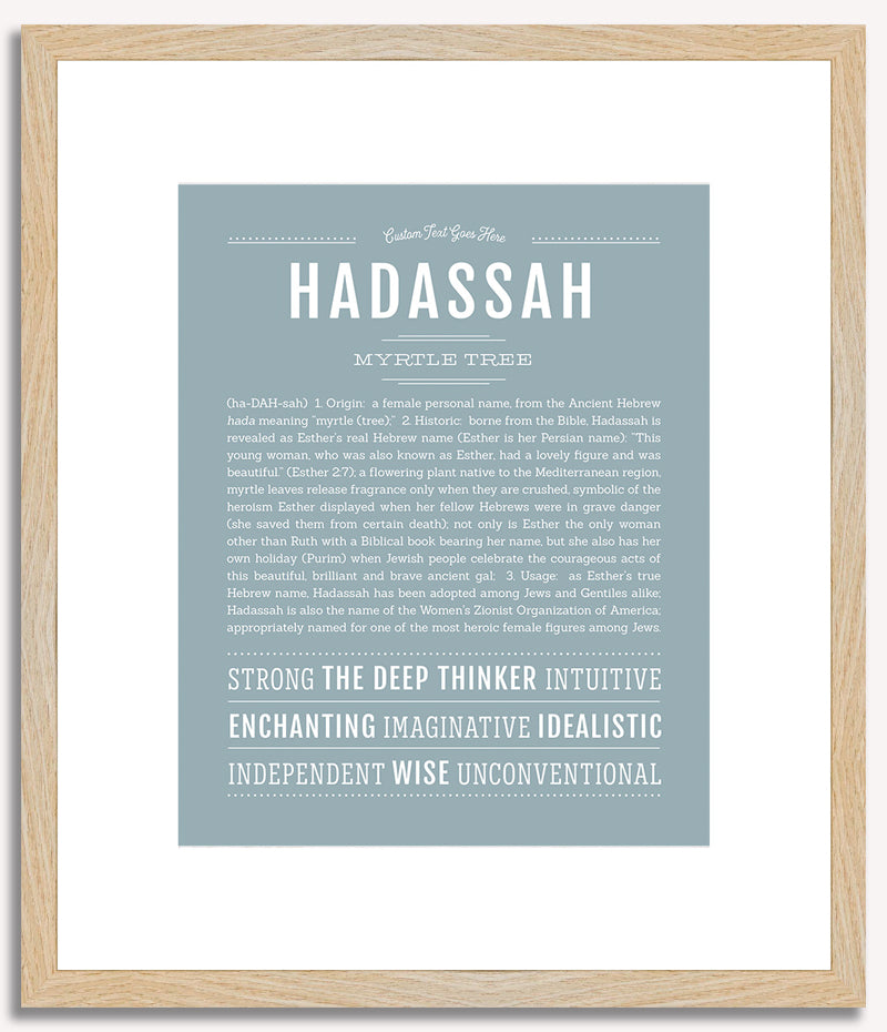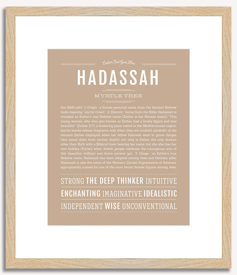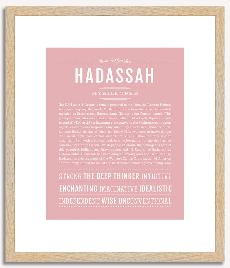 Names Stories® is not only a timeless keepsake of Hadassah’s name, but a thoughtful reminder of who Hadassah is: today, tomorrow, and always.