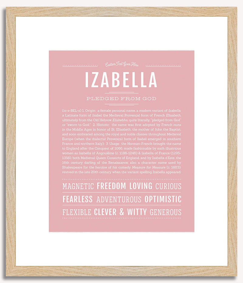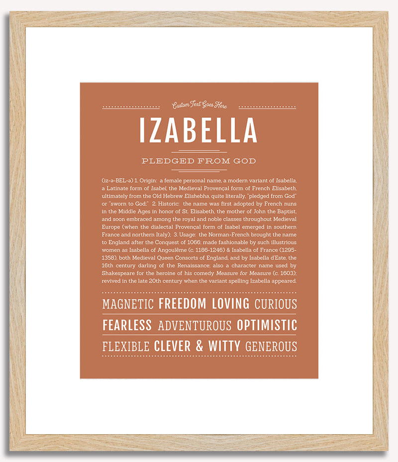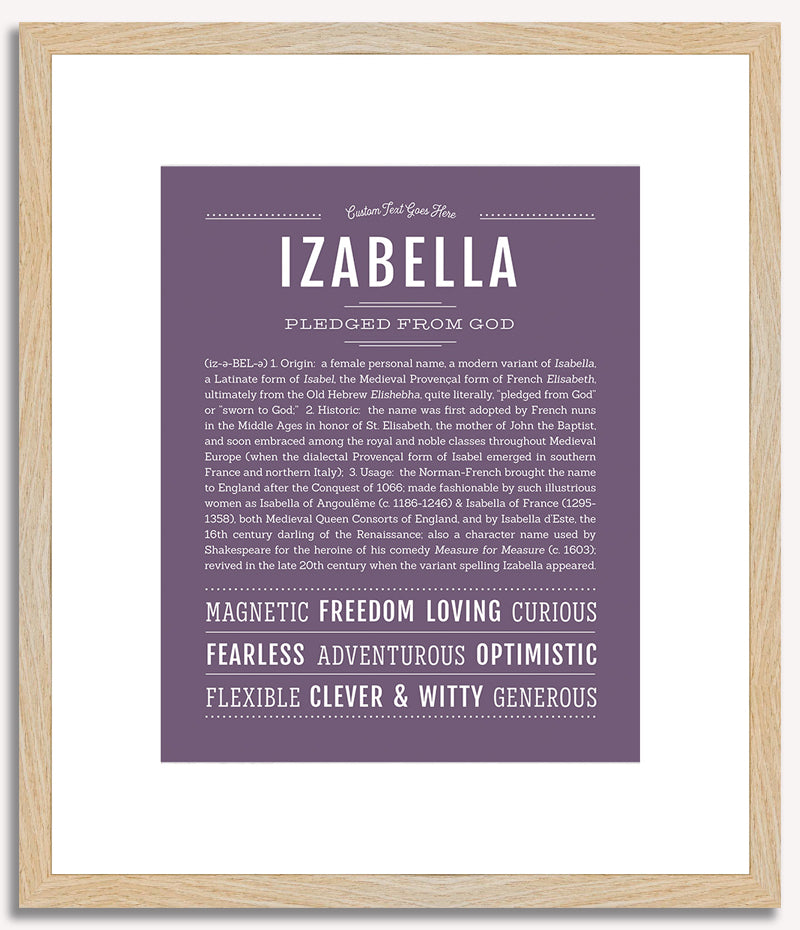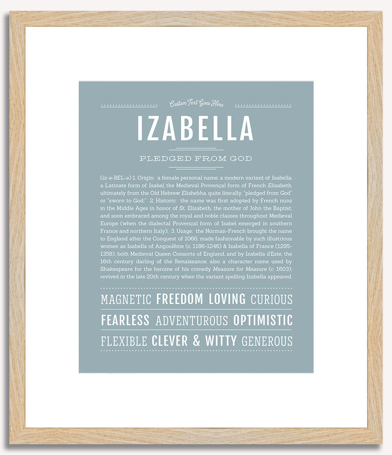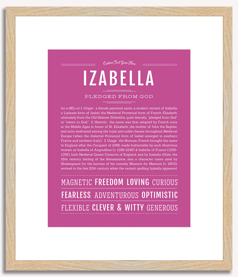 Names Stories® is not only a timeless keepsake of Izabella’s name, but a thoughtful reminder of who Izabella is: today, tomorrow, and always.