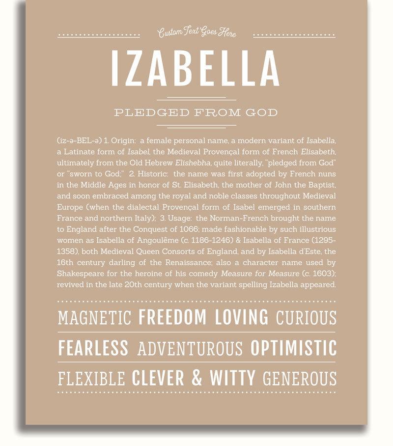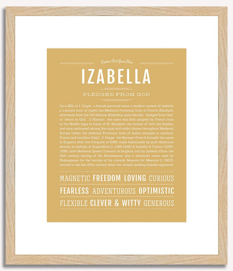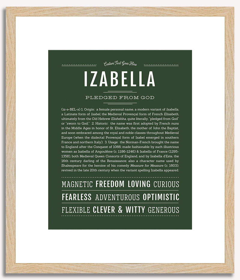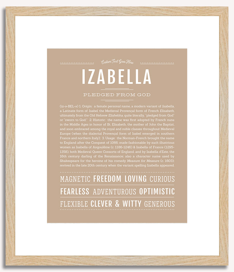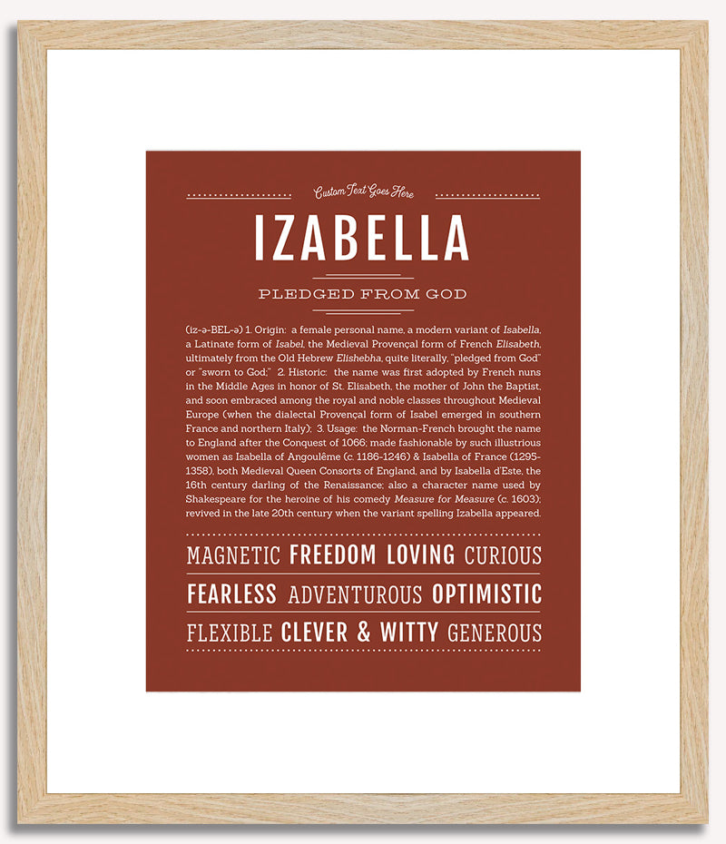 Names Stories® is not only a timeless keepsake of Izabella’s name, but a thoughtful reminder of who Izabella is: today, tomorrow, and always.