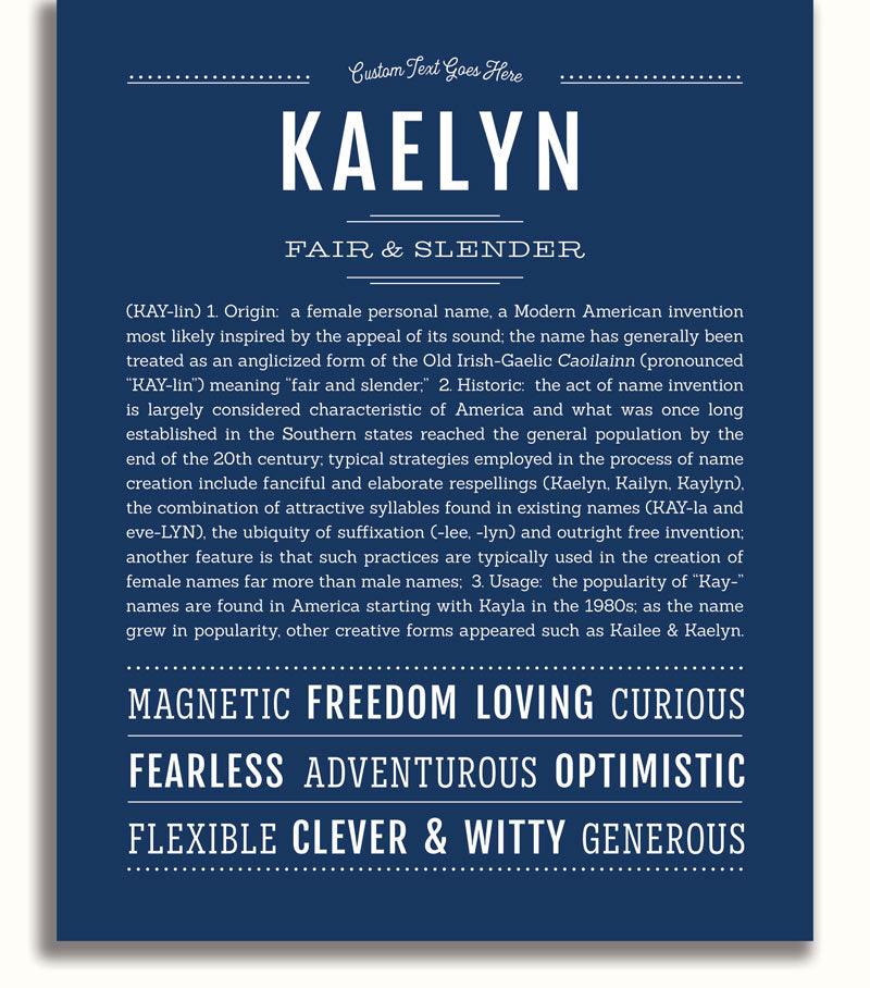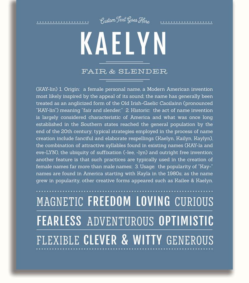 Names Stories® is not only a timeless keepsake of Kaelyn’s name, but a thoughtful reminder of who Kaelyn is: today, tomorrow, and always.