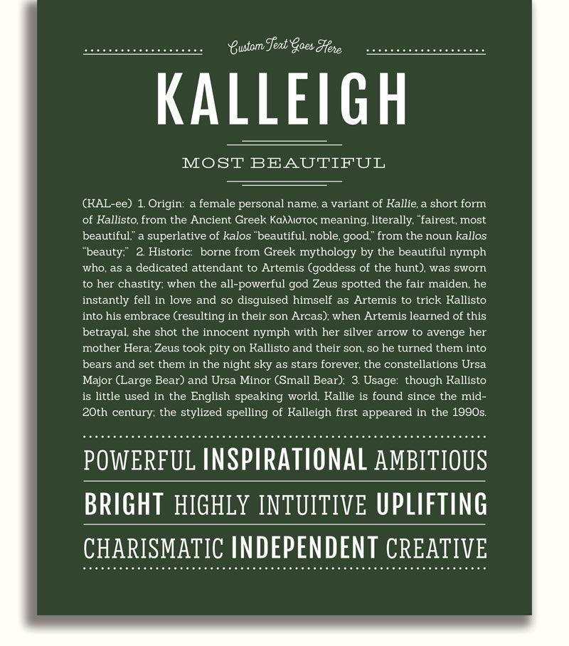 Names Stories® is not only a timeless keepsake of Kalleigh’s name, but a thoughtful reminder of who Kalleigh is: today, tomorrow, and always.