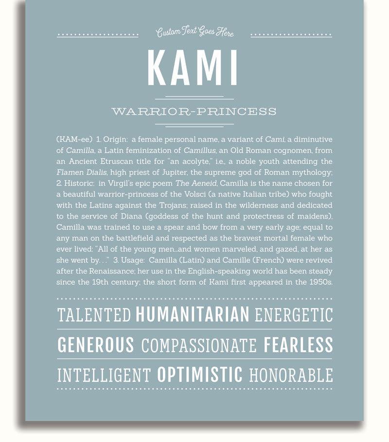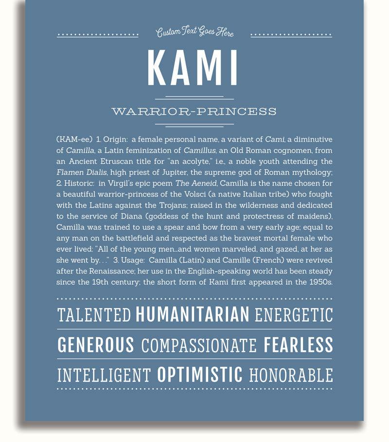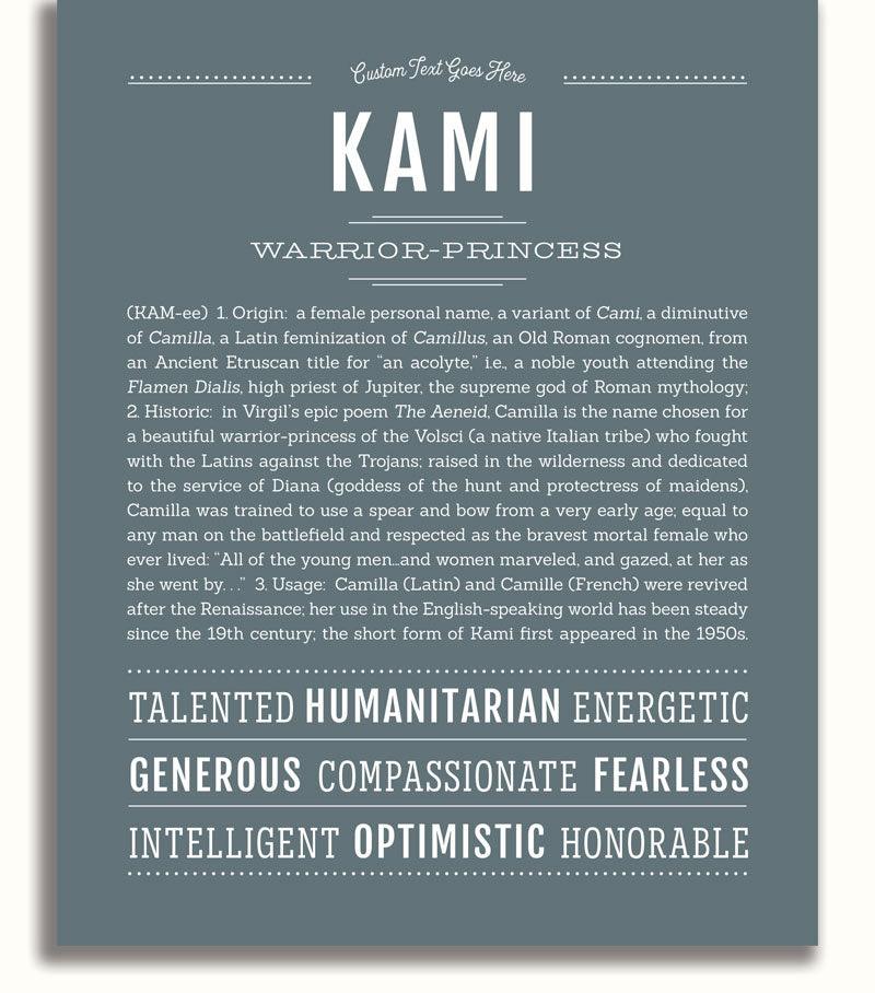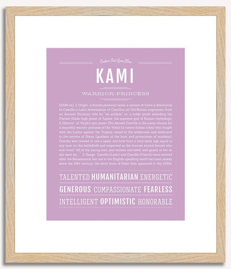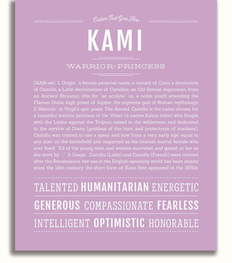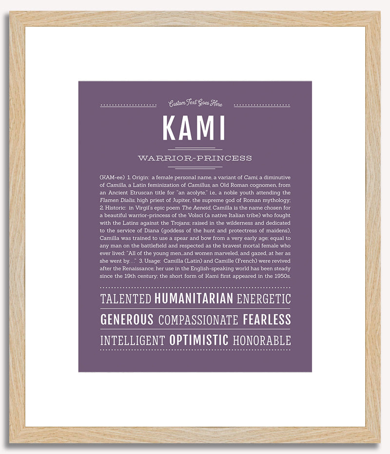 Names Stories® is not only a timeless keepsake of Kami’s name, but a thoughtful reminder of who Kami is: today, tomorrow, and always.