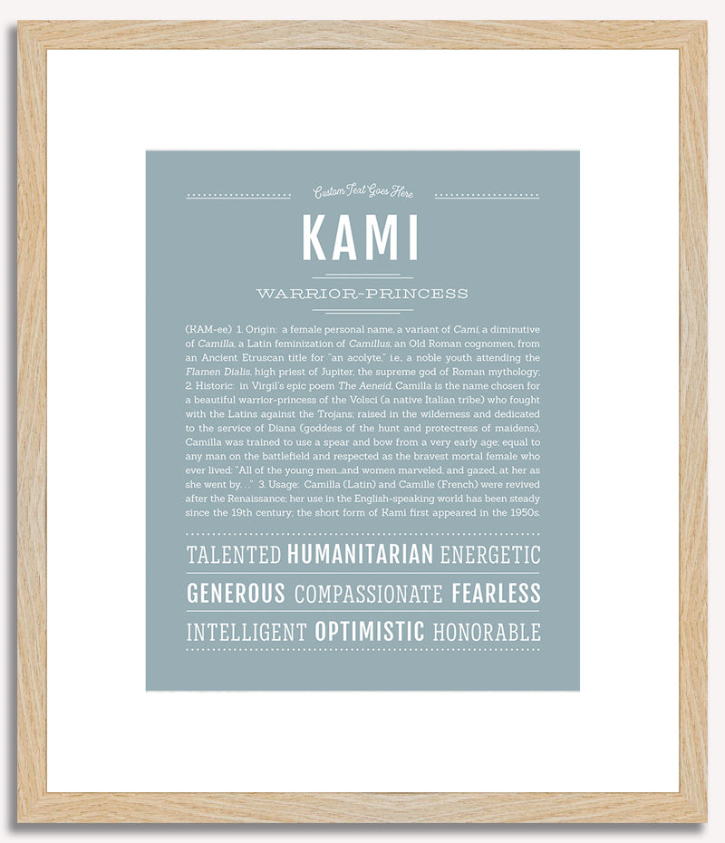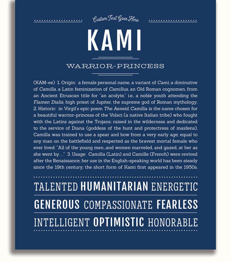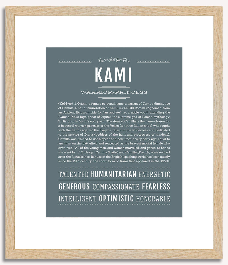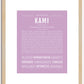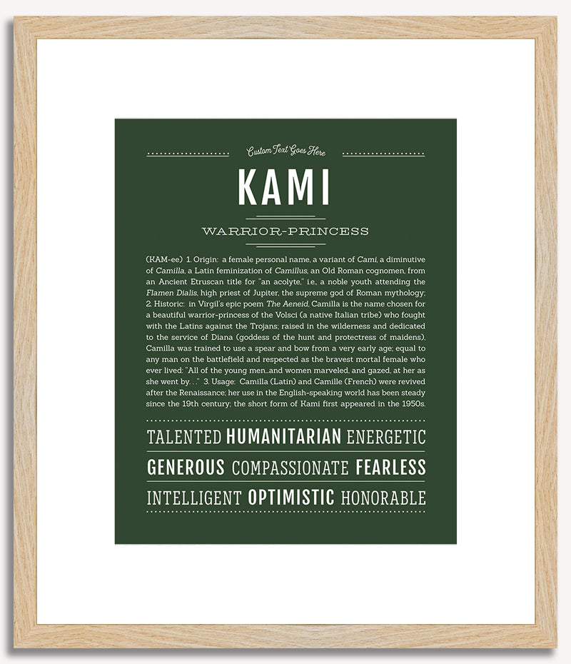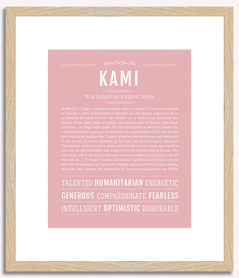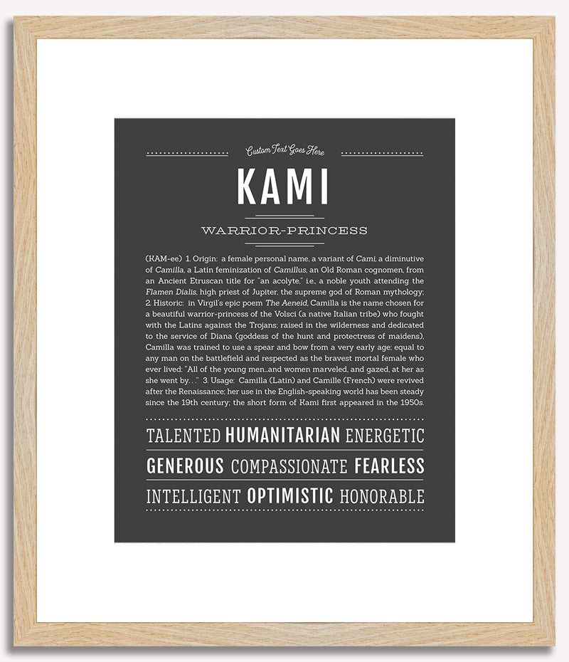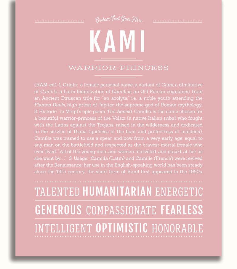 Names Stories® is not only a timeless keepsake of Kami’s name, but a thoughtful reminder of who Kami is: today, tomorrow, and always.