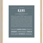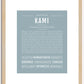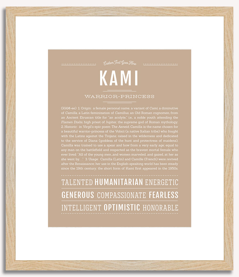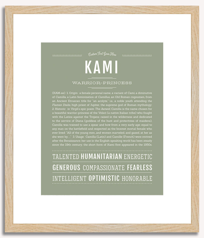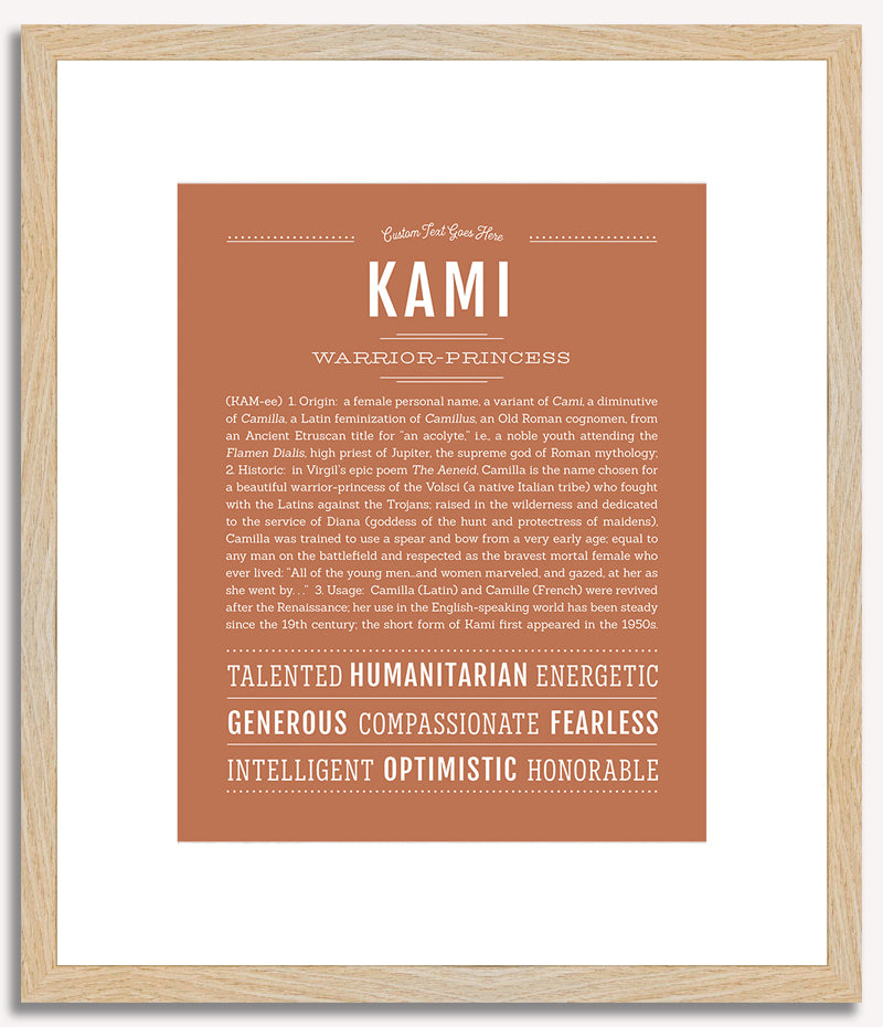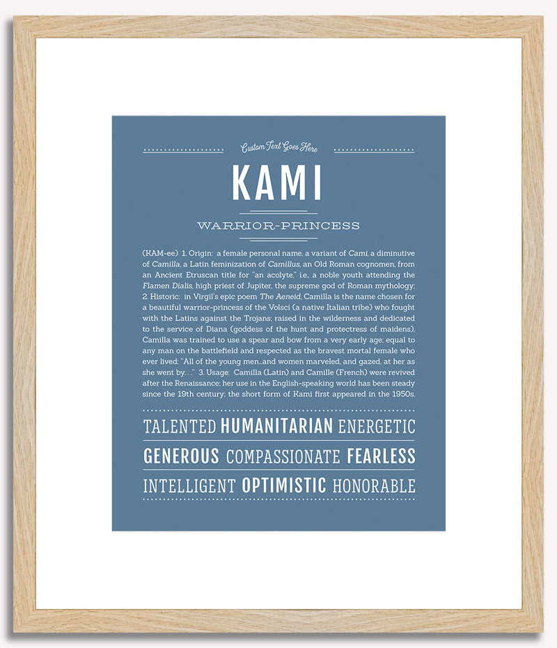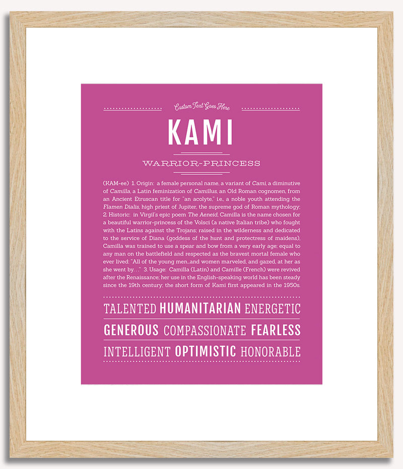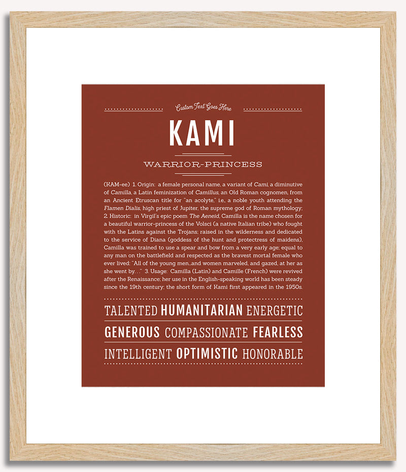 Names Stories® is not only a timeless keepsake of Kami’s name, but a thoughtful reminder of who Kami is: today, tomorrow, and always.