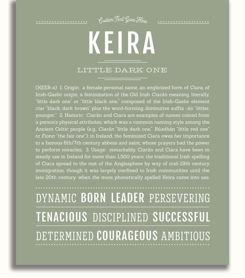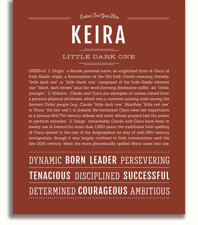 Names Stories® is not only a timeless keepsake of Keira’s name, but a thoughtful reminder of who Keira is: today, tomorrow, and always.