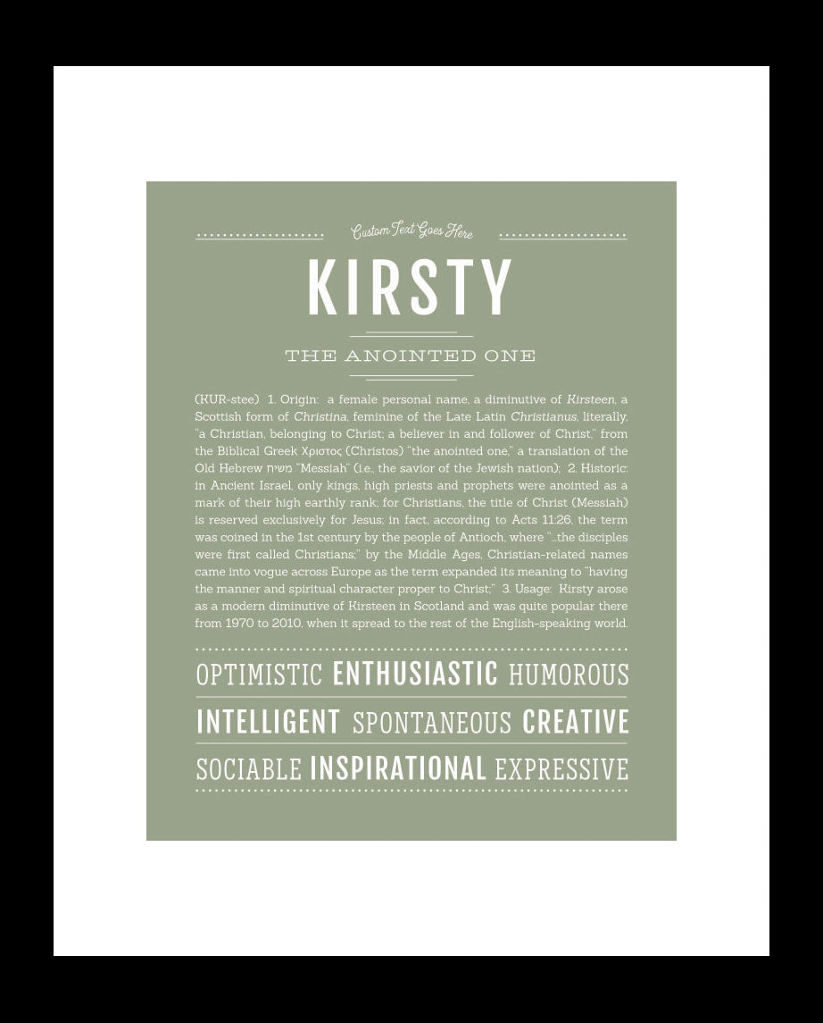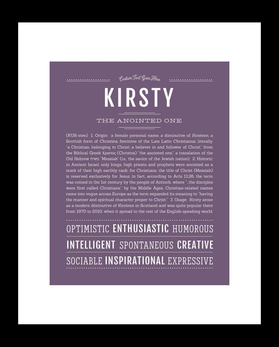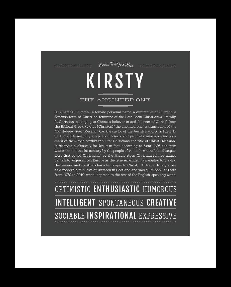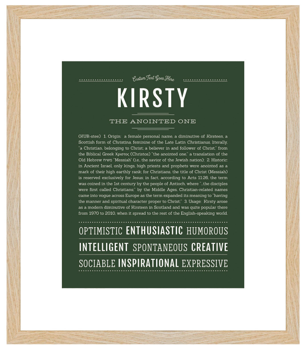 Names Stories® is not only a timeless keepsake of Kirsty’s name, but a thoughtful reminder of who Kirsty is: today, tomorrow, and always.
