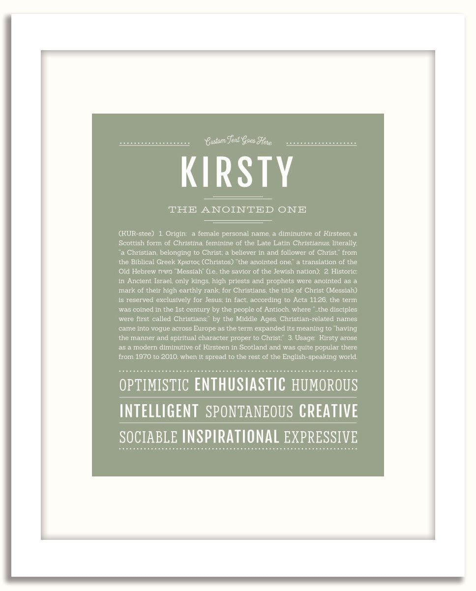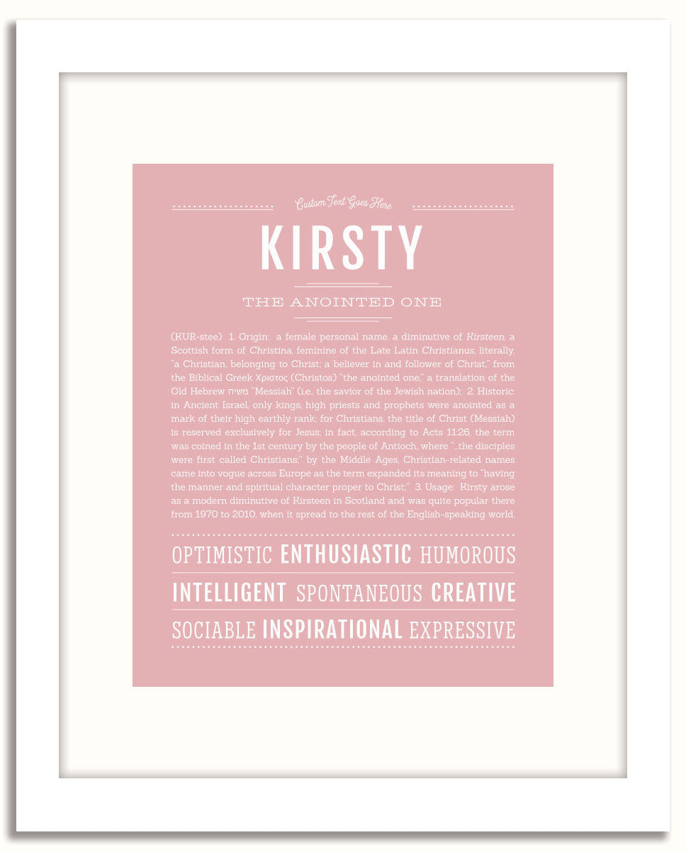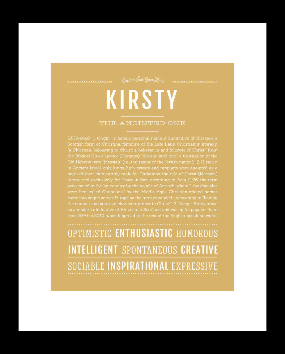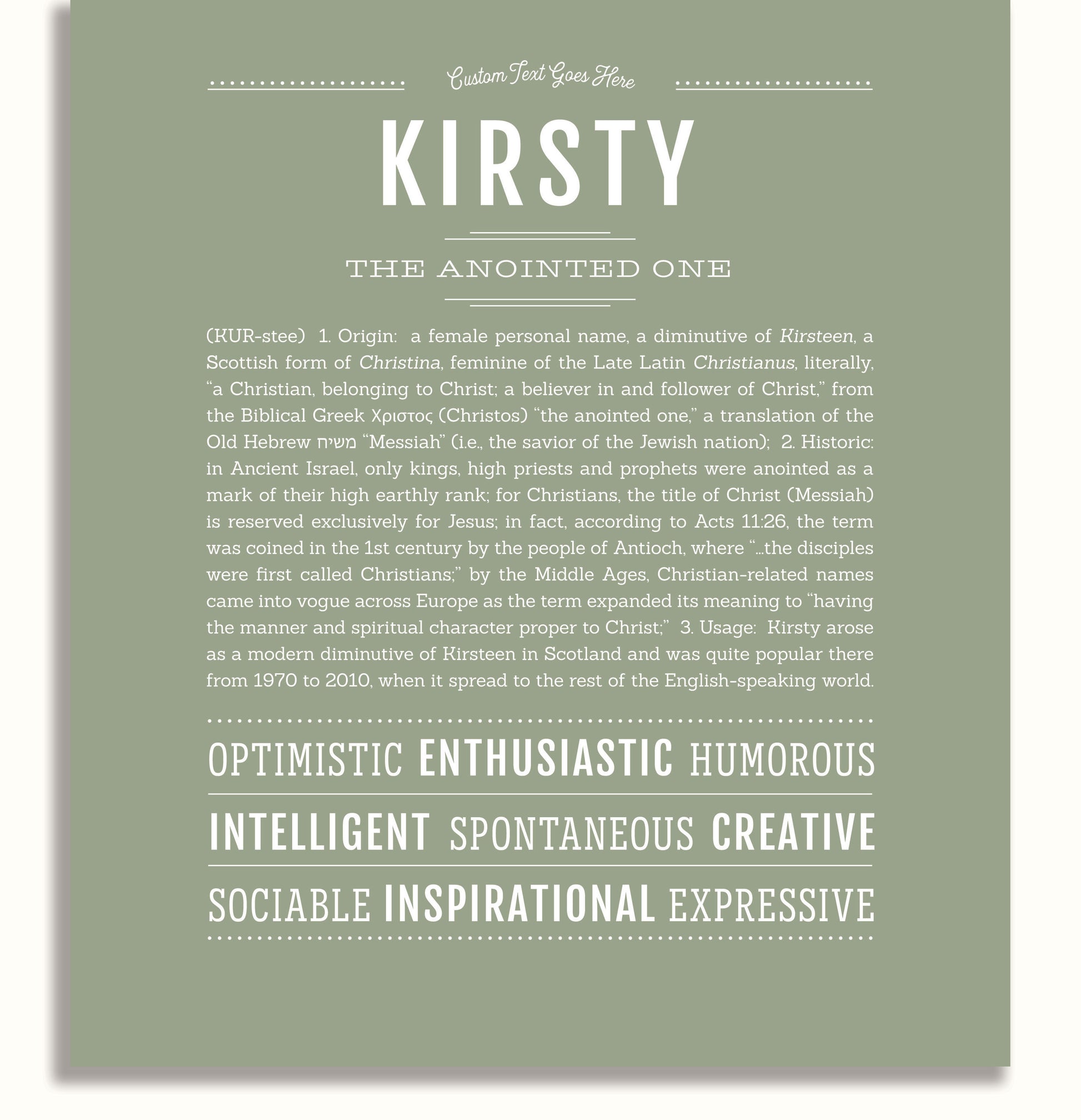 Names Stories® is not only a timeless keepsake of Kirsty’s name, but a thoughtful reminder of who Kirsty is: today, tomorrow, and always.