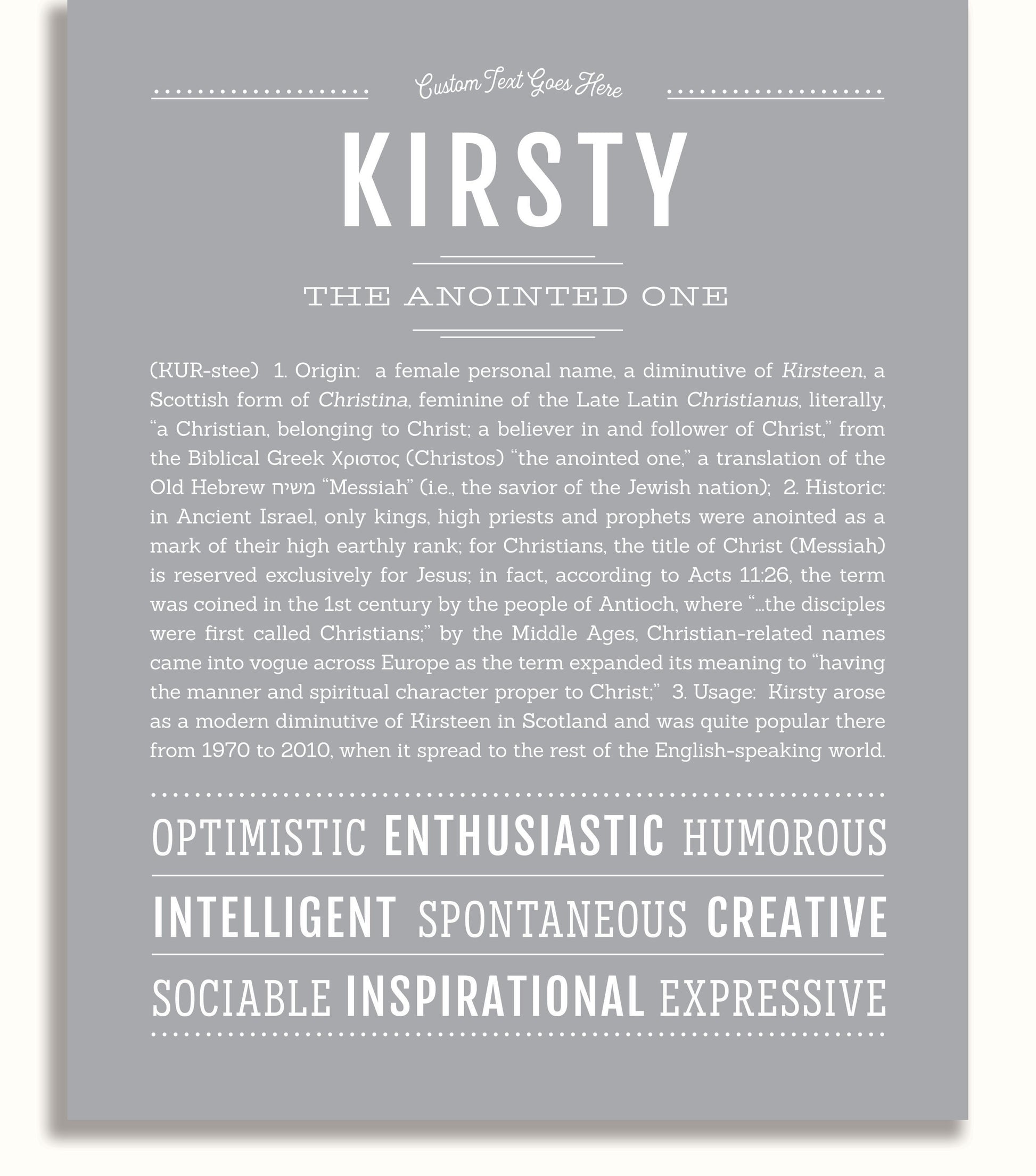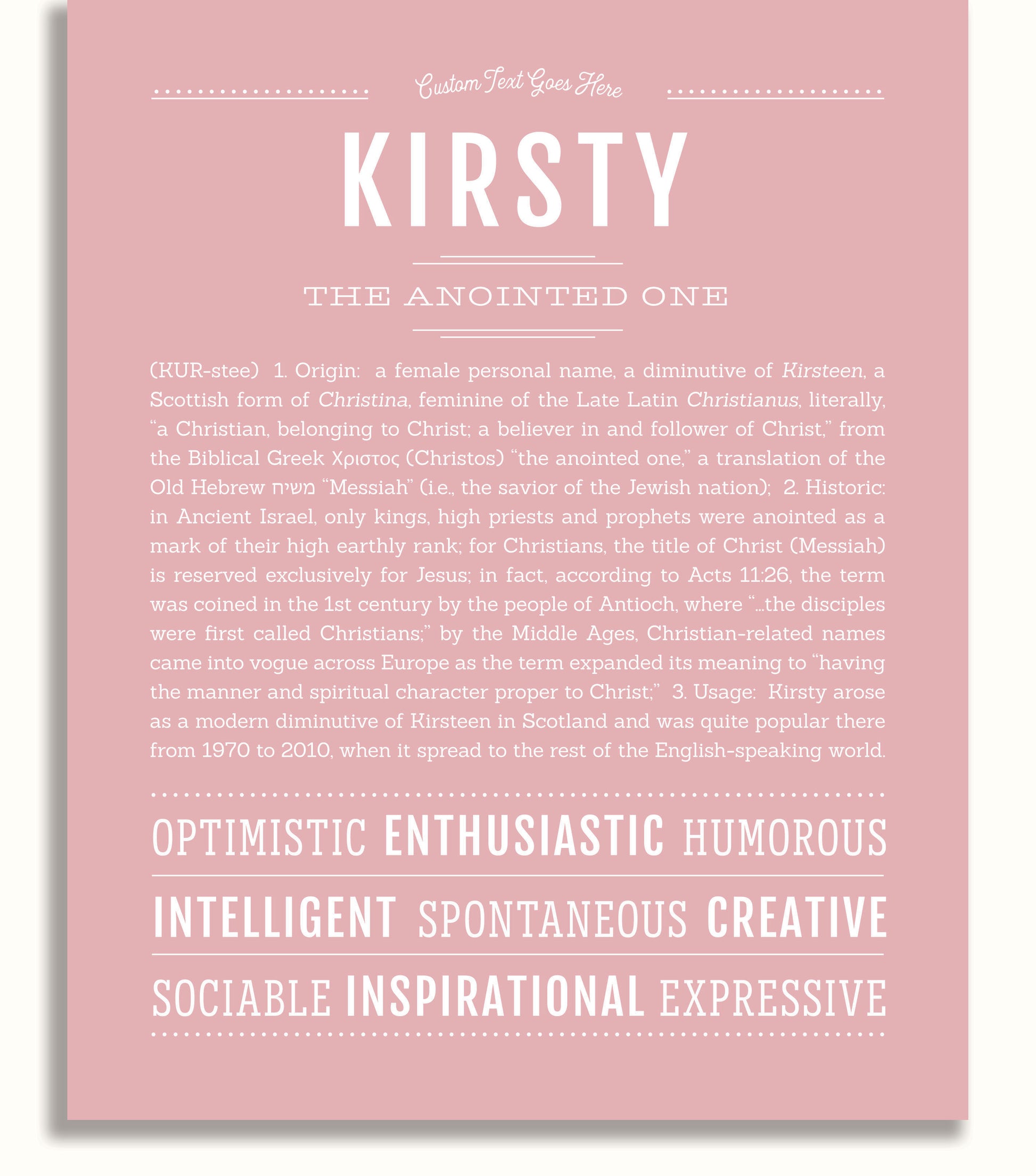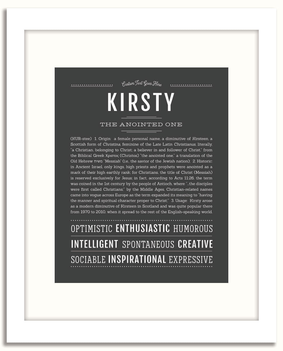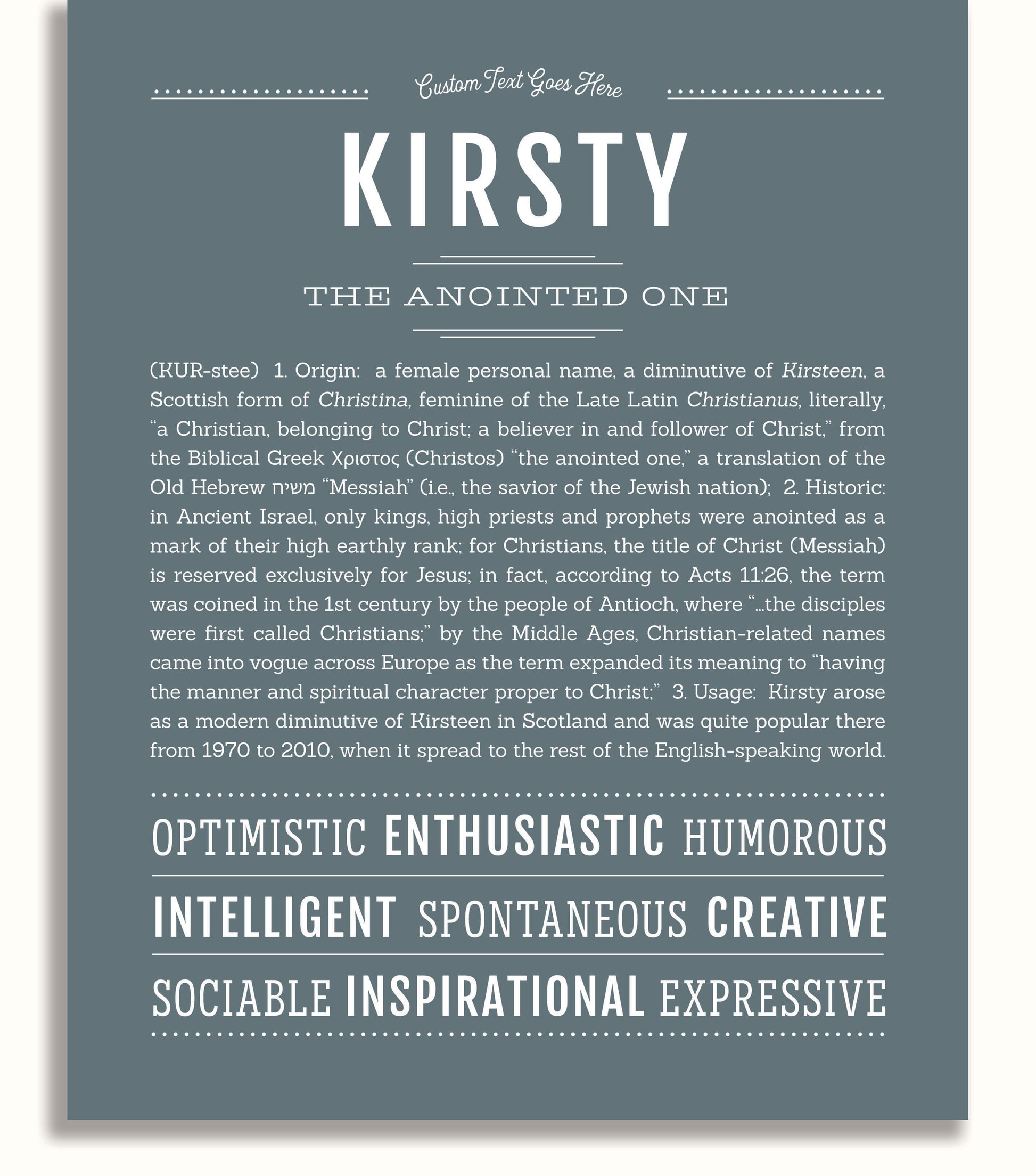 Names Stories® is not only a timeless keepsake of Kirsty’s name, but a thoughtful reminder of who Kirsty is: today, tomorrow, and always.