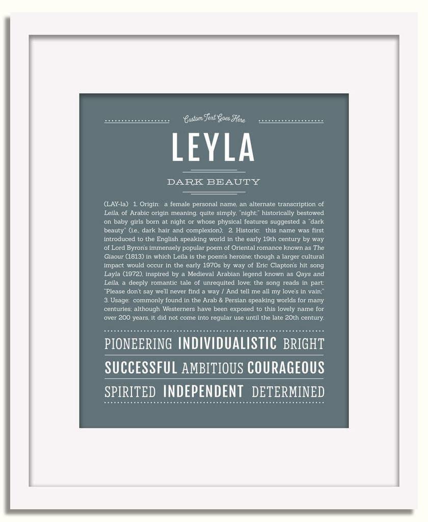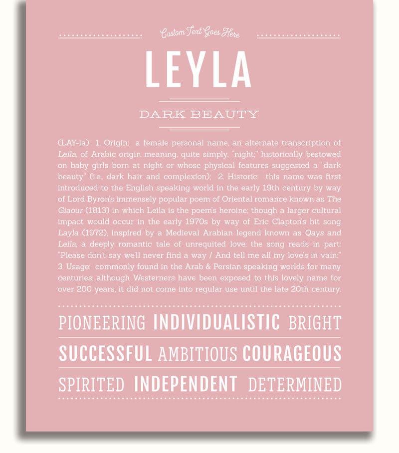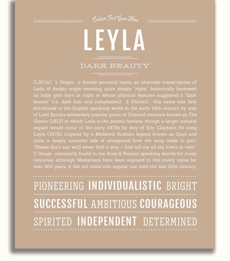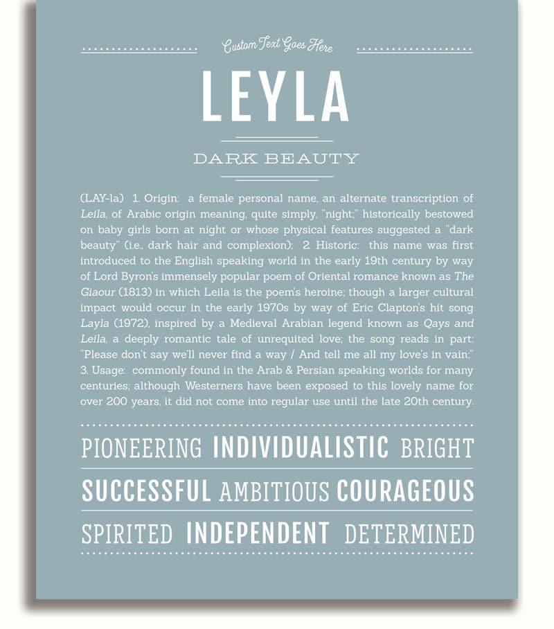 Names Stories® is not only a timeless keepsake of Leyla’s name, but a thoughtful reminder of who Leyla is: today, tomorrow, and always.
