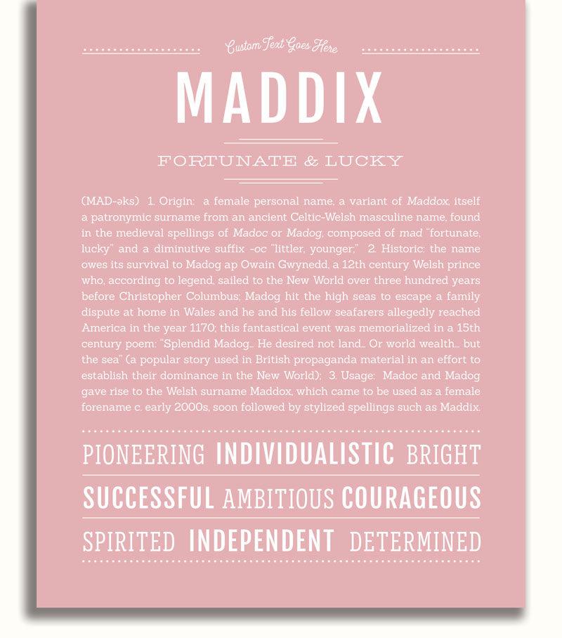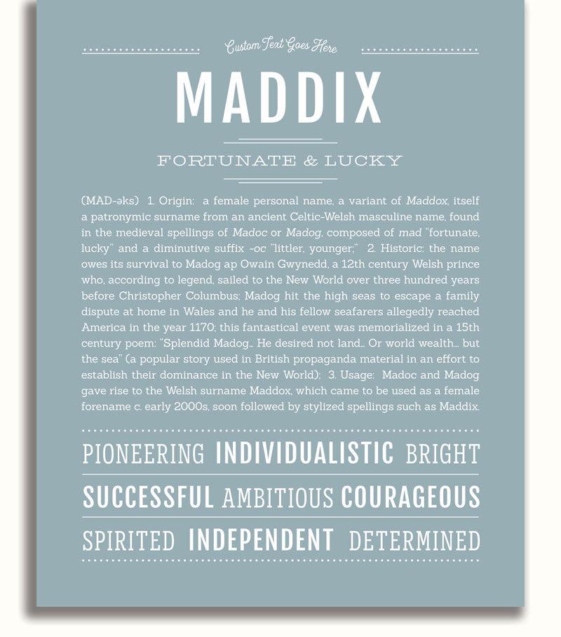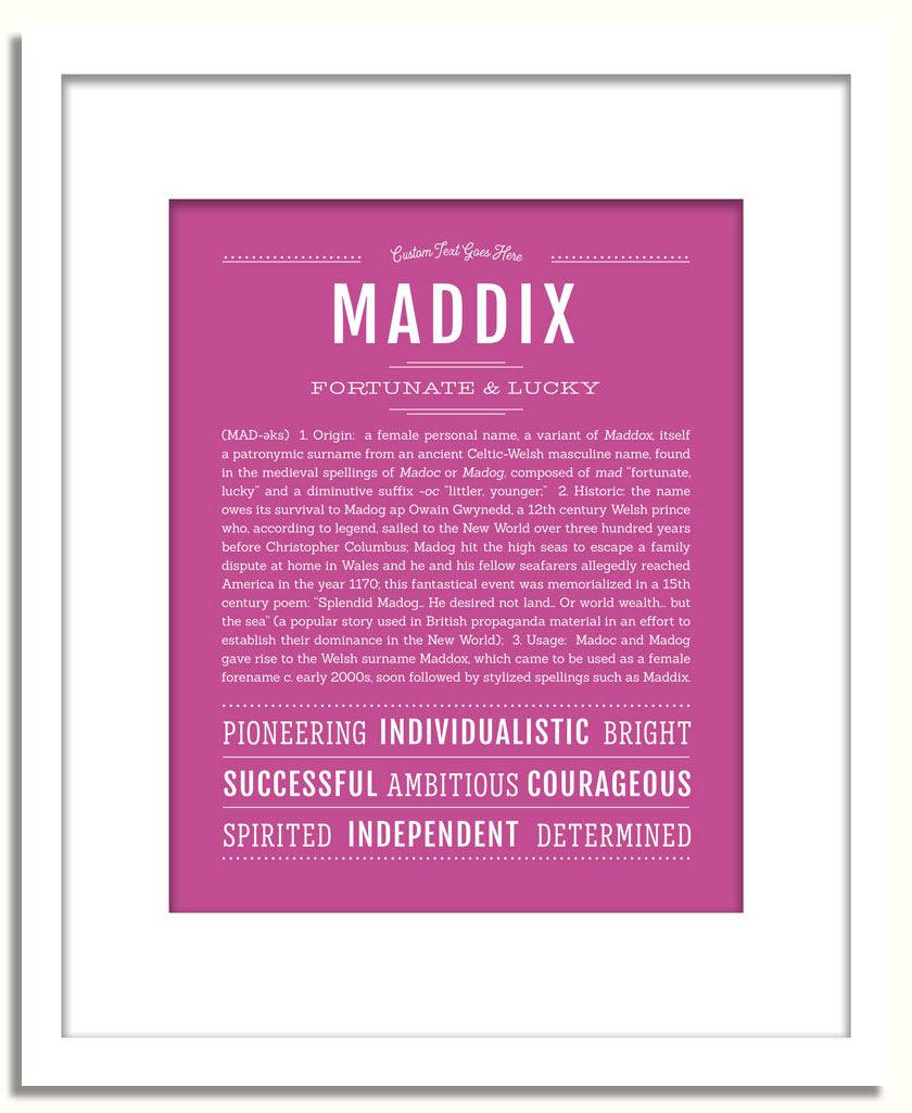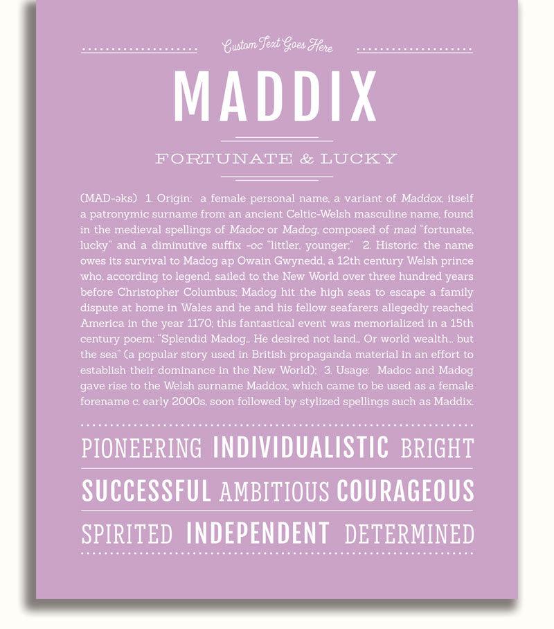 Names Stories® is not only a timeless keepsake of Maddix’s name, but a thoughtful reminder of who Maddix is: today, tomorrow, and always.
