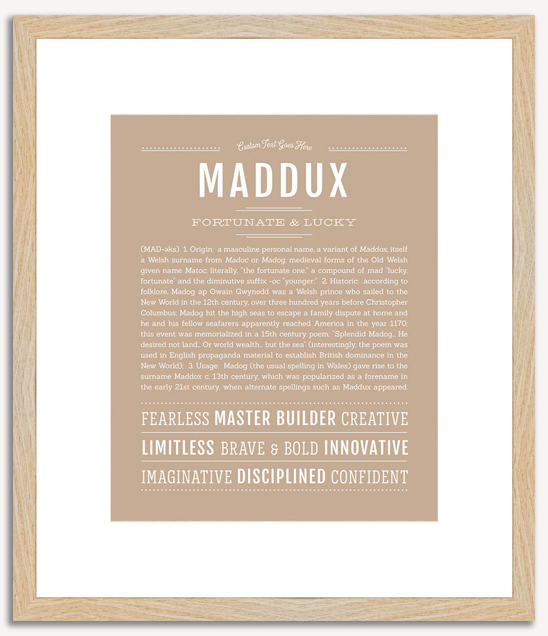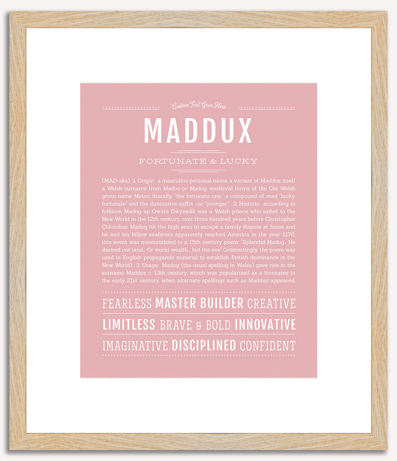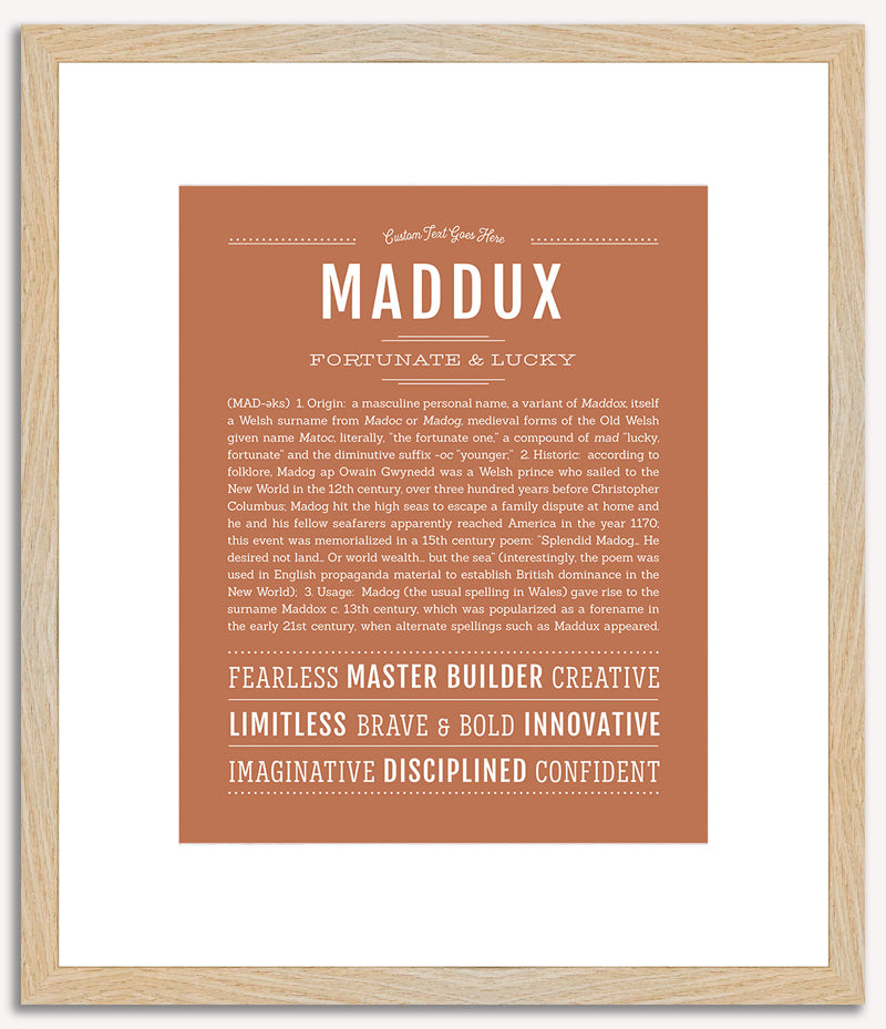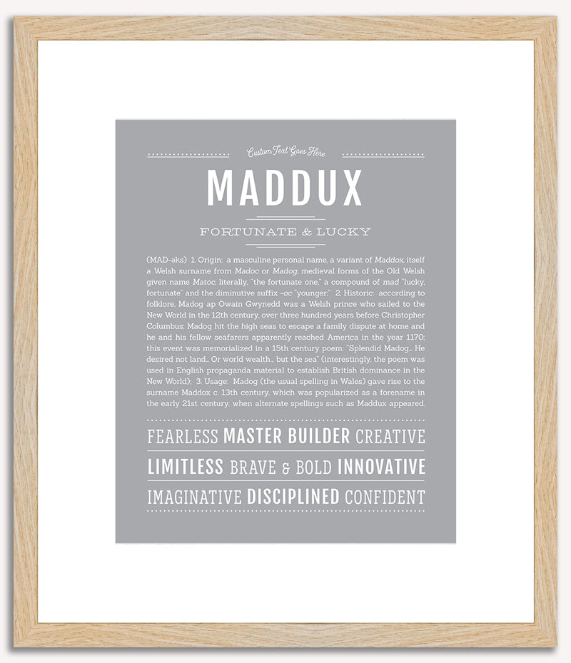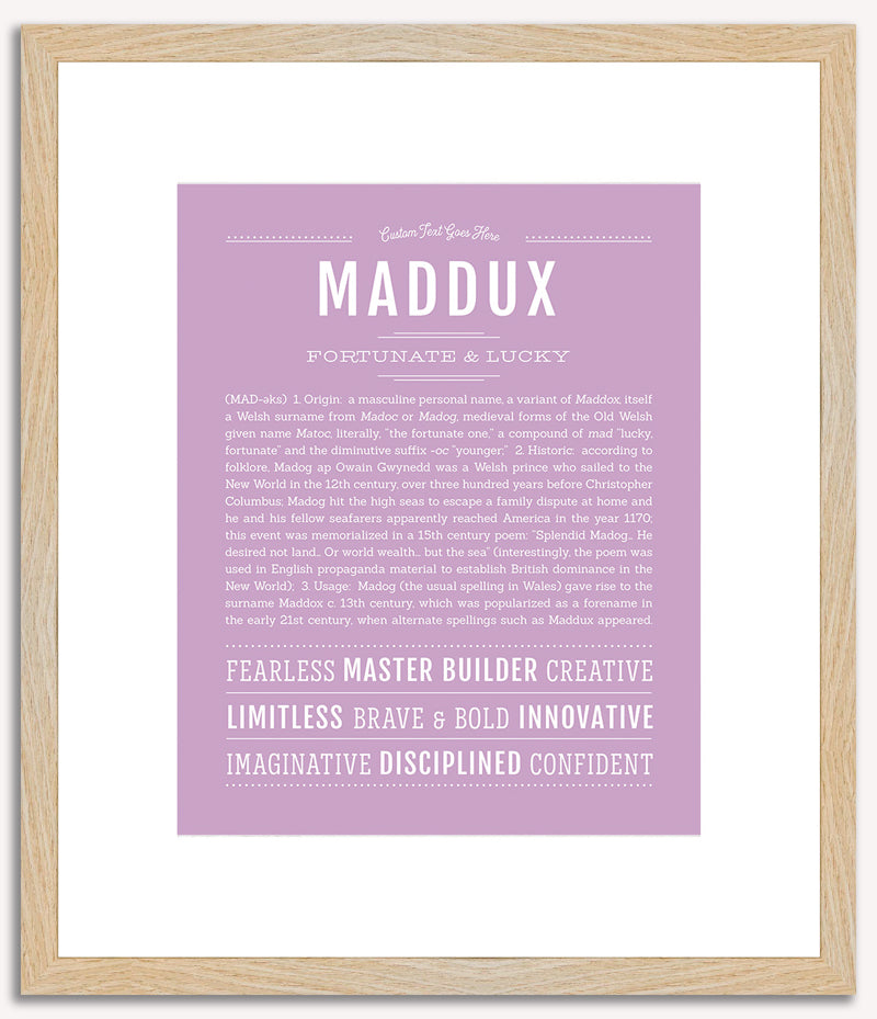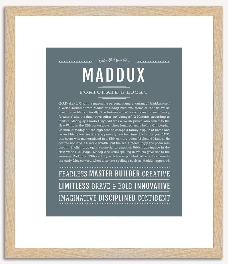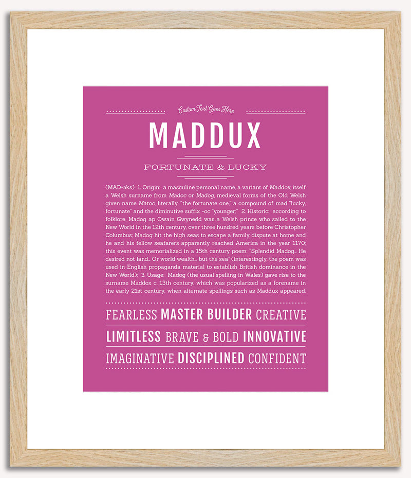 Names Stories® is not only a timeless keepsake of Maddux’s name, but a thoughtful reminder of who Maddux is: today, tomorrow, and always.