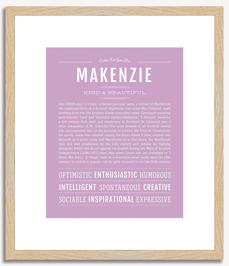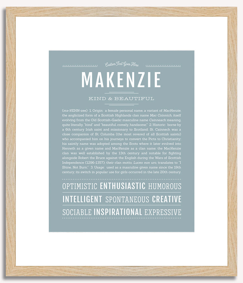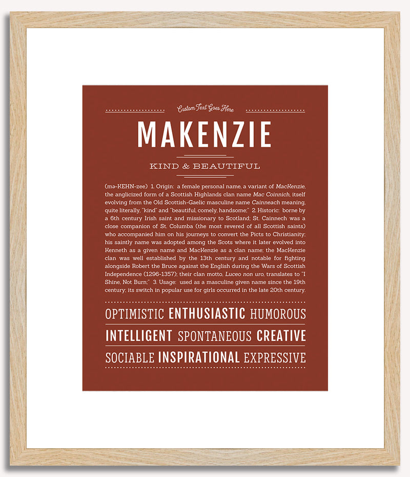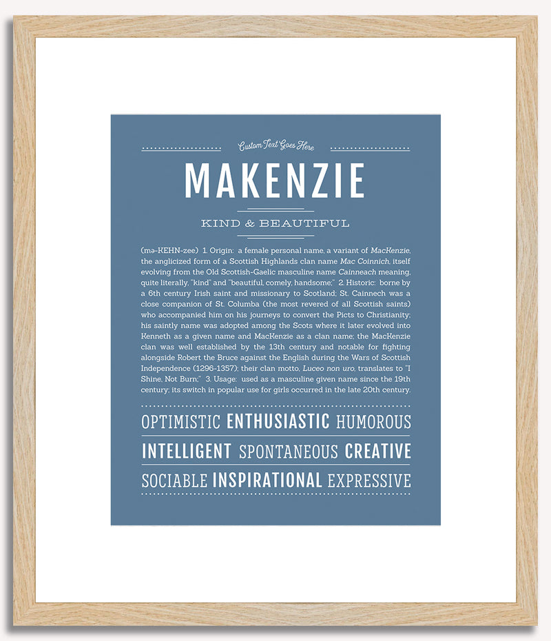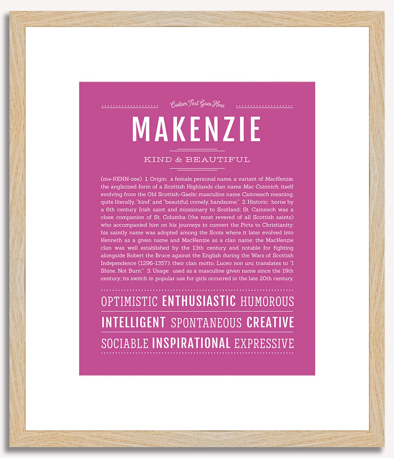 Names Stories® is not only a timeless keepsake of Makenzie’s name, but a thoughtful reminder of who Makenzie is: today, tomorrow, and always.