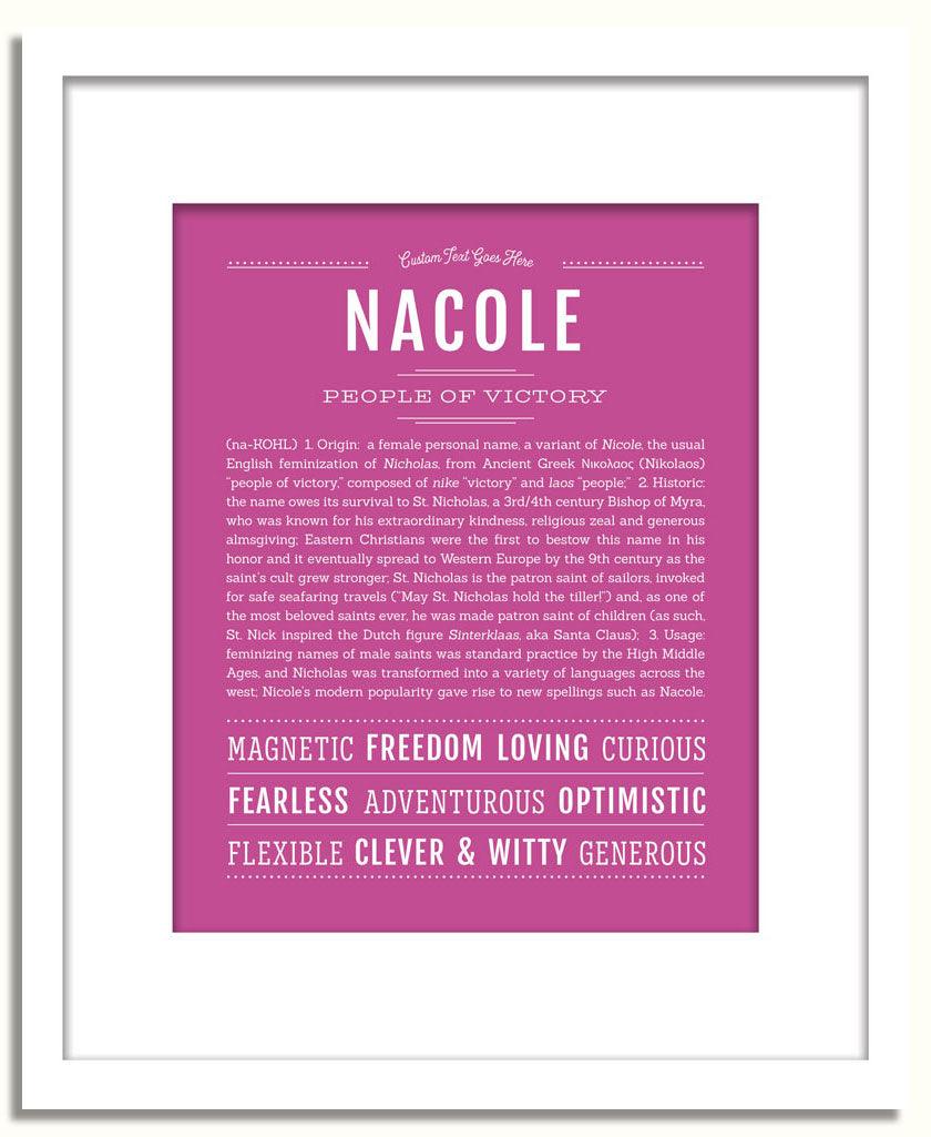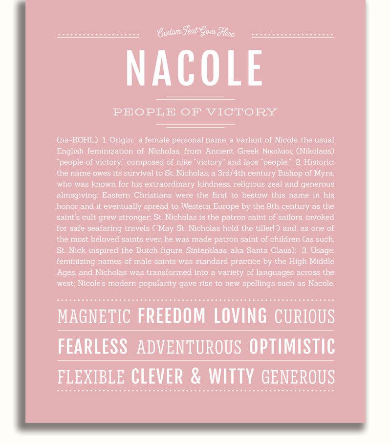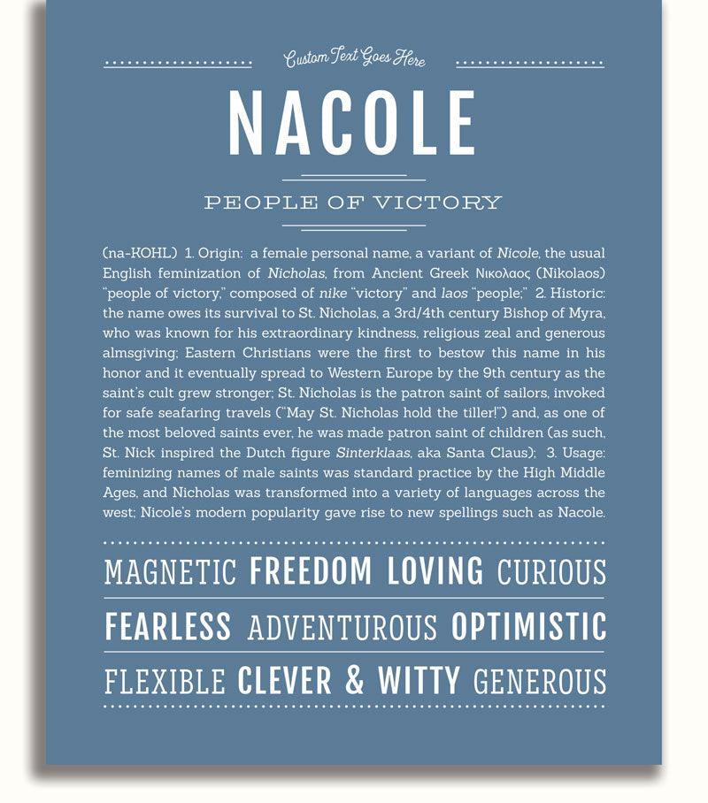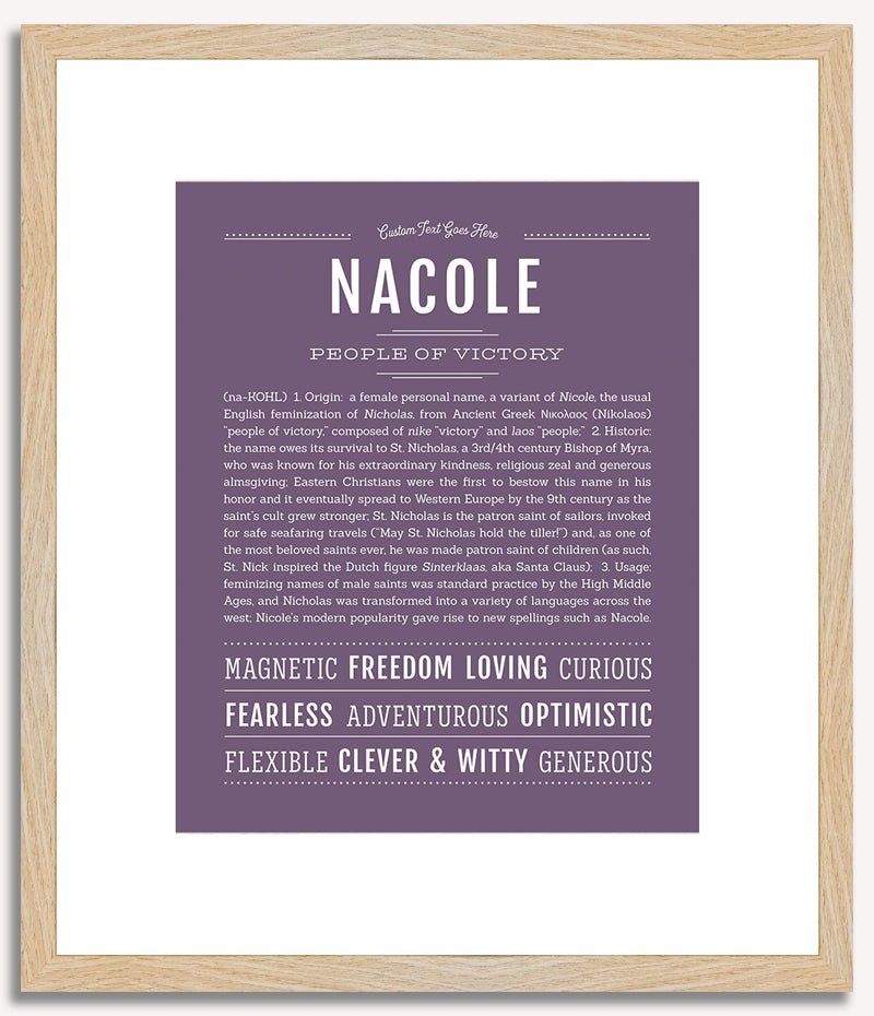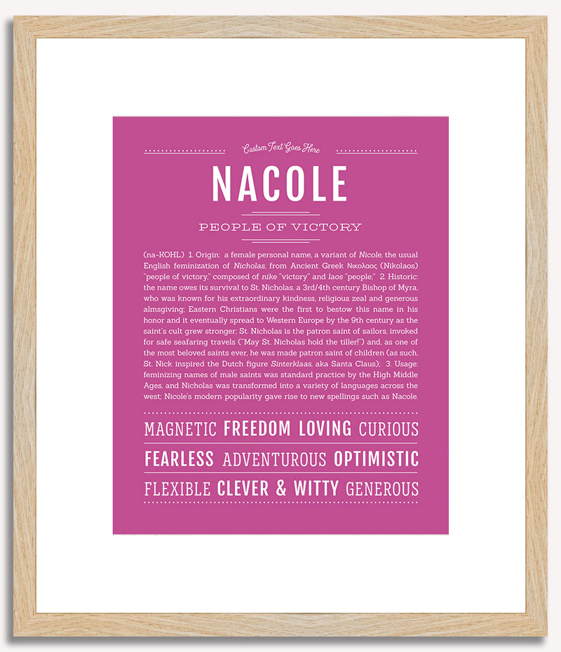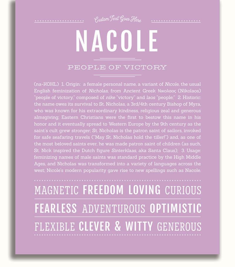 Names Stories® is not only a timeless keepsake of Nacole’s name, but a thoughtful reminder of who Nacole is: today, tomorrow, and always.