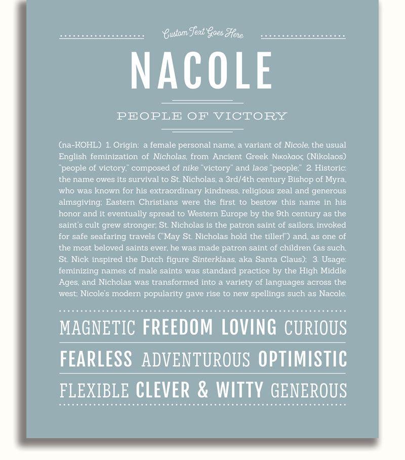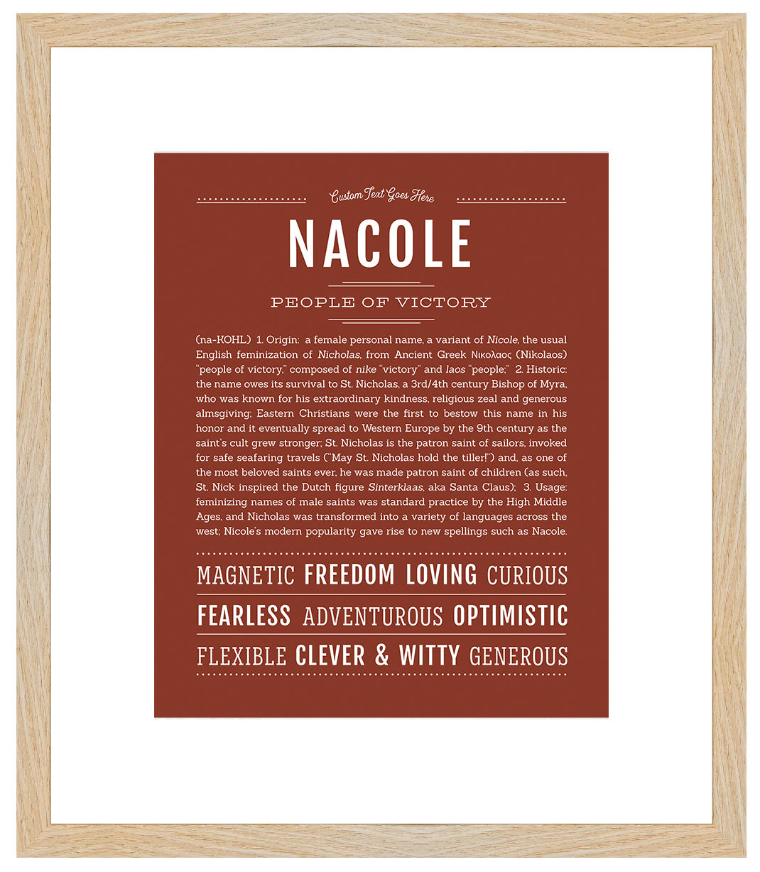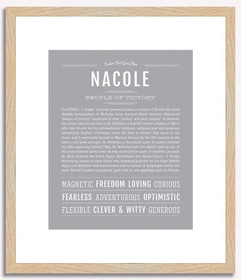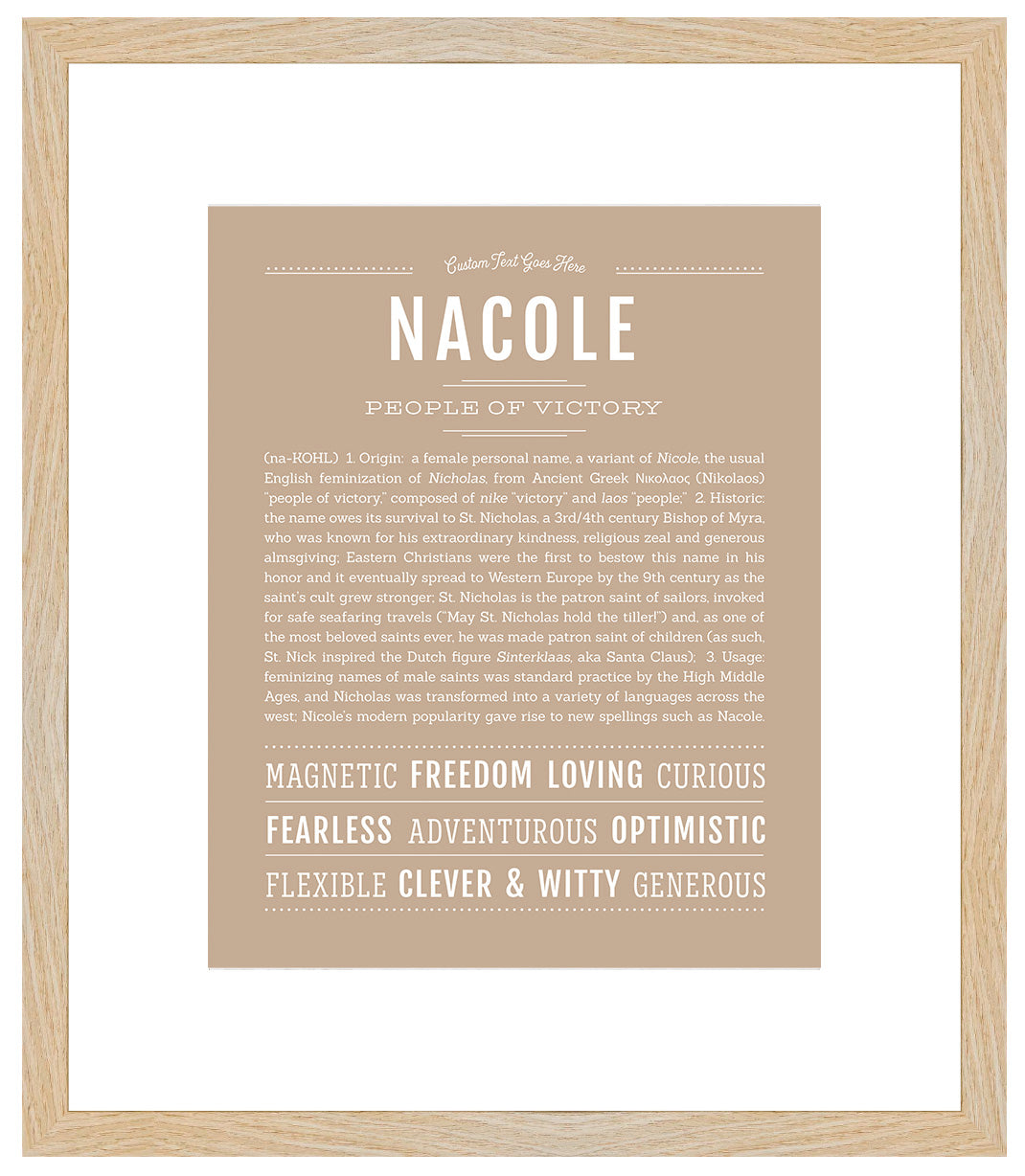 Names Stories® is not only a timeless keepsake of Nacole’s name, but a thoughtful reminder of who Nacole is: today, tomorrow, and always.