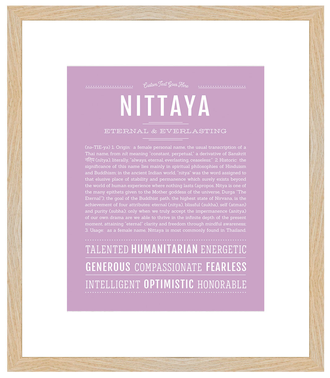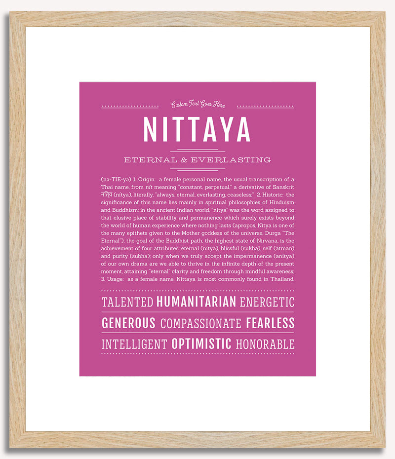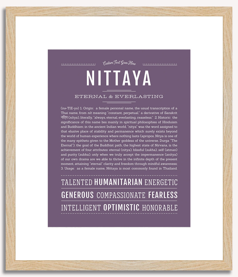 Names Stories® is not only a timeless keepsake of Nittaya’s name, but a thoughtful reminder of who Nittaya is: today, tomorrow, and always.