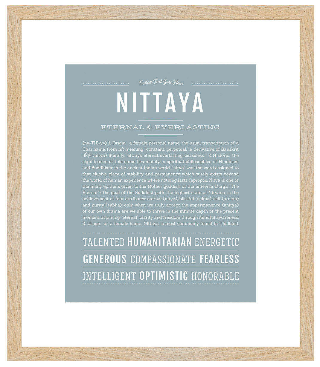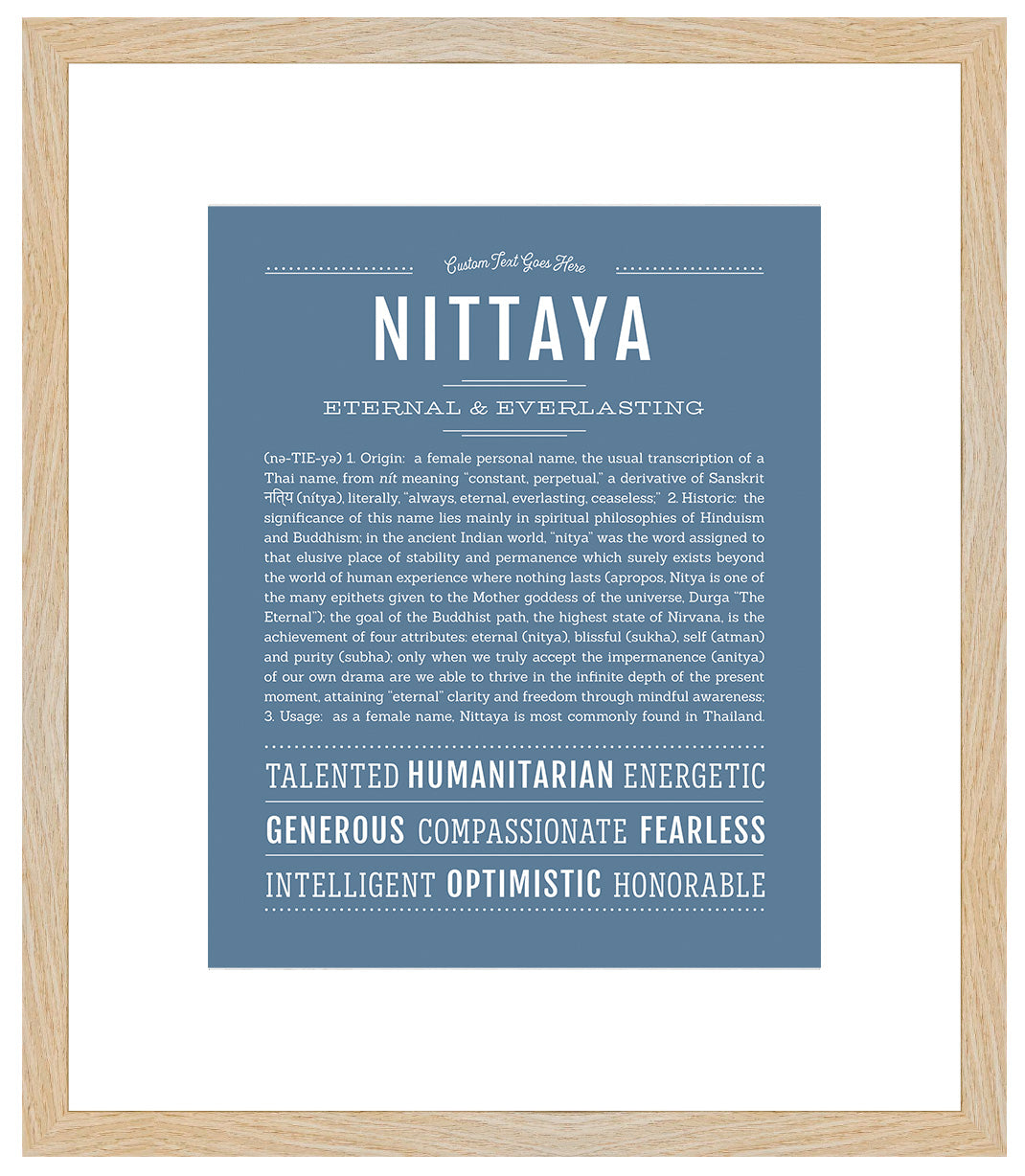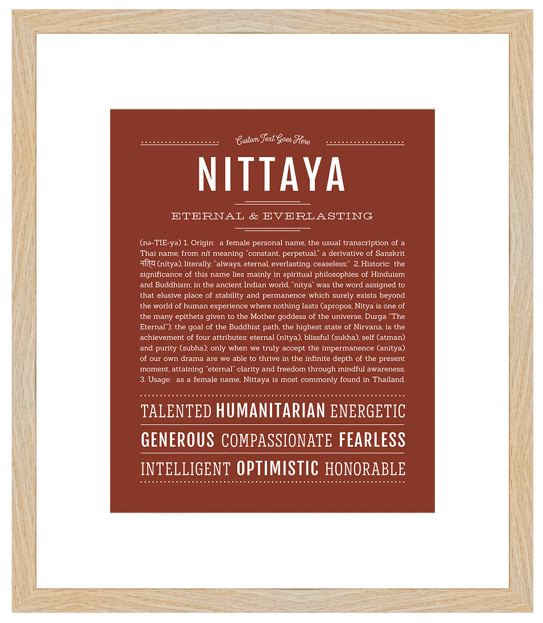 Names Stories® is not only a timeless keepsake of Nittaya’s name, but a thoughtful reminder of who Nittaya is: today, tomorrow, and always.