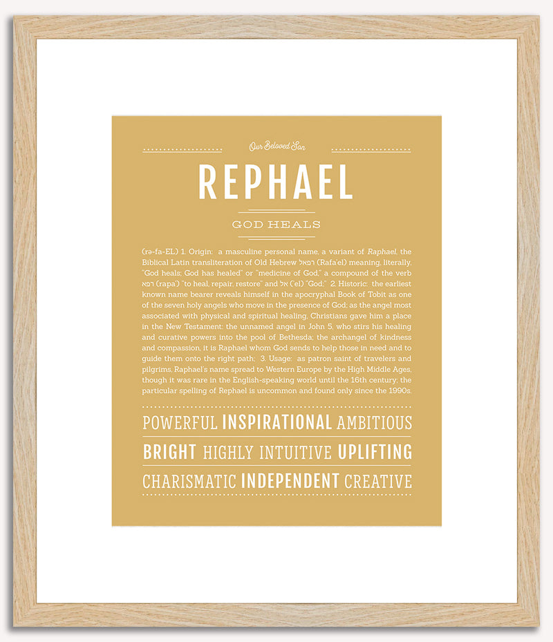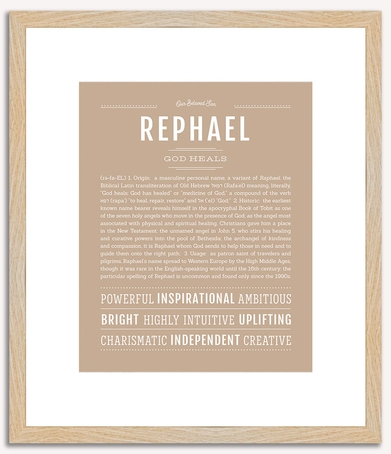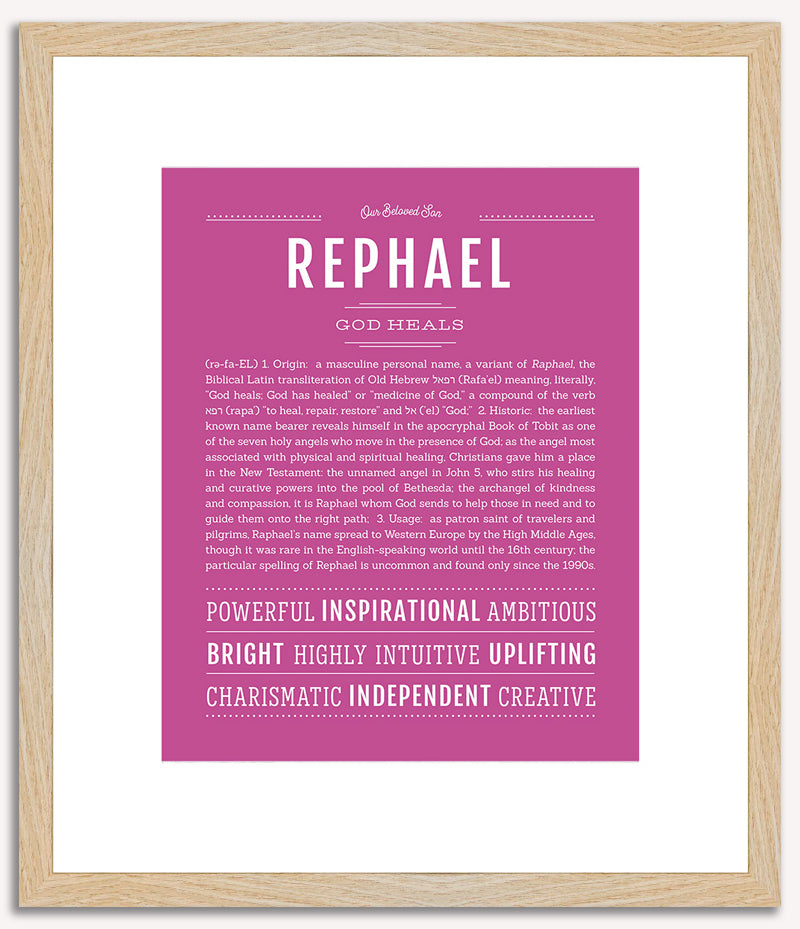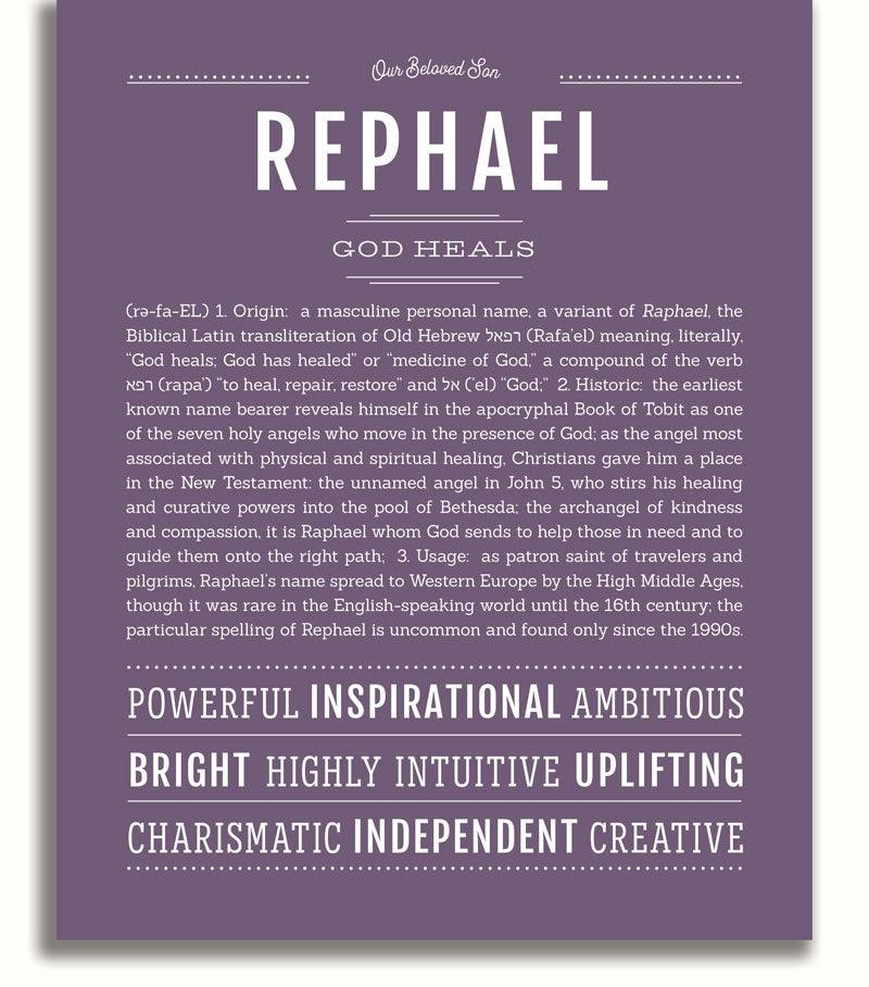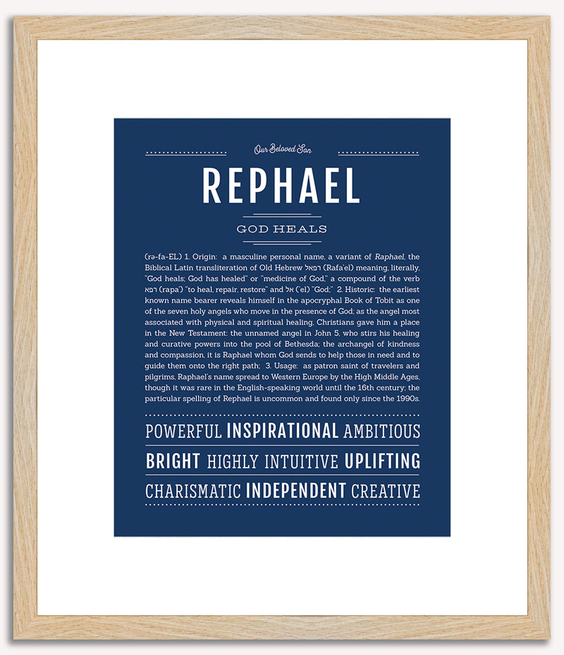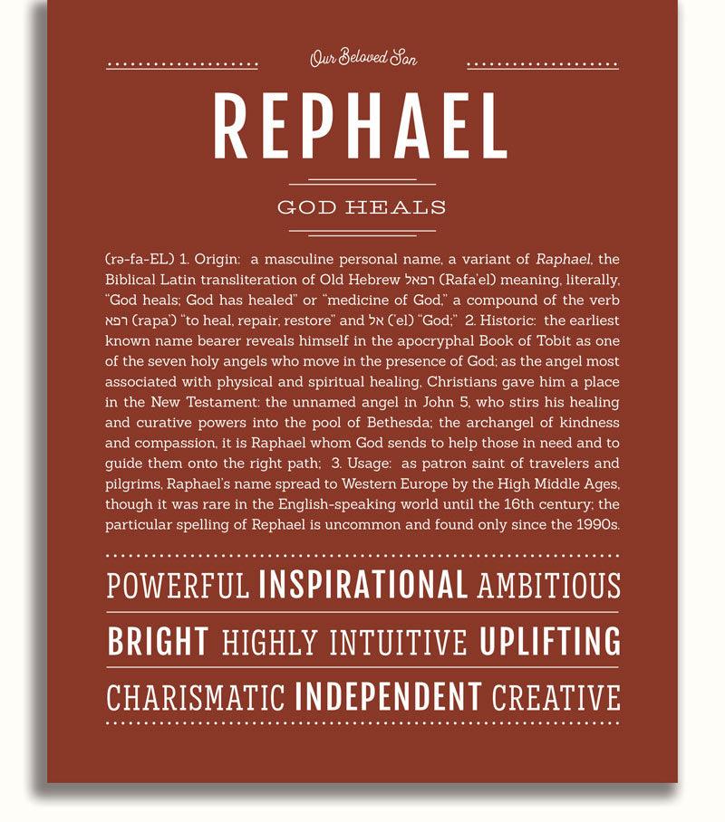 Names Stories® is not only a timeless keepsake of Rephael’s name, but a thoughtful reminder of who Rephael is: today, tomorrow, and always.
