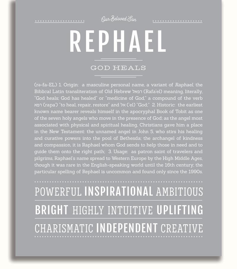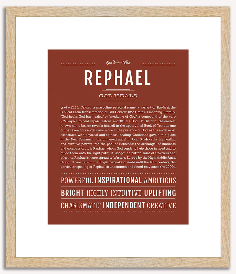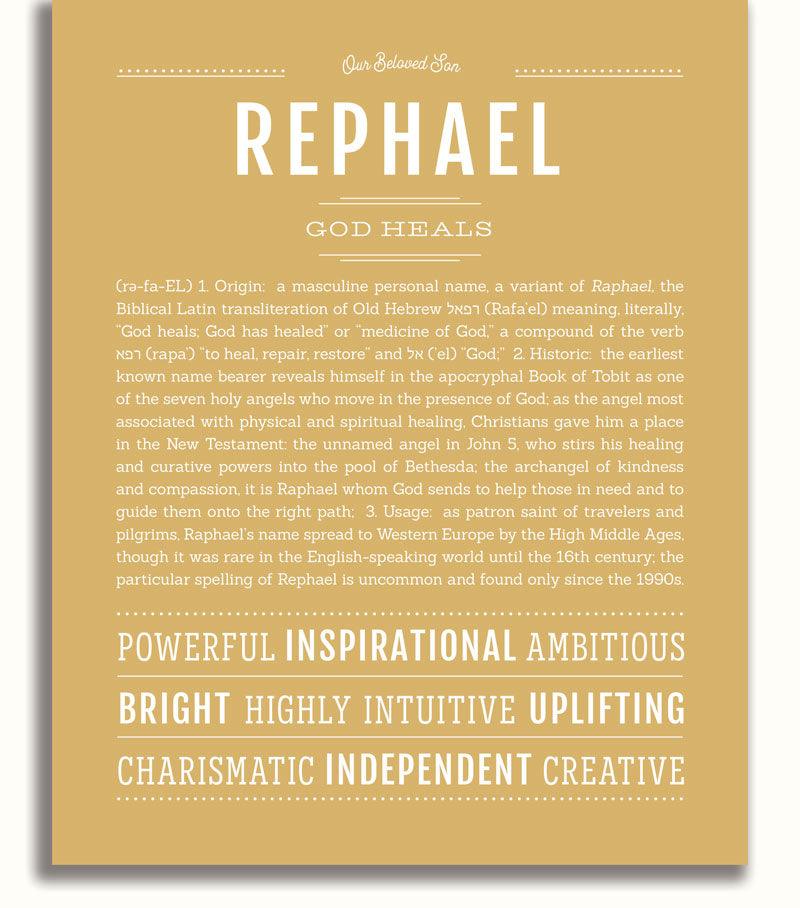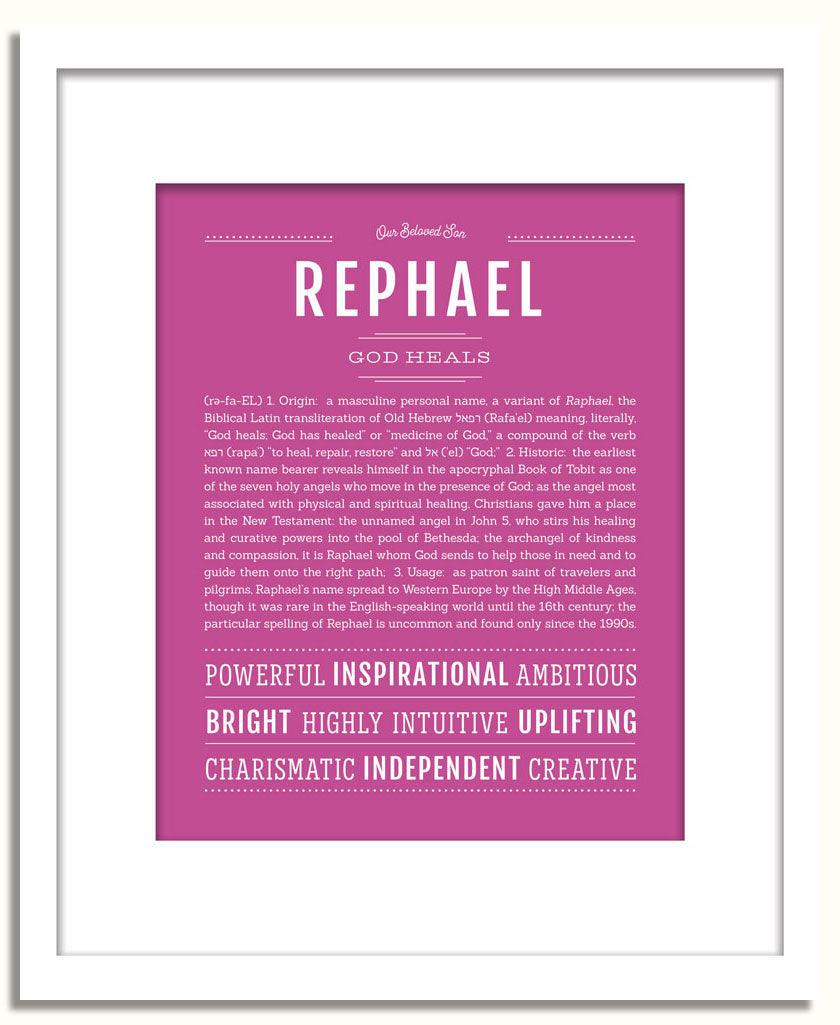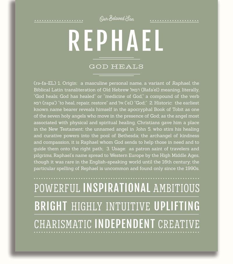 Names Stories® is not only a timeless keepsake of Rephael’s name, but a thoughtful reminder of who Rephael is: today, tomorrow, and always.