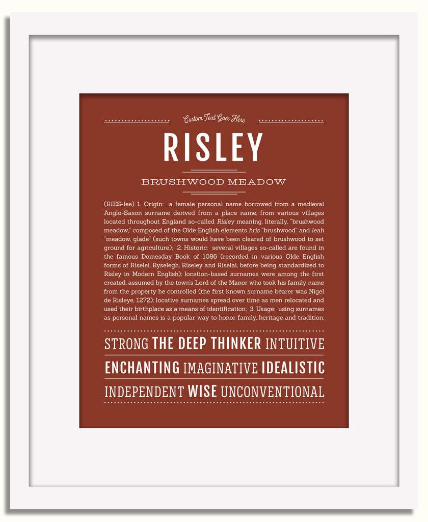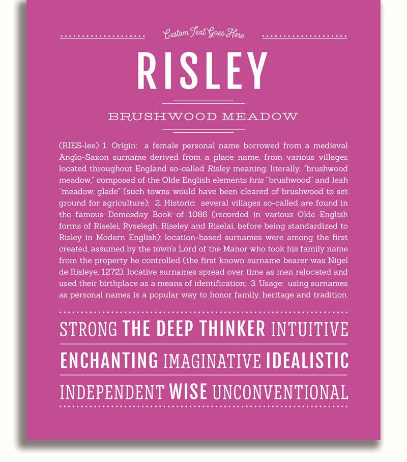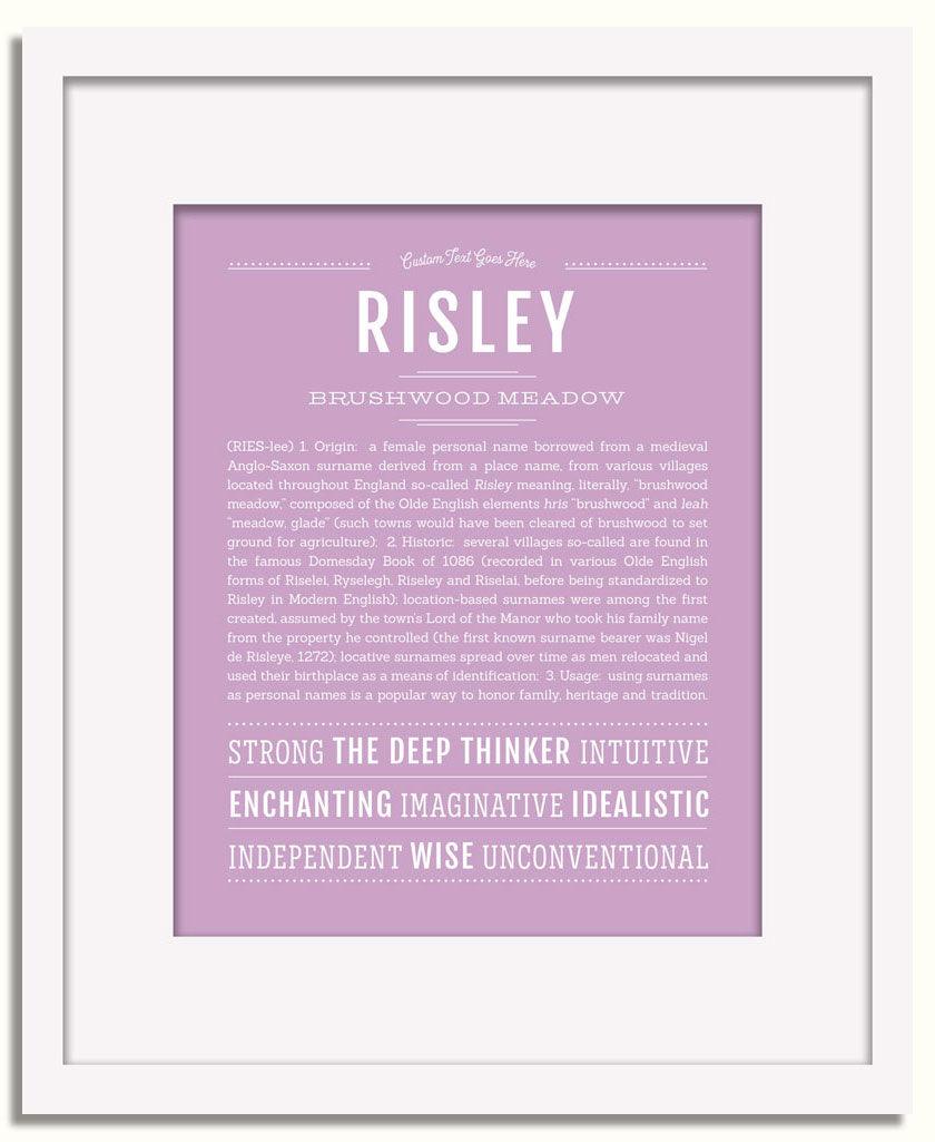 Names Stories® is not only a timeless keepsake of Risley’s name, but a thoughtful reminder of who Risley is: today, tomorrow, and always.