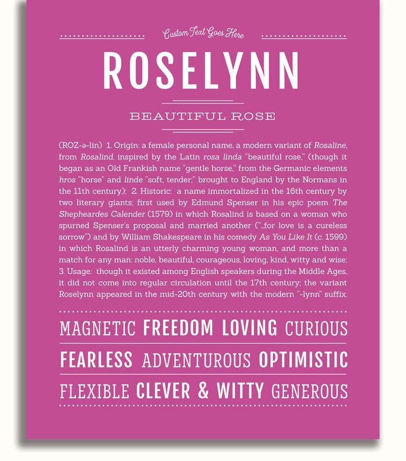 Names Stories® is not only a timeless keepsake of Roselynn’s name, but a thoughtful reminder of who Roselynn is: today, tomorrow, and always.