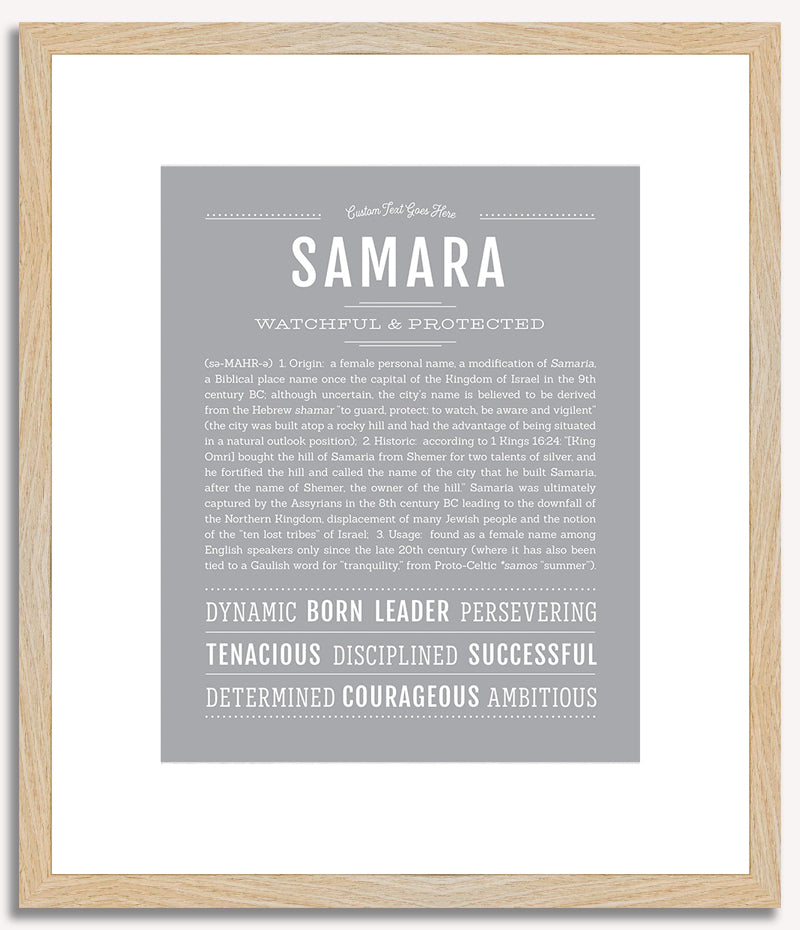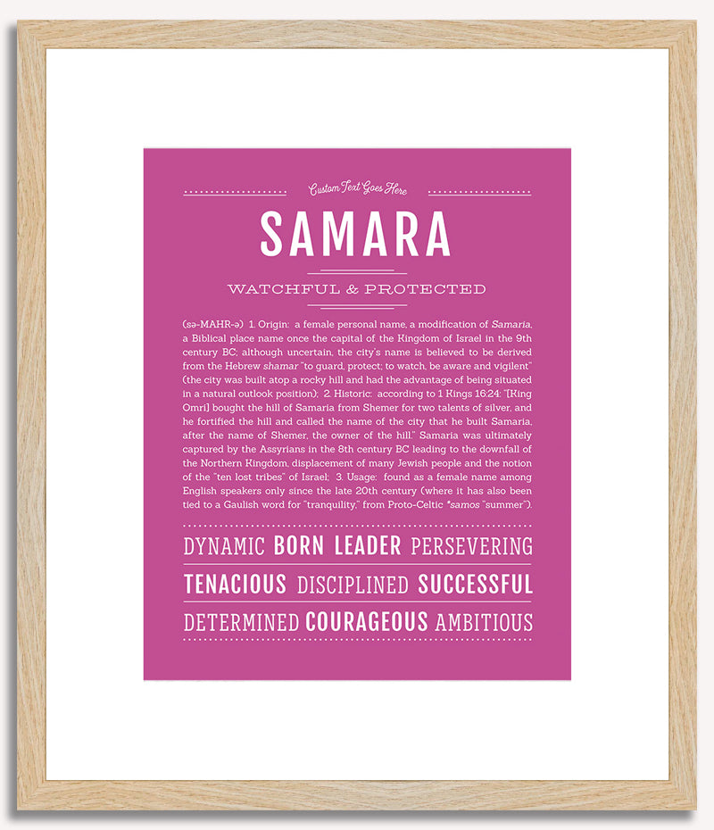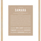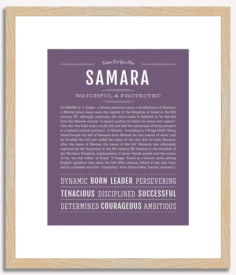 Names Stories® is not only a timeless keepsake of Samara’s name, but a thoughtful reminder of who Samara is: today, tomorrow, and always.