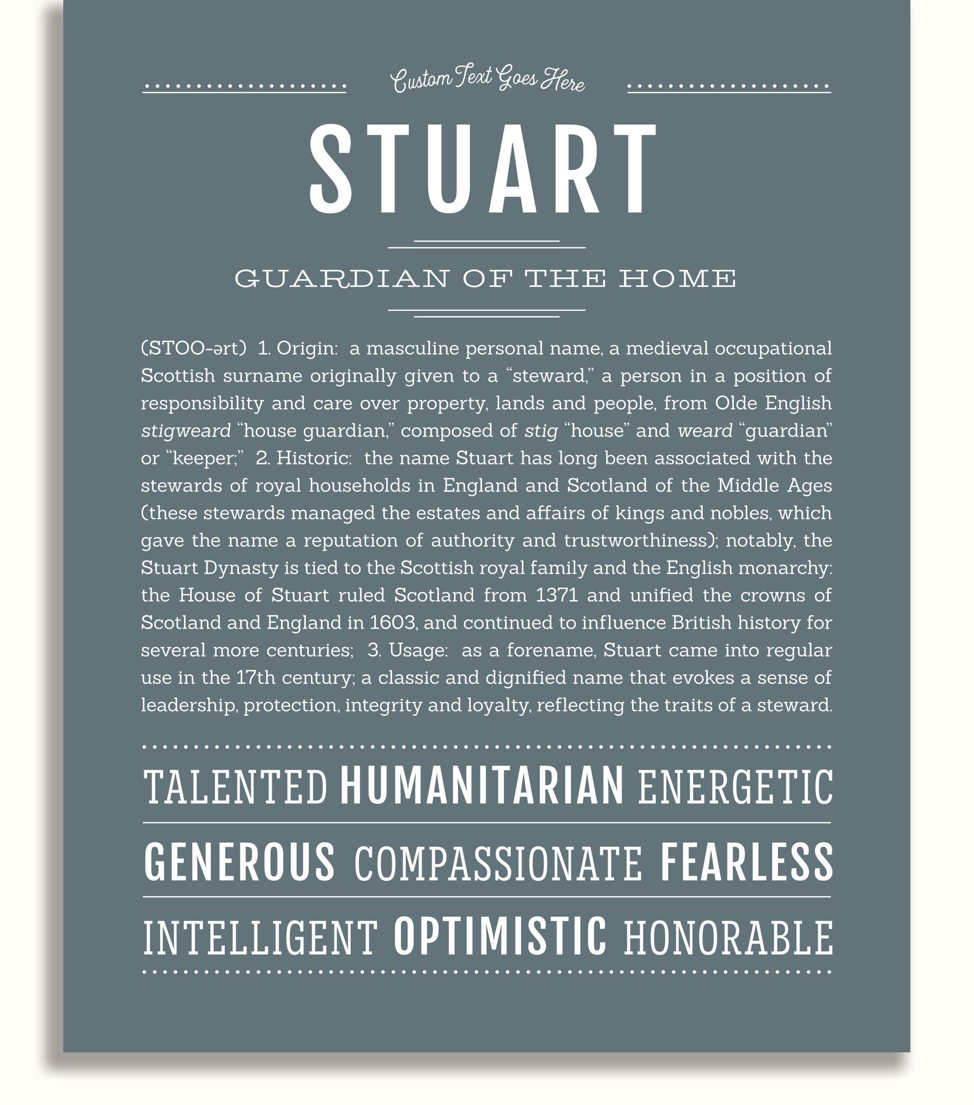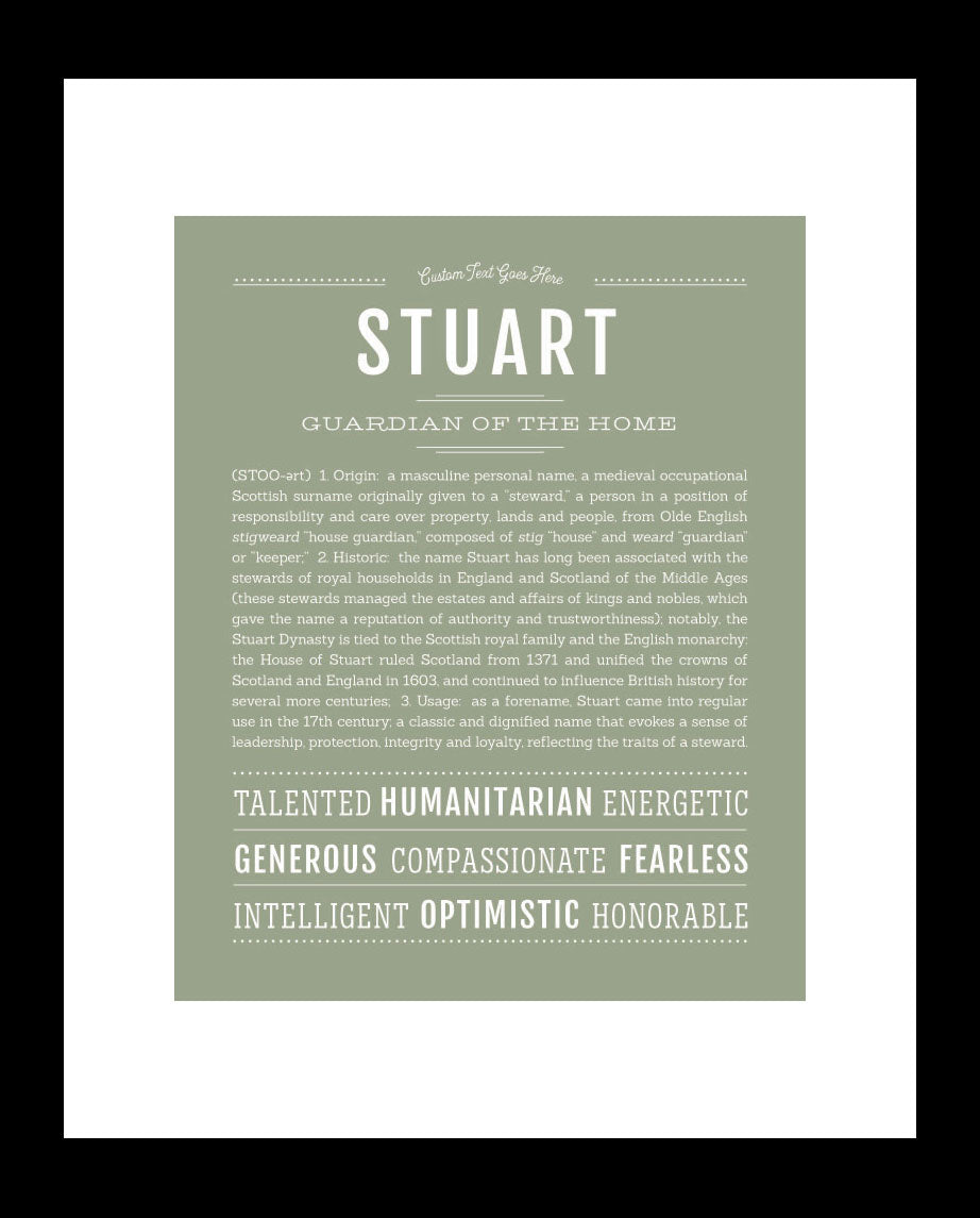 Names Stories® is not only a timeless keepsake of Stuart’s name, but a thoughtful reminder of who Stuart is: today, tomorrow, and always.