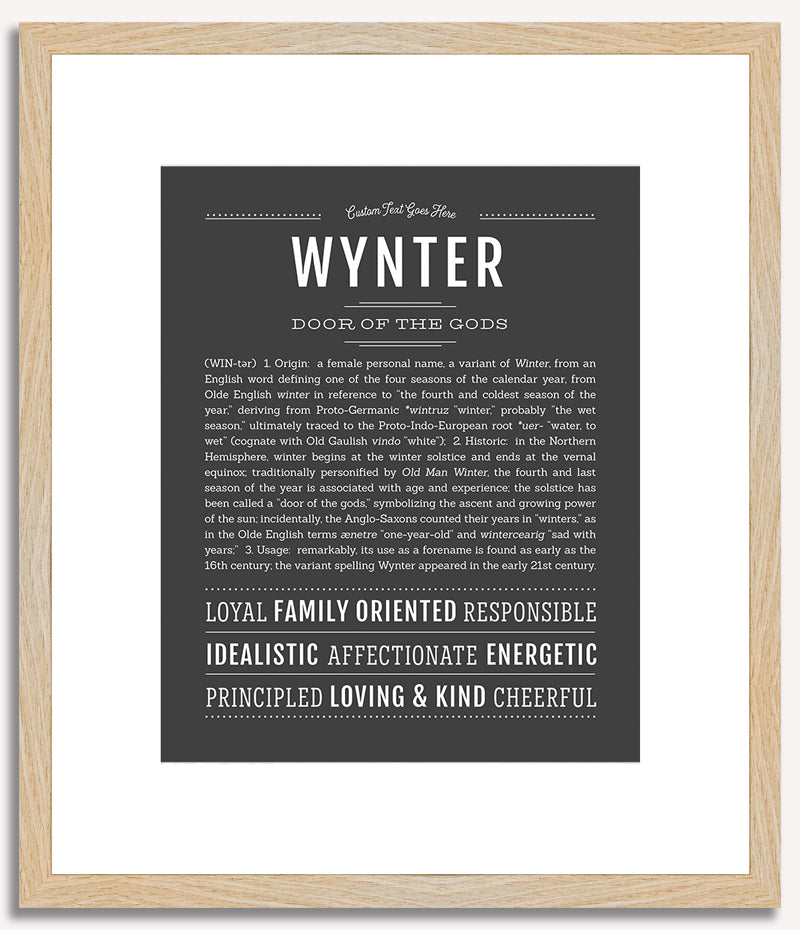 Names Stories® is not only a timeless keepsake of Wynter’s name, but a thoughtful reminder of who Wynter is: today, tomorrow, and always.