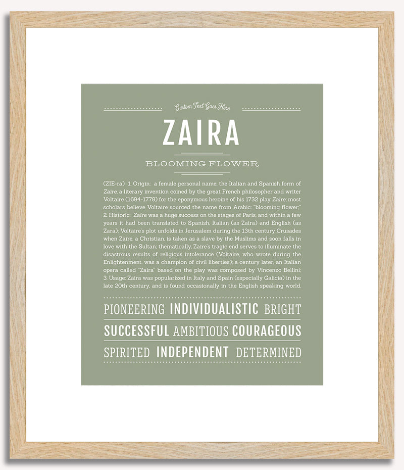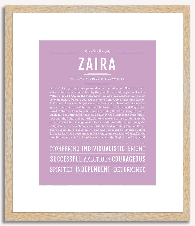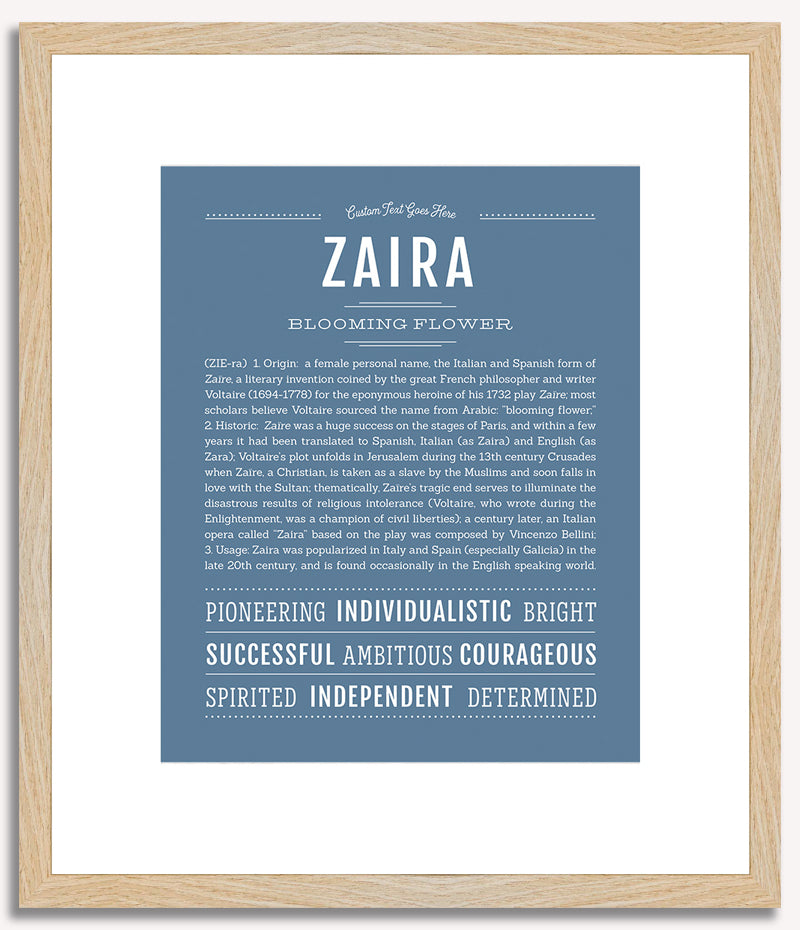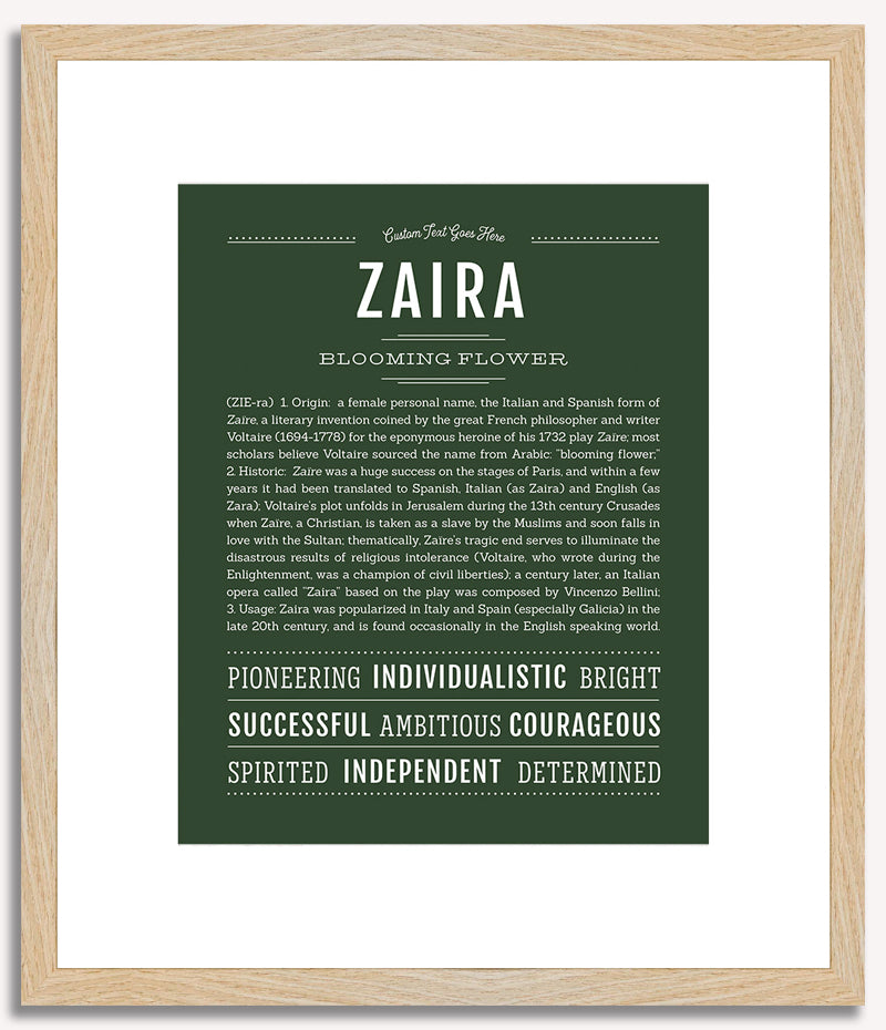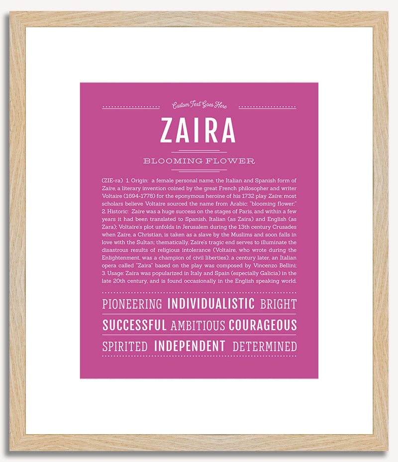Names Stories® is not only a timeless keepsake of Zaira’s name, but a thoughtful reminder of who Zaira is: today, tomorrow, and always.