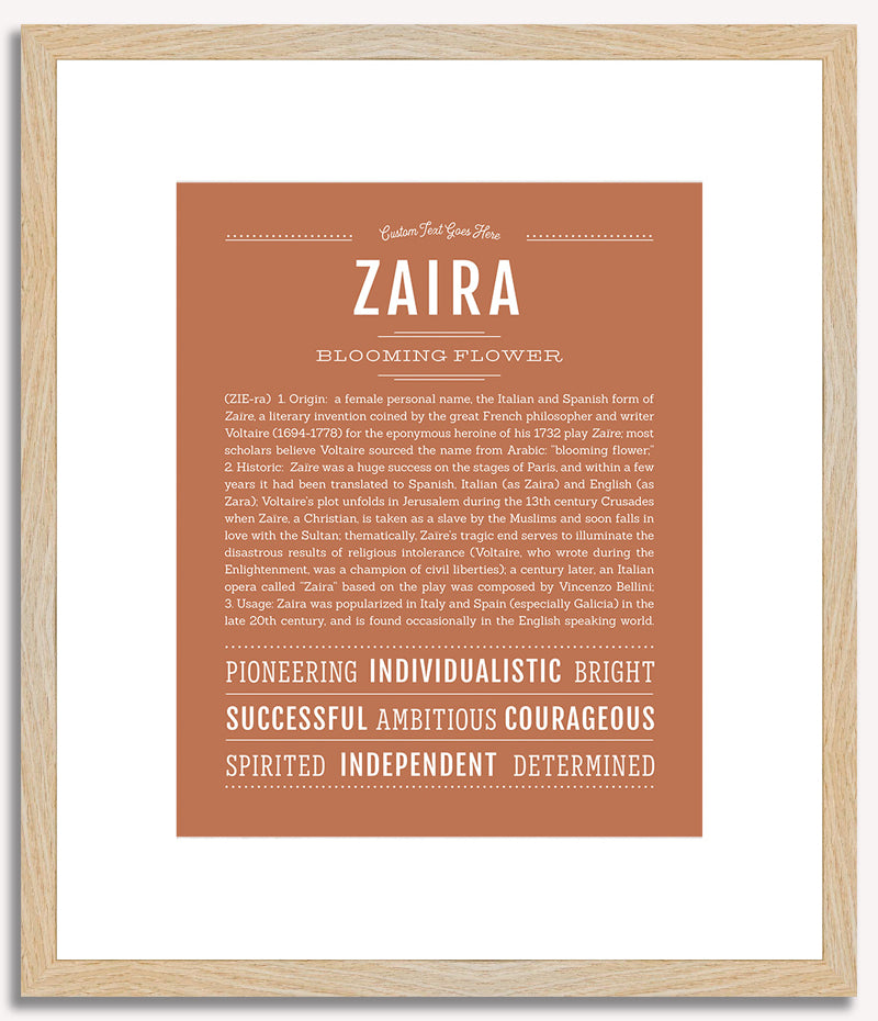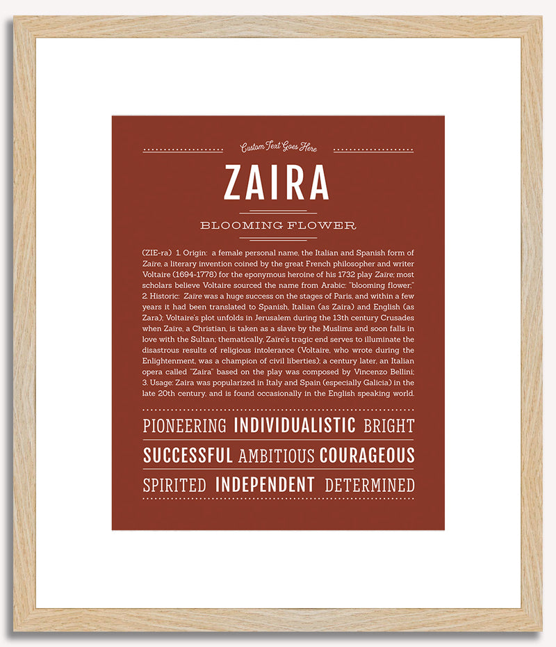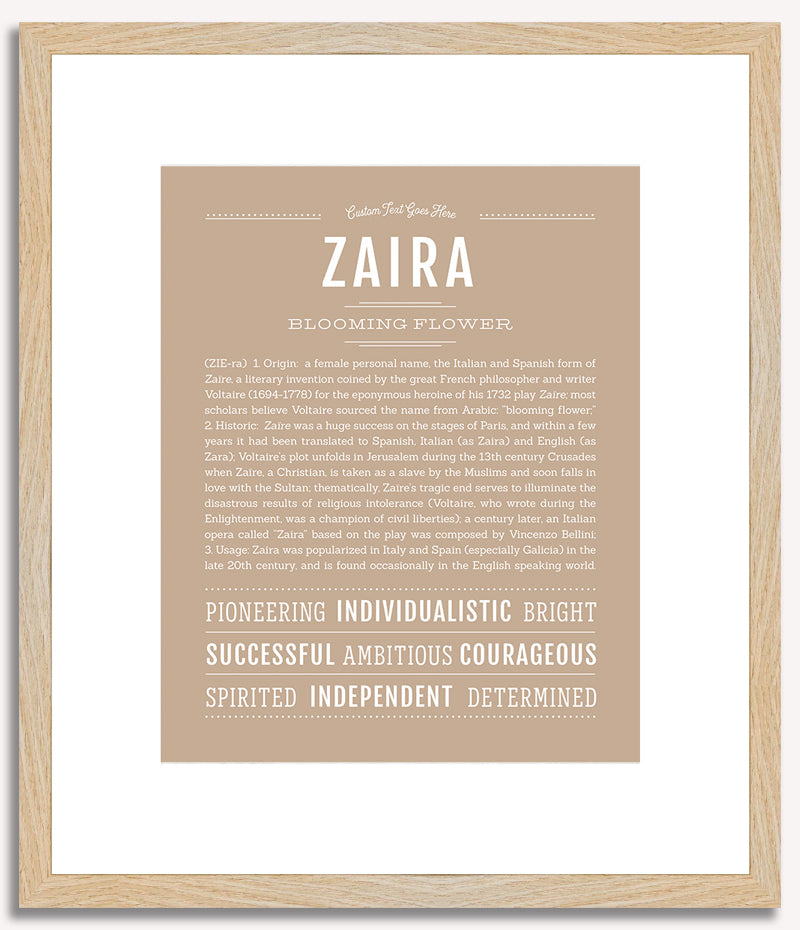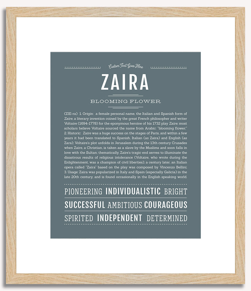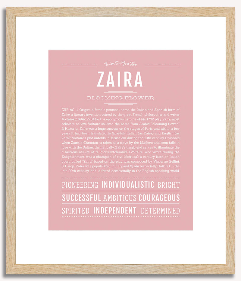 Names Stories® is not only a timeless keepsake of Zaira’s name, but a thoughtful reminder of who Zaira is: today, tomorrow, and always.